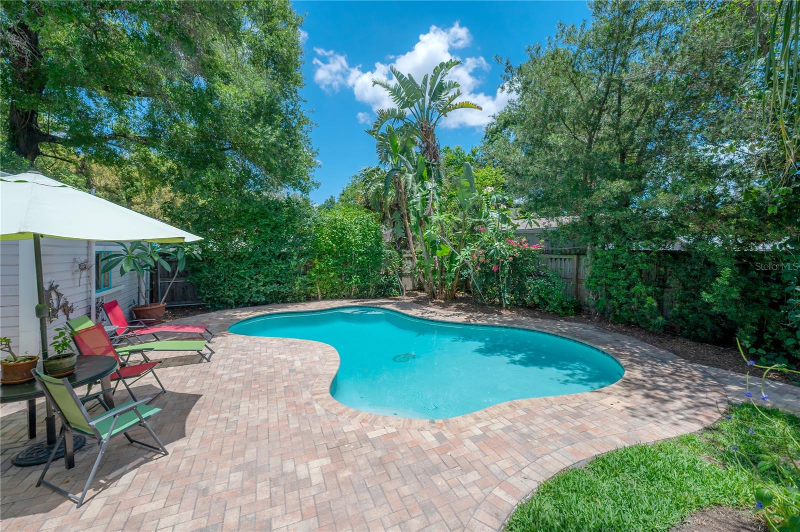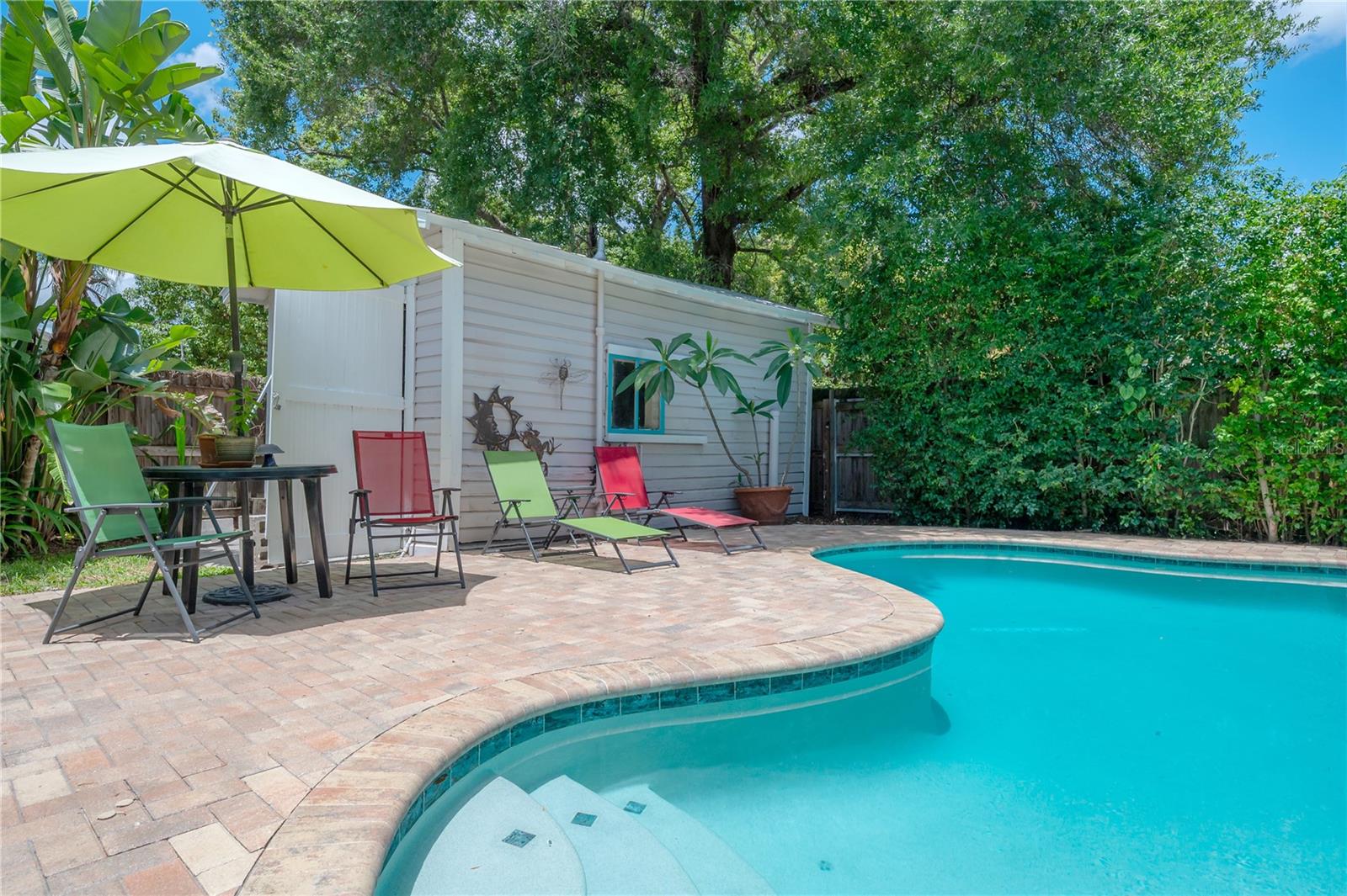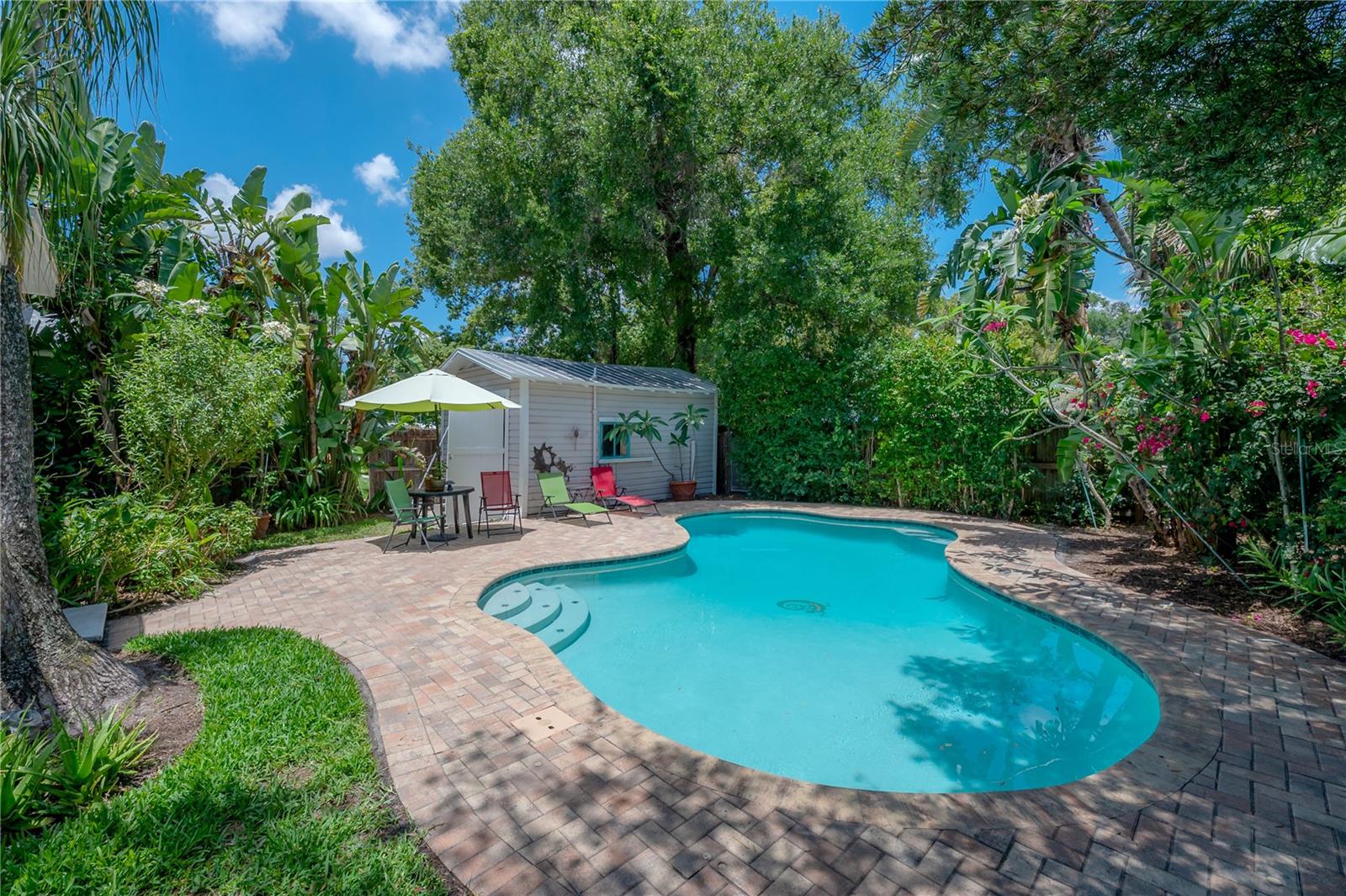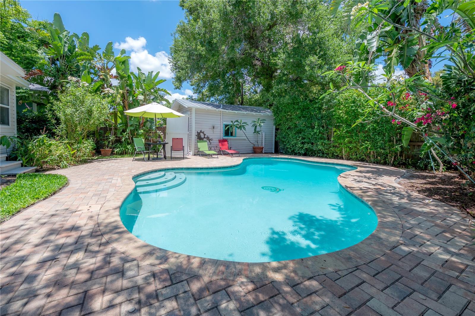 Nestled in one of Tampa’s most sought-after neighborhoods, this beautifully landscaped 2-bedroom, 1-bath bungalow seamlessly blends historic charm with modern updates. A rare find, this 1,124 sq ft pool home features original Craftsman details—including built-ins, original farmhouse sink in the kitchen, picture rail molding and a decorative wall niche—alongside everyday comforts like a spacious walk-in closet in the primary bedroom and interior laundry. Step outside to your private backyard retreat, complete with a sparkling pool and paver deck—perfect for relaxing or entertaining family and friends. The detached garage offers flexible space for a workshop, storage, or even a future poolside cabana. Major updates include foundation improvements, sewer line and updated plumbing, electrical upgrades, a newer HVAC system, durable metal roof and enhanced landscaping. Located just a short stroll from Seminole Heights’ favorite dining spots, boutiques, and local hangouts, this charming home offers the best of Tampa living. Don’t miss your chance to own this charming piece of Tampa history—contact the listing agent today for your private showing!