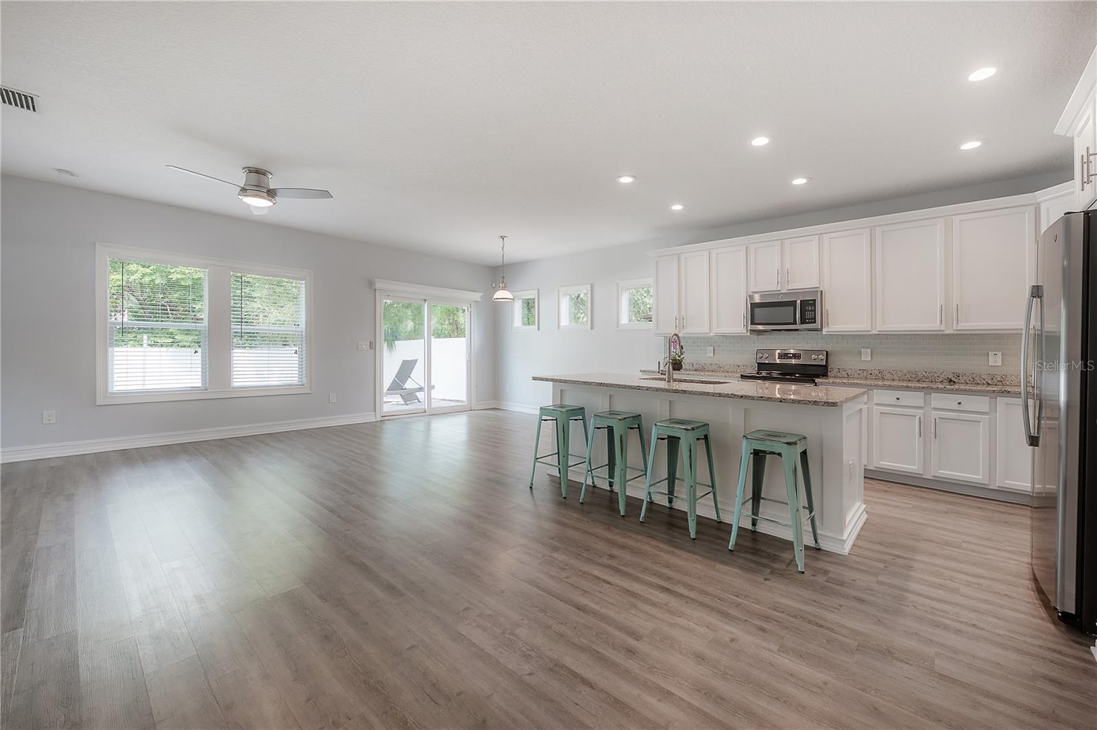 Welcome to this move-in ready gem located in the highly desirable Riverside Heights neighborhood. Just minutes from downtown Tampa, the Riverwalk, Armature Works, and multiple community parks, this one-story home combines convenience, comfort, and style in one incredible package. Step inside to a light-filled interior, where impact-rated windows bathe the spacious family room in natural light, enhancing the warm, open feel. The kitchen is designed for both function and flair, boasting an oversized island, brand-new stainless steel appliances, custom cabinetry, glass tile backsplash, granite countertops, and an open layout that’s ideal for entertaining and everyday living. The generous primary suite offers a peaceful retreat, featuring a walk-in closet and a luxurious ensuite bathroom with dual vanities and a large, curbless shower. Two additional bedrooms provide flexibility for guests, a home office, or growing family needs, with convenient access to a well-appointed guest bathroom. Additional highlights include a freshly repainted exterior, a large laundry room with water hookup, and a fully fenced backyard perfect for relaxing or hosting gatherings. This property is not located in a flood zone, offering added peace of mind. Riverside Heights is a vibrant community with three city parks just blocks away. Enjoy amenities like playgrounds, basketball courts, a baseball field, and expansive greenspaces that host beloved neighborhood events year-round. Don’t miss your chance to live in one of Tampa’s most dynamic neighborhoods—schedule your private tour today!