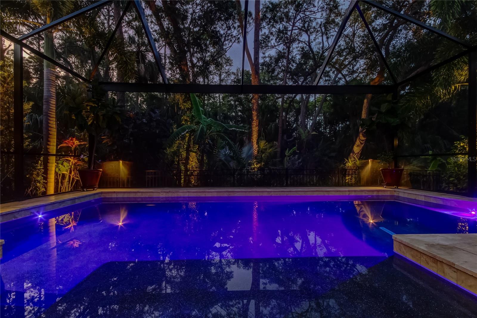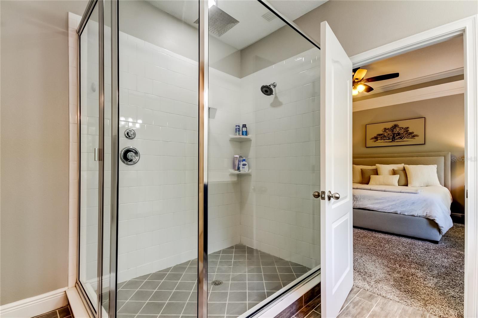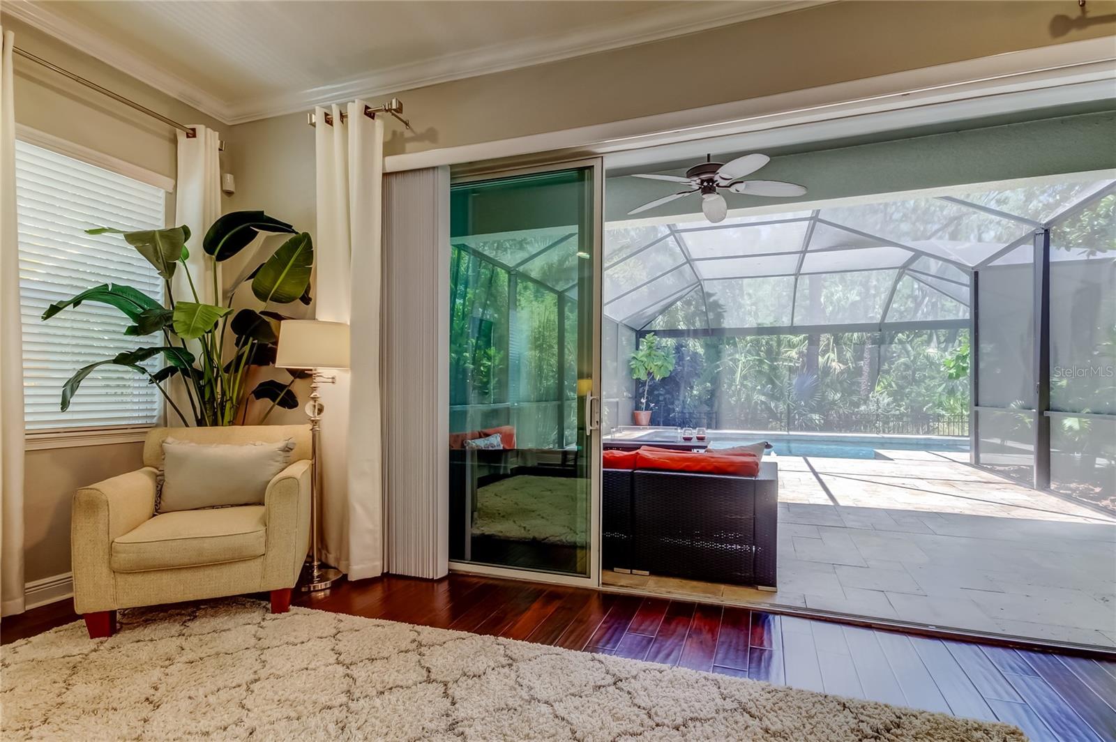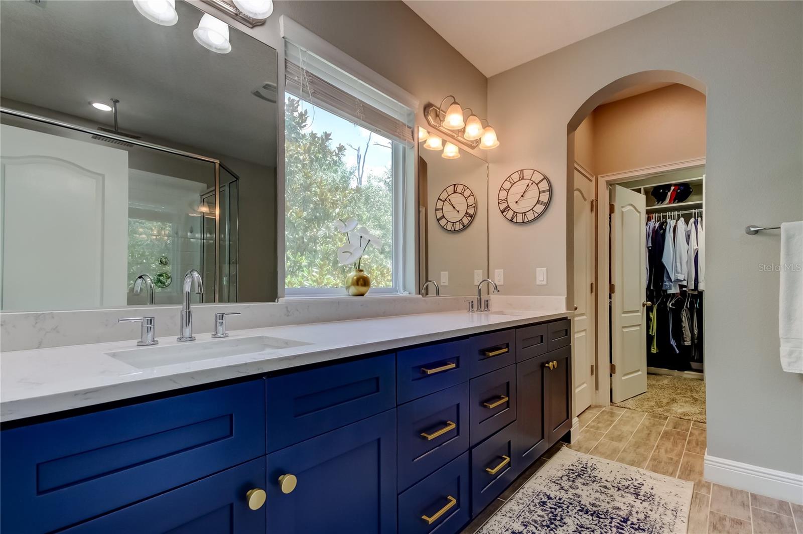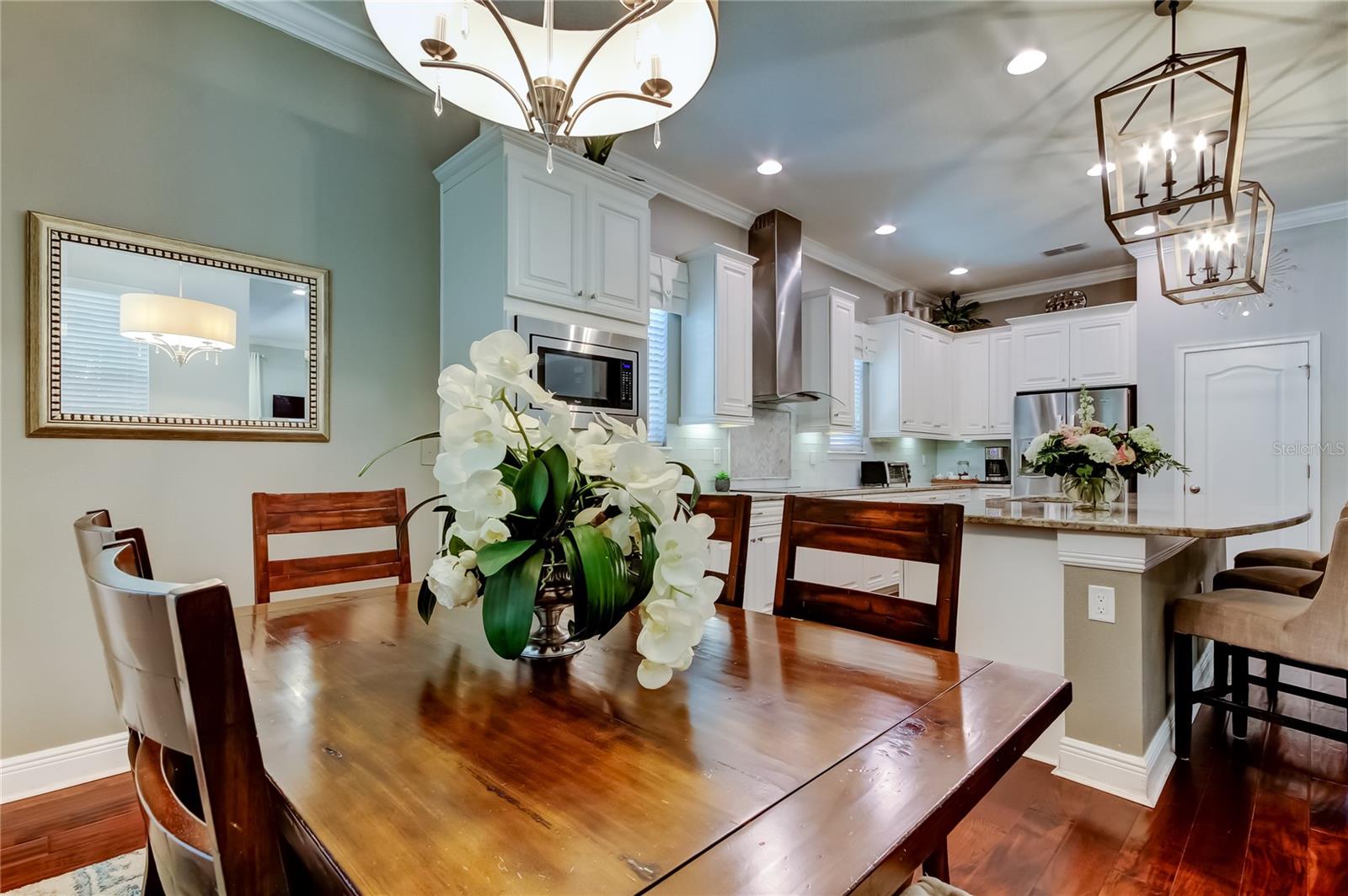 Welcome to this beautifully updated 4-bedroom, 3-bathroom pool home in the highly sought-after Champions Forest neighborhood. Set on a premium conservation lot, this home offers a functional layout, designer upgrades, and a tropical resort style backyard built for year-round Florida living. This home is truly turn-key and loaded with upgrades. Inside, you’ll find rich engineered hardwood floors, elegant crown molding, and upgraded light fixtures throughout the main level. The heart of the home is the gourmet kitchen, featuring a large granite island, 42” white wood cabinets with crown, glass tile backsplash, and a stunning mosaic marble accent under the custom range hood. Built-in stainless steel appliances include a wall oven, microwave, and sleek cooktop with hood. The first-floor bedroom and full bath are perfect for guests or multigenerational living, with a new vanity, upgraded walk-in shower, and wood-look tile finishes. Upstairs, the primary suite features a tray ceiling, crown molding, and a luxurious en-suite bath featuring new quartz vanity with dual sinks, walk-in shower, and a large walk-in closet. Two additional guest bedrooms share a full bath (also with new quartz vanity)—one with direct bathroom access—and a versatile bonus room provides the ideal space for an office, playroom, or second living area. Ceiling fans throughout add comfort and efficiency. Step outside to your tropical resort-style backyard with a heated saltwater pool, sun shelf with bubbler, and travertine decking. The panoramic screen enclosure includes no-see-um screening and a dog door for convenience. The extended lanai, tropical landscaping, outdoor lighting, and French drain system create a relaxing and private outdoor oasis. Located minutes from great rated schools, parks, biking trails, Westchase, shopping, dining, the YMCA, and just 15 minutes to Tampa International Airport and 20 minutes to the Gulf beaches—this home blends luxury, function, and location.