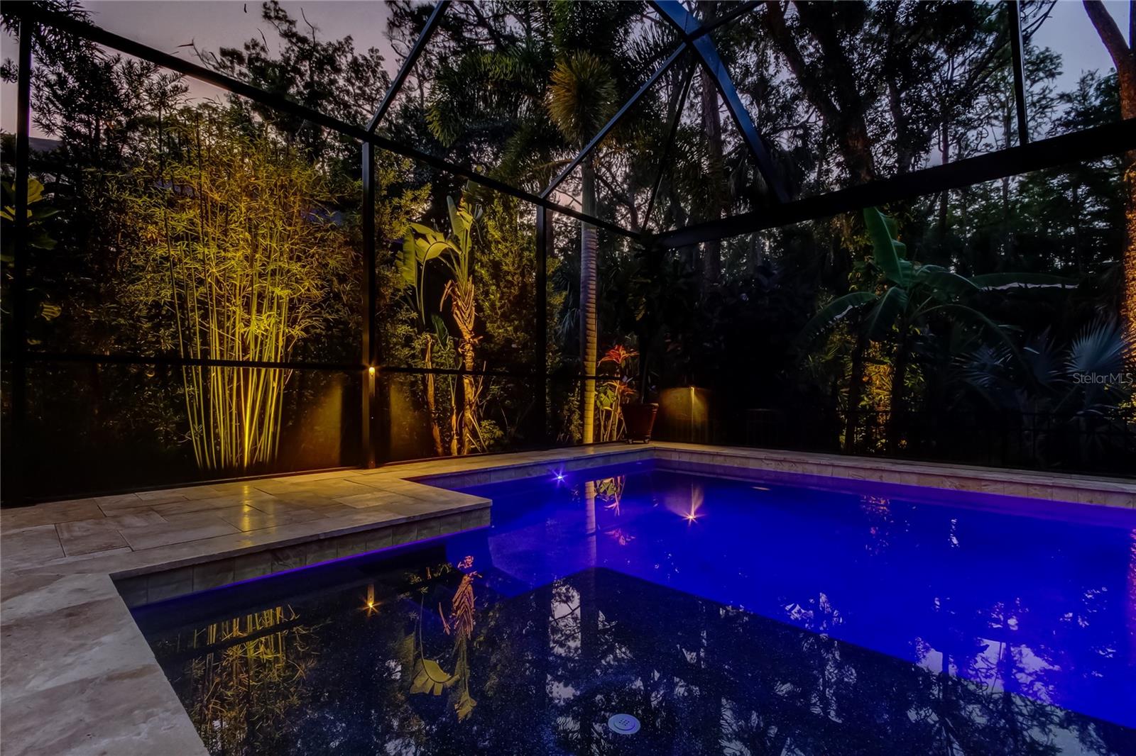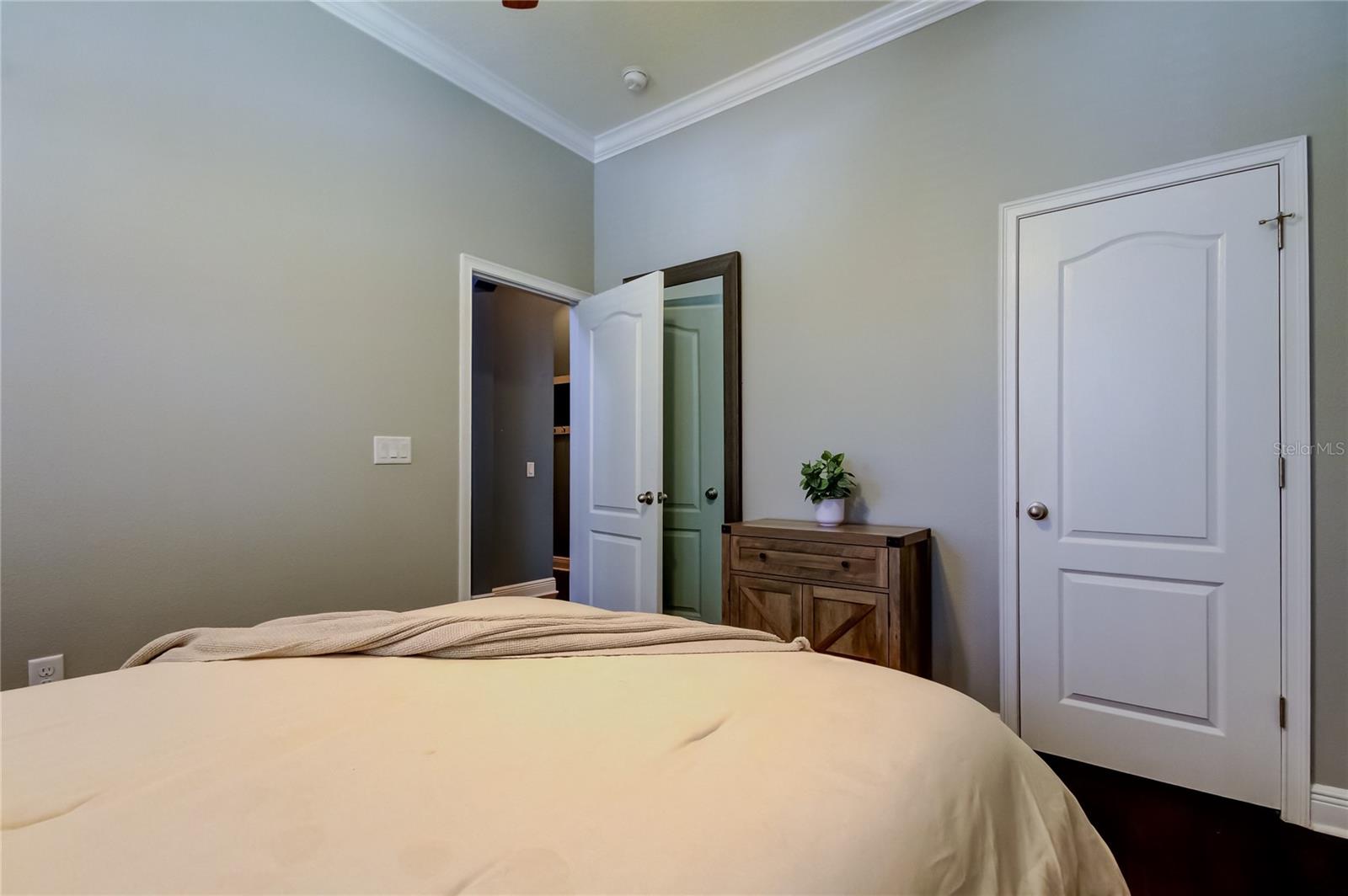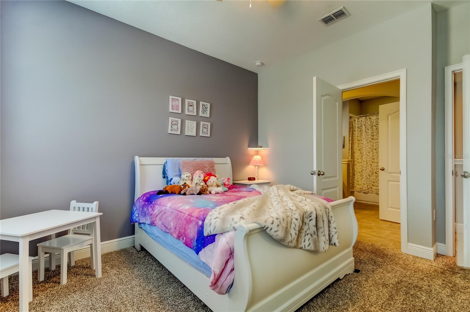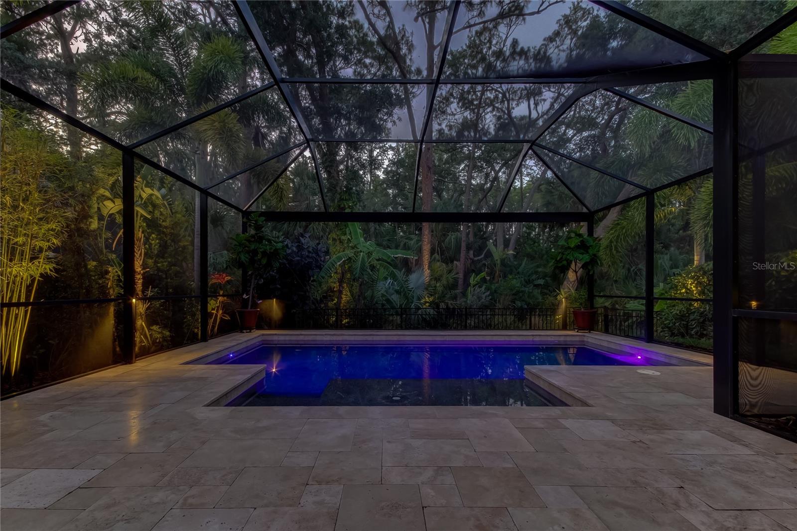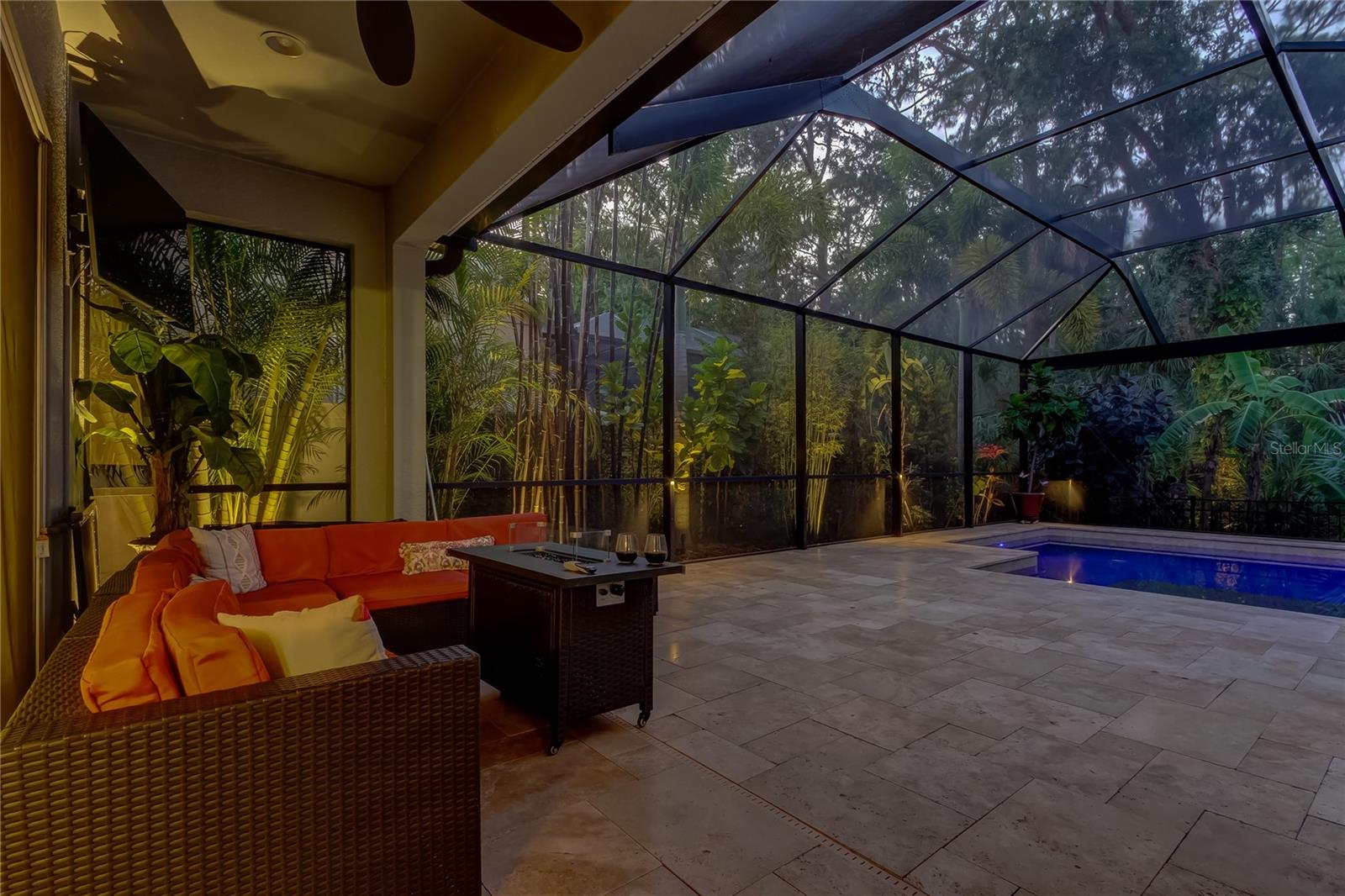 Welcome to this beautifully updated 4-bedroom, 3-bathroom pool home in the highly sought-after Champions Forest neighborhood. Set on a premium conservation lot, this home offers a functional layout, designer upgrades, and a tropical resort style backyard built for year-round Florida living. This home is truly turn-key and loaded with upgrades. Inside, you’ll find rich engineered hardwood floors, elegant crown molding, and upgraded light fixtures throughout the main level. The heart of the home is the gourmet kitchen, featuring a large granite island, 42” white wood cabinets with crown, glass tile backsplash, and a stunning mosaic marble accent under the custom range hood. Built-in stainless steel appliances include a wall oven, microwave, and sleek cooktop with hood. The first-floor bedroom and full bath are perfect for guests or multigenerational living, with a new vanity, upgraded walk-in shower, and wood-look tile finishes. Upstairs, the primary suite features a tray ceiling, crown molding, and a luxurious en-suite bath featuring new quartz vanity with dual sinks, walk-in shower, and a large walk-in closet. Two additional guest bedrooms share a full bath (also with new quartz vanity)—one with direct bathroom access—and a versatile bonus room provides the ideal space for an office, playroom, or second living area. Ceiling fans throughout add comfort and efficiency. Step outside to your tropical resort-style backyard with a heated saltwater pool, sun shelf with bubbler, and travertine decking. The panoramic screen enclosure includes no-see-um screening and a dog door for convenience. The extended lanai, tropical landscaping, outdoor lighting, and French drain system create a relaxing and private outdoor oasis. Located minutes from great rated schools, parks, biking trails, Westchase, shopping, dining, the YMCA, and just 15 minutes to Tampa International Airport and 20 minutes to the Gulf beaches—this home blends luxury, function, and location.