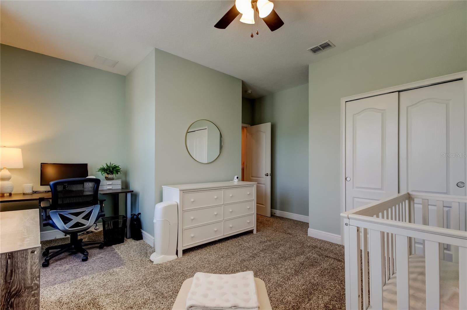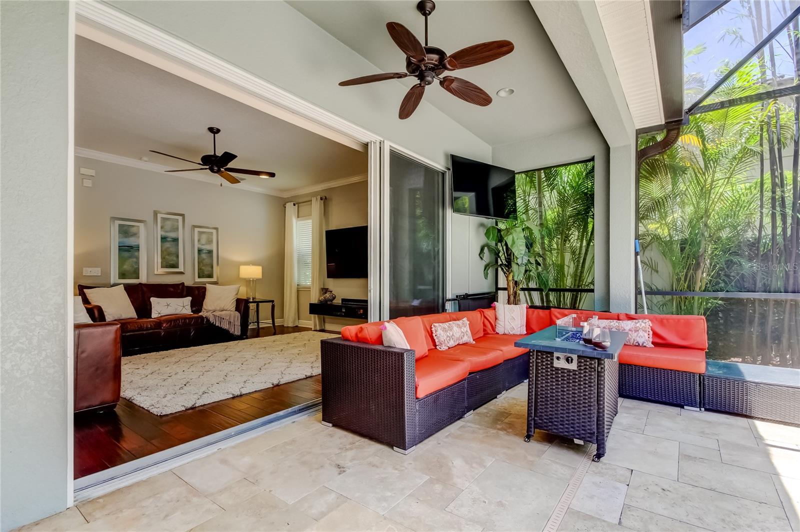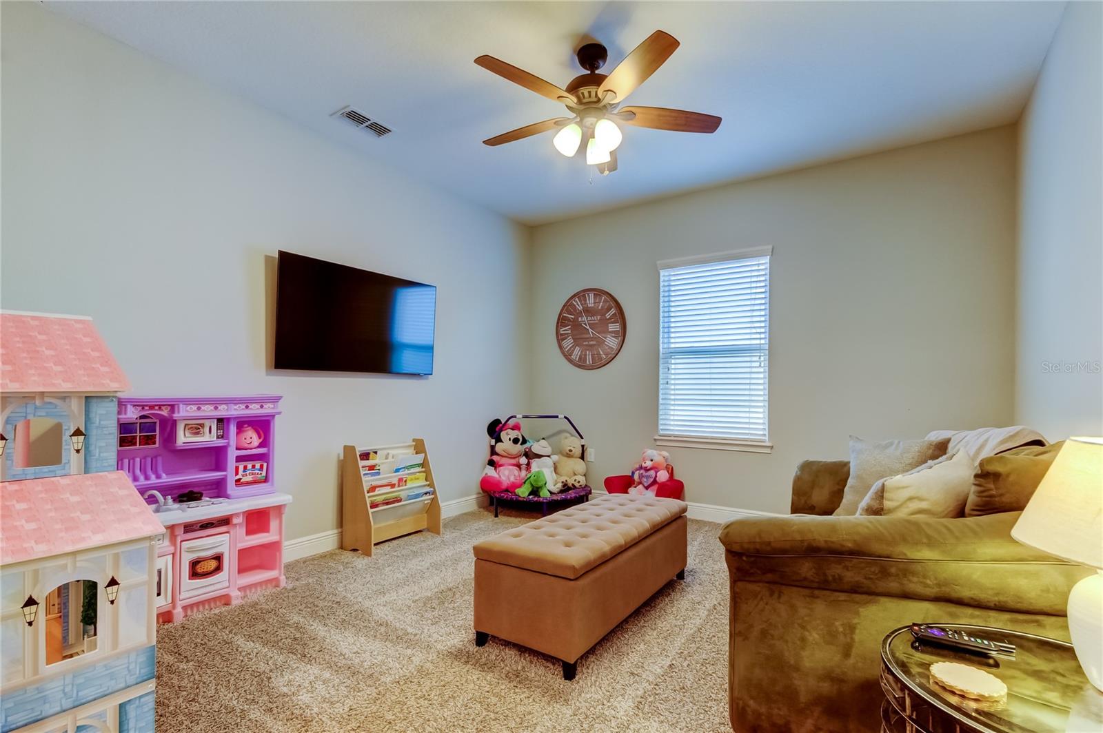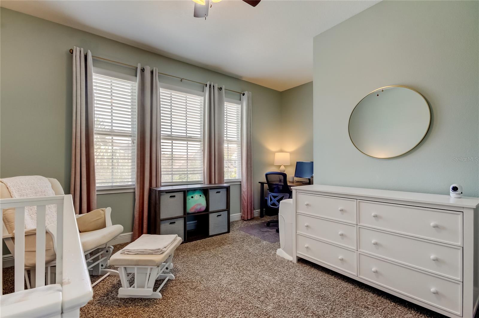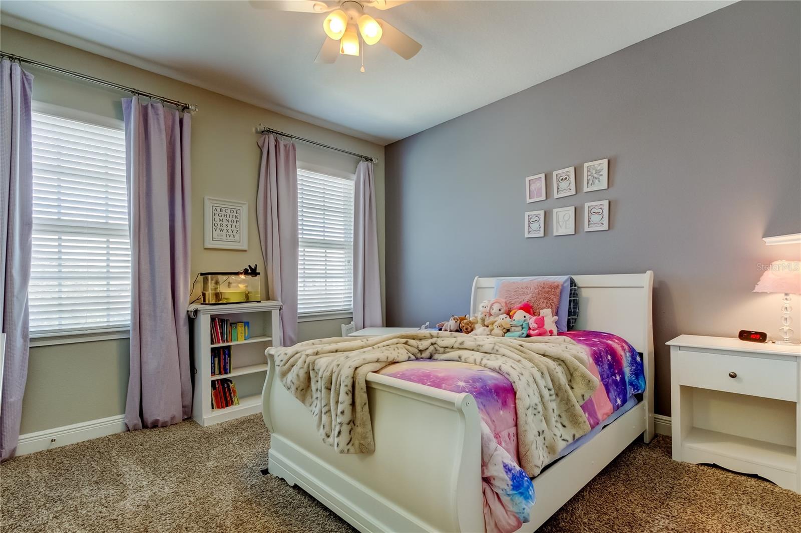 Welcome to this beautifully updated 4-bedroom, 3-bathroom pool home in the highly sought-after Champions Forest neighborhood. Set on a premium conservation lot, this home offers a functional layout, designer upgrades, and a tropical resort style backyard built for year-round Florida living. This home is truly turn-key and loaded with upgrades. Inside, you’ll find rich engineered hardwood floors, elegant crown molding, and upgraded light fixtures throughout the main level. The heart of the home is the gourmet kitchen, featuring a large granite island, 42” white wood cabinets with crown, glass tile backsplash, and a stunning mosaic marble accent under the custom range hood. Built-in stainless steel appliances include a wall oven, microwave, and sleek cooktop with hood. The first-floor bedroom and full bath are perfect for guests or multigenerational living, with a new vanity, upgraded walk-in shower, and wood-look tile finishes. Upstairs, the primary suite features a tray ceiling, crown molding, and a luxurious en-suite bath featuring new quartz vanity with dual sinks, walk-in shower, and a large walk-in closet. Two additional guest bedrooms share a full bath (also with new quartz vanity)—one with direct bathroom access—and a versatile bonus room provides the ideal space for an office, playroom, or second living area. Ceiling fans throughout add comfort and efficiency. Step outside to your tropical resort-style backyard with a heated saltwater pool, sun shelf with bubbler, and travertine decking. The panoramic screen enclosure includes no-see-um screening and a dog door for convenience. The extended lanai, tropical landscaping, outdoor lighting, and French drain system create a relaxing and private outdoor oasis. Located minutes from great rated schools, parks, biking trails, Westchase, shopping, dining, the YMCA, and just 15 minutes to Tampa International Airport and 20 minutes to the Gulf beaches—this home blends luxury, function, and location.