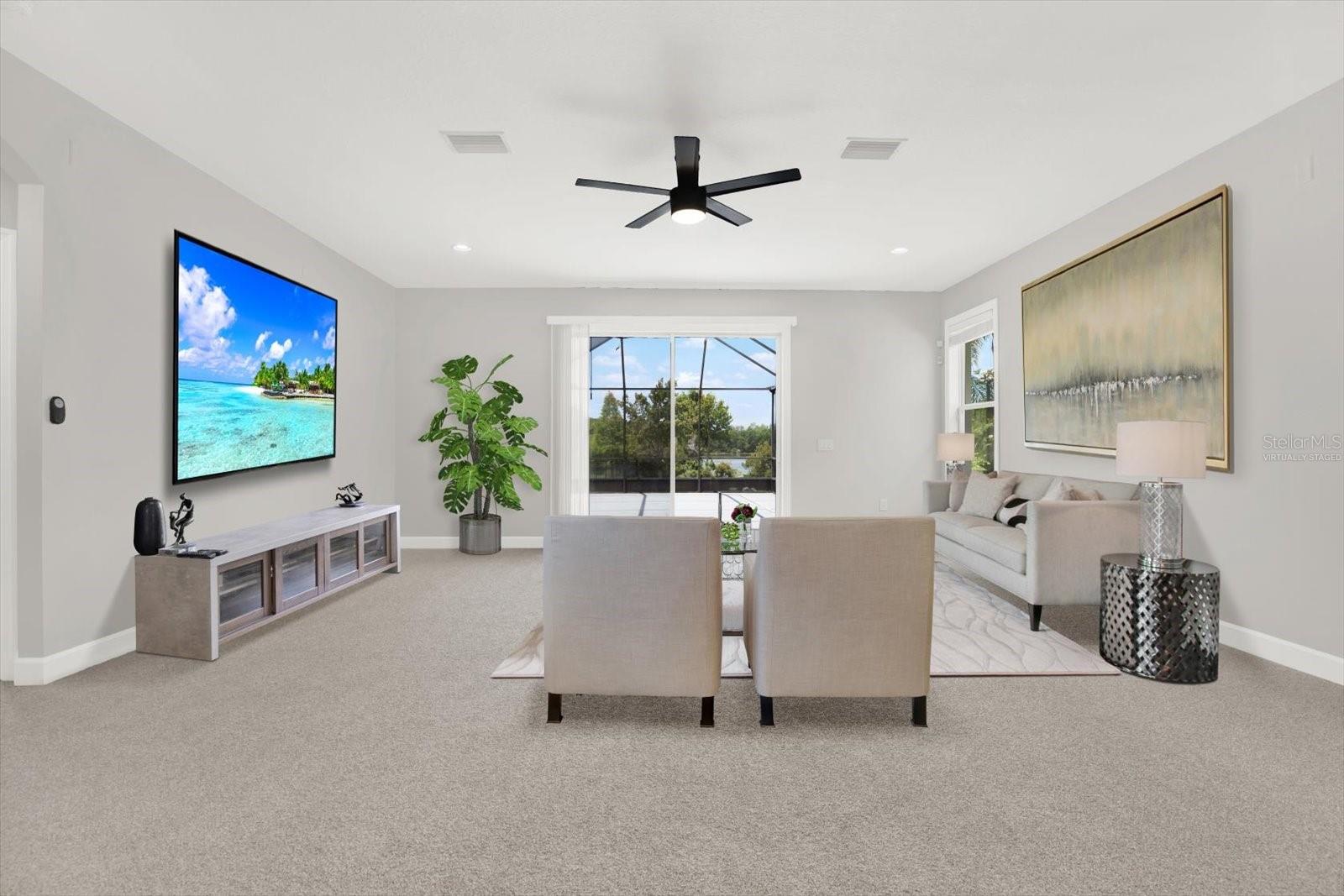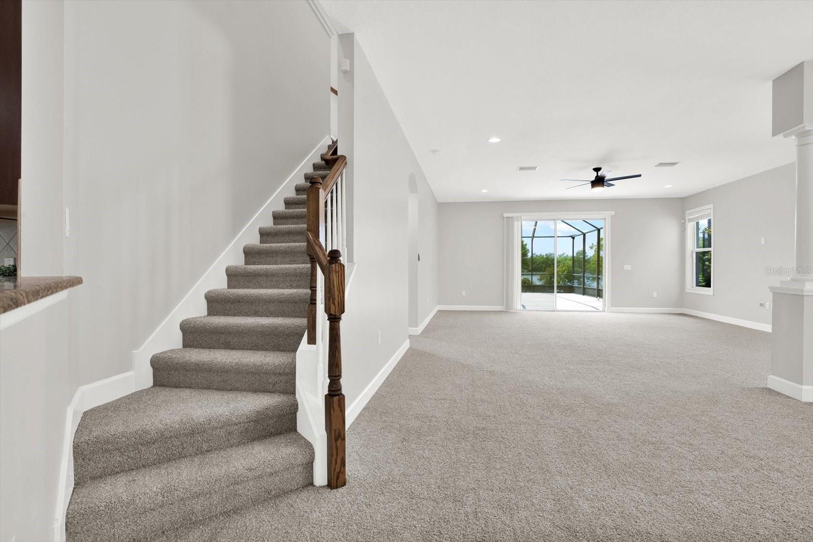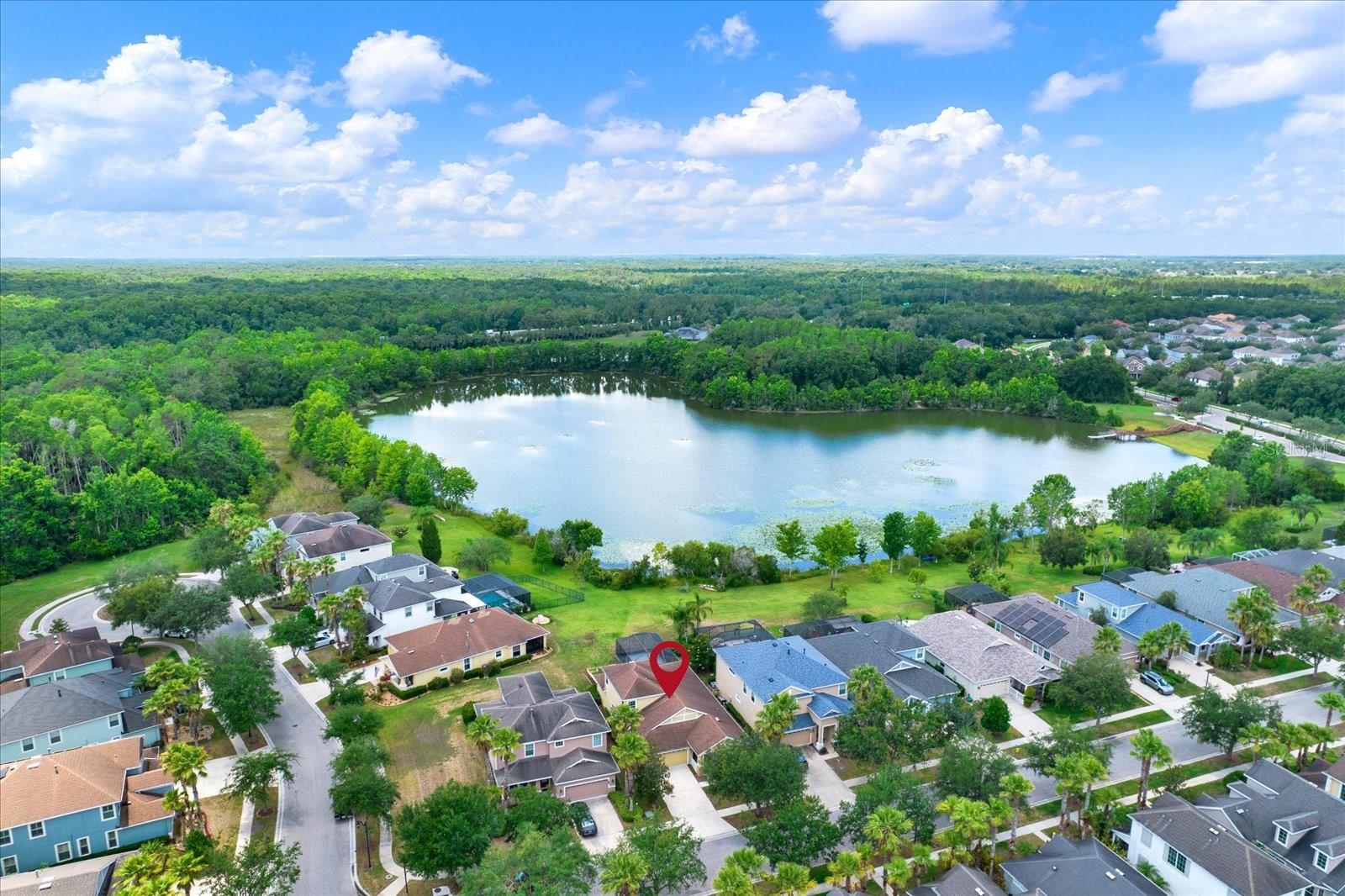 Under contract-accepting backup offers. One or more photo(s) has been virtually staged. Experience waterfront living and a maintenance-included lifestyle in the highly sought-after, guard-gated community of Grand Hampton in New Tampa. Positioned on a premium homesite overlooking Lake Hampton with no rear neighbors, this meticulously maintained home offers scenic views, privacy, and an effortless indoor-outdoor flow from the screened lanai—perfect for morning coffee or evening sunsets over the water. Inside, a bright, open layout features brand-new carpet, ceramic tile in wet areas, and a thoughtfully designed kitchen with granite countertops, stainless steel appliances, a gas range, 42" cabinetry, center island, and an oversized closet pantry. The primary suite is a private retreat with a tray ceiling, dual vanities, granite counters, soaking tub, walk-in shower, private water closet, and generous walk-in closet. Additional highlights include a spacious upstairs bonus room ideal for a home theater, gym, or guest suite, an indoor laundry room, and a two-car garage. A charming front porch and backyard raised garden bed add warmth and personality while complementing the home’s elevated design. Grand Hampton offers 24/7 manned gated security and an unparalleled resort lifestyle, including a resort-style pool, lap pool, tennis and pickleball courts, basketball, fishing pier, fitness center, playgrounds, scenic trails, clubhouse, and a full-time lifestyle director. HOA benefits include routine landscaping, annual mulching, exterior painting, high-speed internet, and exclusive access to amenities for a true lock-and-leave experience. Located minutes from top destinations including The Shoppes at Wiregrass, Tampa Premium Outlets, Costco, Target, restaurants, entertainment, USF, Moffitt Cancer Center, AdventHealth, Florida Hospital, and major commuter routes with easy access to downtown Tampa, Tampa International Airport, and award-winning Gulf beaches. This is a rare opportunity to own a lakefront home in one of New Tampa’s most desirable communities—where lifestyle, location, and convenience come together. Schedule your private showing today.