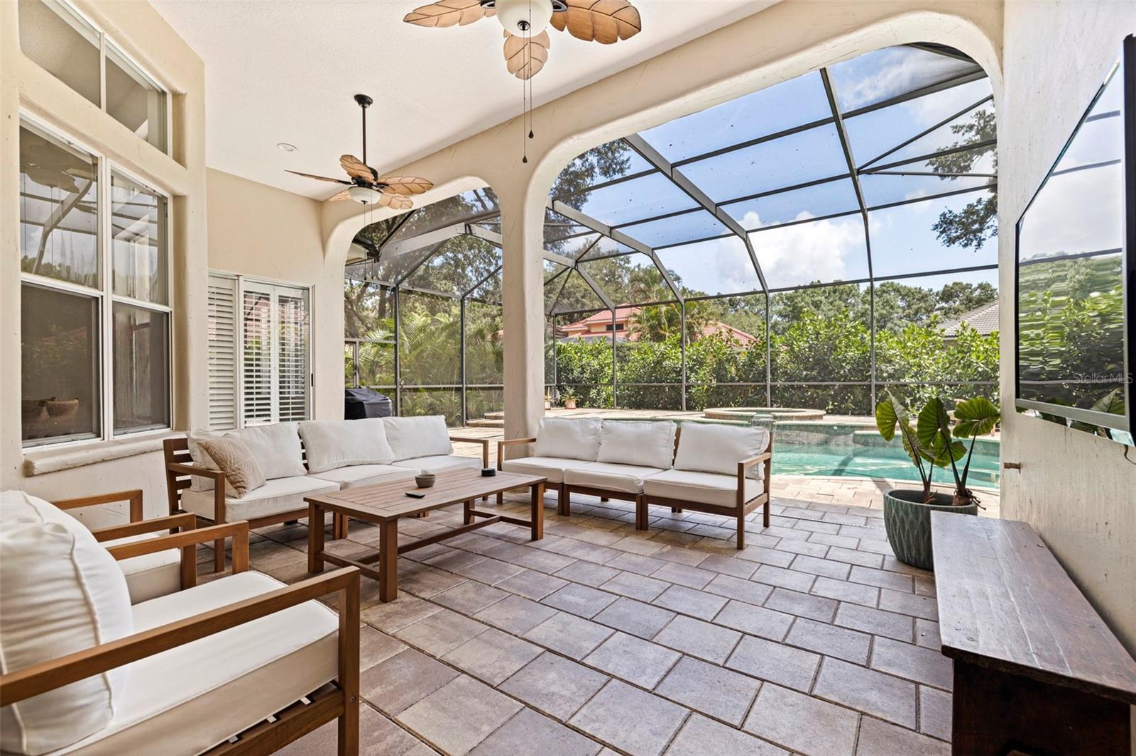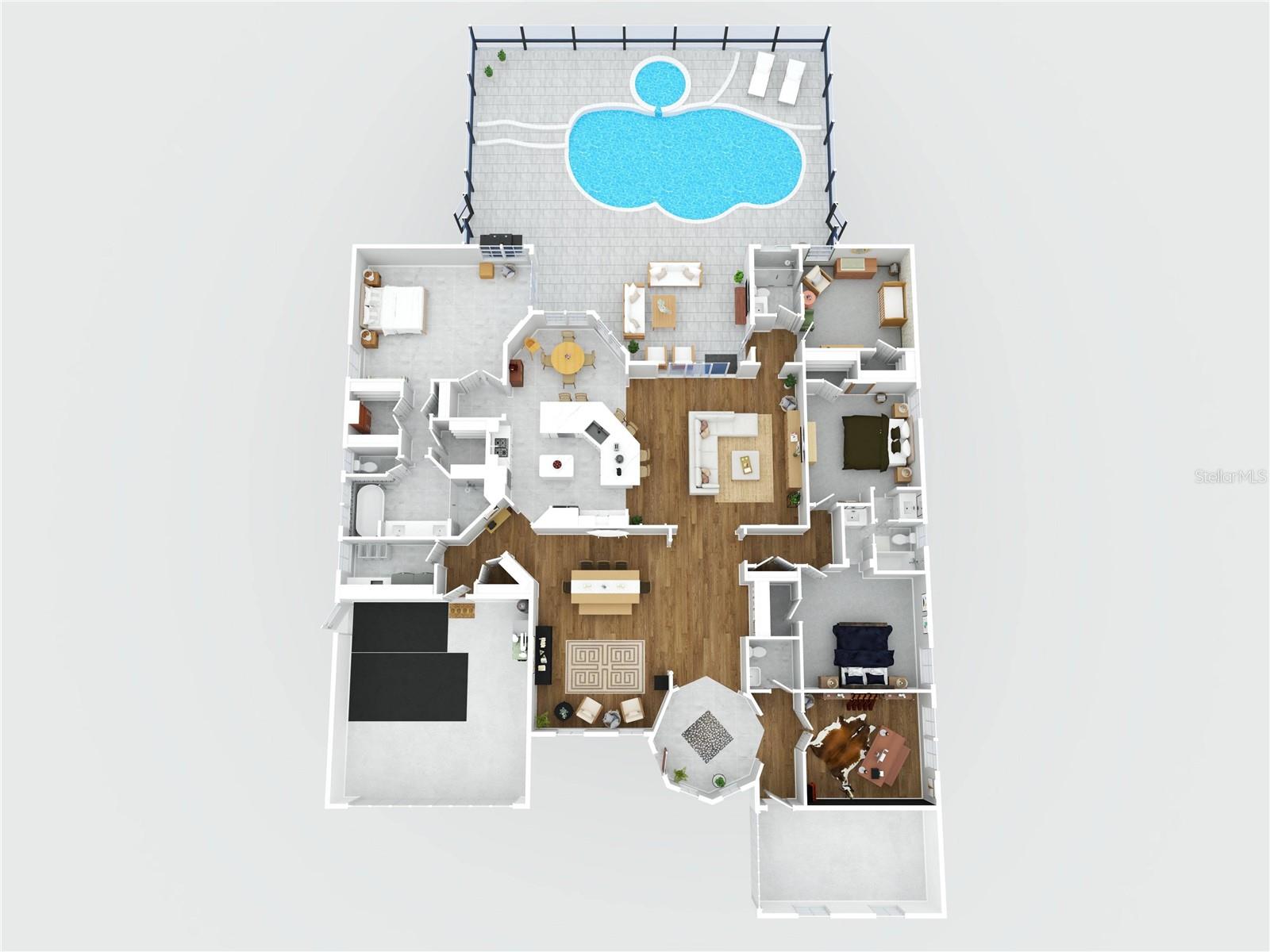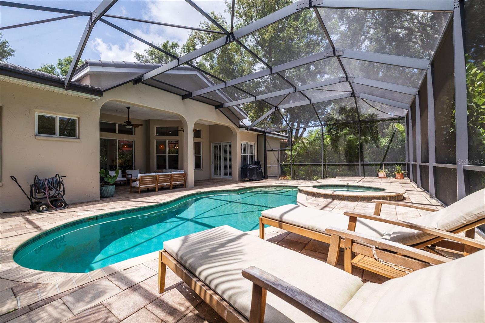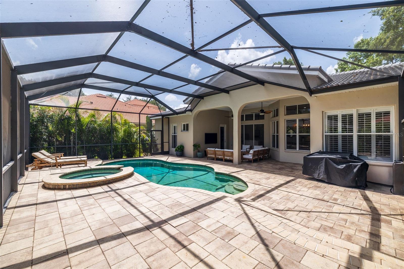 Welcome to 1936 Floresta View Drive—an elegantly updated residence nestled within the exclusive gated enclave of New Floresta, in Tampa’s coveted Lake Magdalene / Carrollwood area. Set high and dry in an X flood zone, with no flood insurance required, this home offers both lasting value and peace of mind. A brand new tile roof adds timeless curb appeal and exceptional durability. Residents enjoy tranquil, tree-lined streets, enhanced privacy, and effortless access to I-275, the Veterans Expressway, downtown Tampa, Tampa International Airport, and top-rated schools. Inside, a dramatic 22-foot turret-style foyer opens to a bright, airy, and thoughtful layout with 12-foot ceilings, engineered hardwood floors, crown molding, and plantation shutters throughout. The kitchen is a chef’s dream, featuring white cabinetry, quartz countertops, stainless steel appliances, a convection microwave, walk-in pantry, and wine fridge. The primary suite includes lanai access, dual custom walk-in closets, and a spa-like bath with a freestanding tub and no-step shower. The split-bedroom layout offers flexibility and privacy with three spacious secondary bedrooms—two sharing a Jack & Jill bath, and one with its own ensuite and pool access. A dedicated office with French doors provides the perfect work-from-home setup. The laundry room includes built-in cabinetry, quartz counters, and a deep sink. Step outside to your own private Florida oasis—a screened-in lanai with heated pool and spa, brick paver deck, TV sitting area, and fully fenced backyard perfect for entertaining or relaxing in comfort. Additional highlights include two separate garages (a 2-car and a 1-car), wired for an EV charging setup, 2021 HVAC systems, and a whole-home water softening system. This move-in ready home blends modern luxury with practical upgrades and is located in one of Tampa’s most sought-after communities—offering comfort, convenience, and low-maintenance living at its finest.