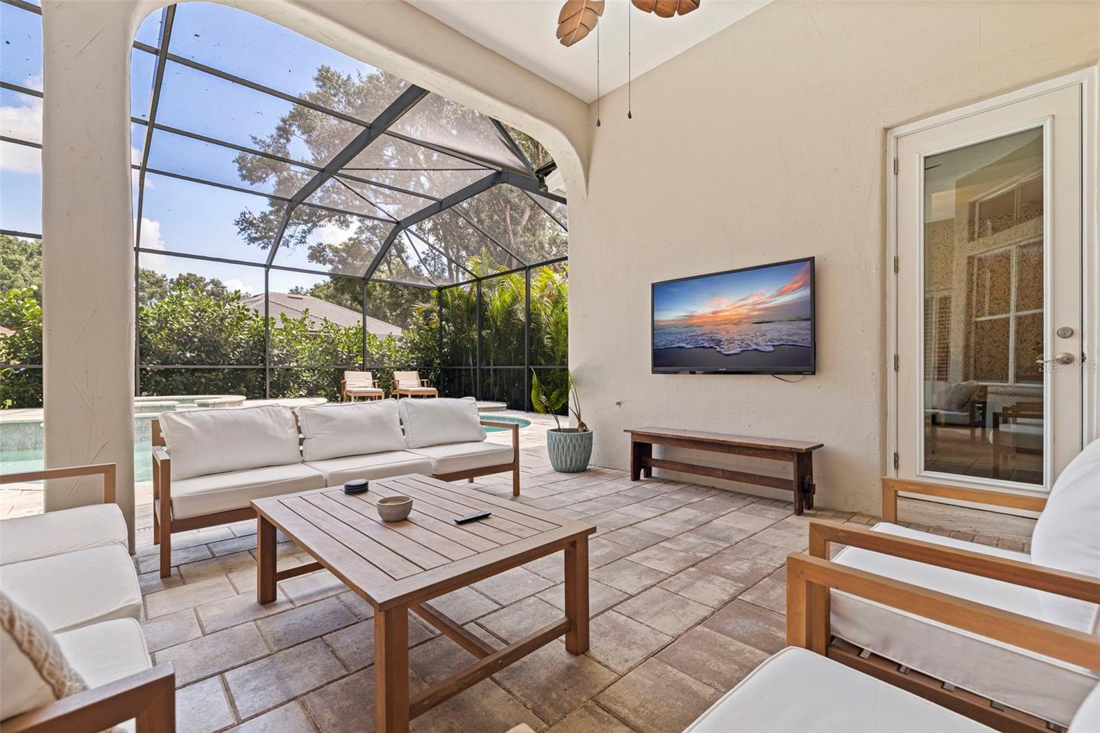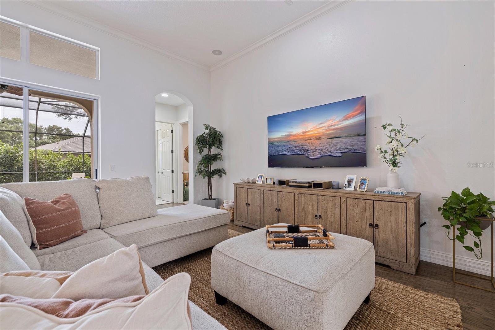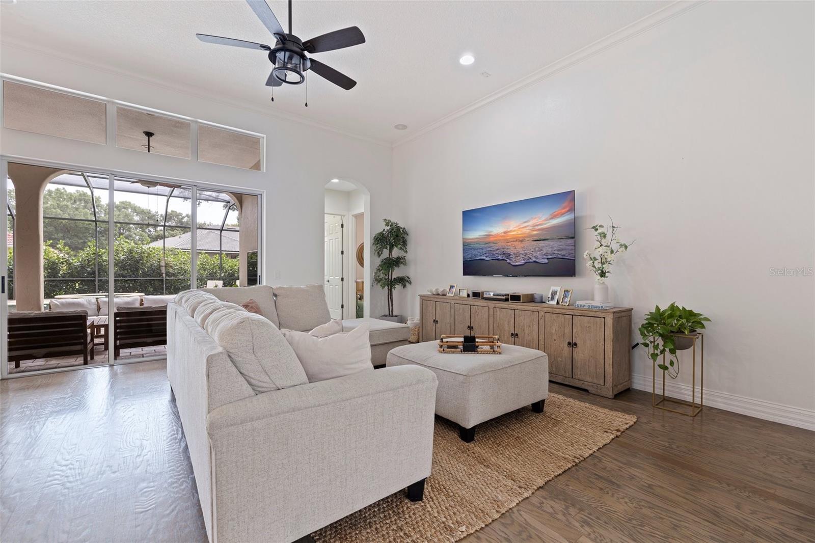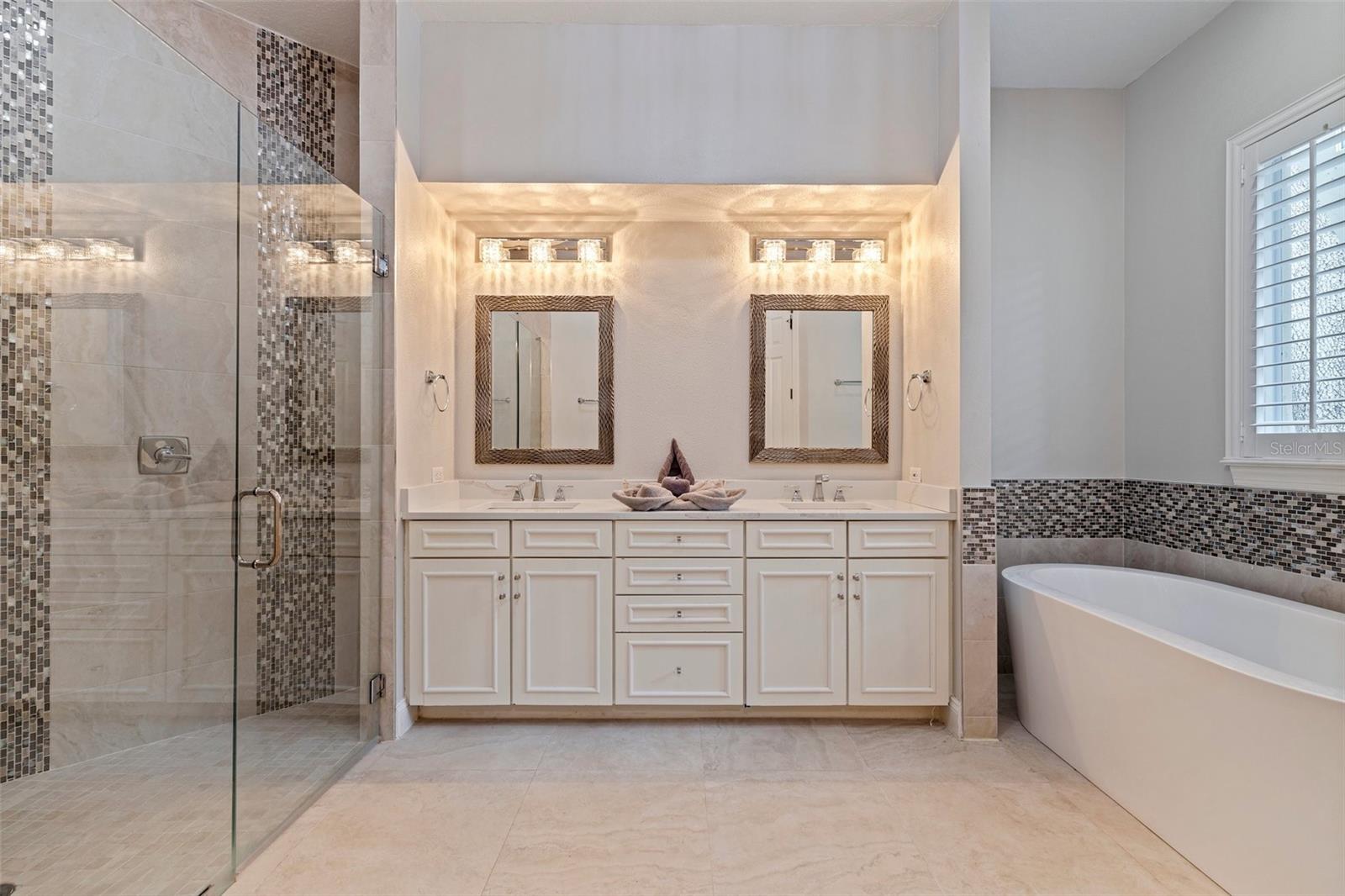 Welcome to 1936 Floresta View Drive—an elegantly updated residence nestled within the exclusive gated enclave of New Floresta, in Tampa’s coveted Lake Magdalene / Carrollwood area. Set high and dry in an X flood zone, with no flood insurance required, this home offers both lasting value and peace of mind. A brand new tile roof adds timeless curb appeal and exceptional durability. Residents enjoy tranquil, tree-lined streets, enhanced privacy, and effortless access to I-275, the Veterans Expressway, downtown Tampa, Tampa International Airport, and top-rated schools. Inside, a dramatic 22-foot turret-style foyer opens to a bright, airy, and thoughtful layout with 12-foot ceilings, engineered hardwood floors, crown molding, and plantation shutters throughout. The kitchen is a chef’s dream, featuring white cabinetry, quartz countertops, stainless steel appliances, a convection microwave, walk-in pantry, and wine fridge. The primary suite includes lanai access, dual custom walk-in closets, and a spa-like bath with a freestanding tub and no-step shower. The split-bedroom layout offers flexibility and privacy with three spacious secondary bedrooms—two sharing a Jack & Jill bath, and one with its own ensuite and pool access. A dedicated office with French doors provides the perfect work-from-home setup. The laundry room includes built-in cabinetry, quartz counters, and a deep sink. Step outside to your own private Florida oasis—a screened-in lanai with heated pool and spa, brick paver deck, TV sitting area, and fully fenced backyard perfect for entertaining or relaxing in comfort. Additional highlights include two separate garages (a 2-car and a 1-car), wired for an EV charging setup, 2021 HVAC systems, and a whole-home water softening system. This move-in ready home blends modern luxury with practical upgrades and is located in one of Tampa’s most sought-after communities—offering comfort, convenience, and low-maintenance living at its finest.
