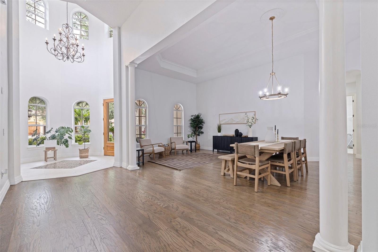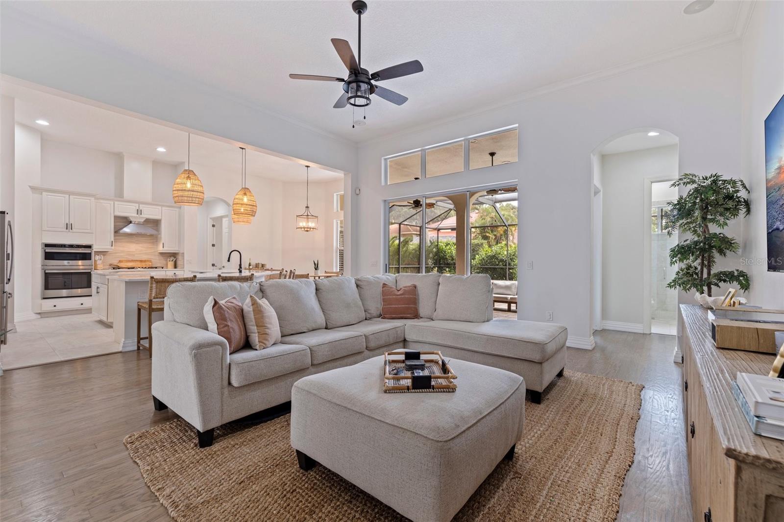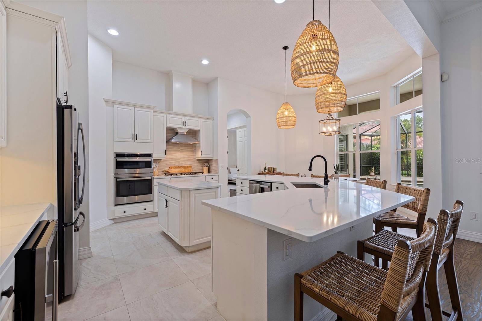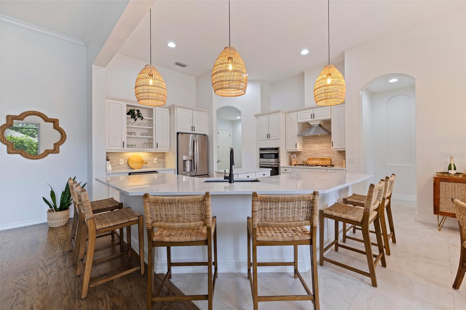 Welcome to 1936 Floresta View Drive—an elegantly updated residence nestled within the exclusive gated enclave of New Floresta, in Tampa’s coveted Lake Magdalene / Carrollwood area. Set high and dry in an X flood zone, with no flood insurance required, this home offers both lasting value and peace of mind. A brand new tile roof adds timeless curb appeal and exceptional durability. Residents enjoy tranquil, tree-lined streets, enhanced privacy, and effortless access to I-275, the Veterans Expressway, downtown Tampa, Tampa International Airport, and top-rated schools. Inside, a dramatic 22-foot turret-style foyer opens to a bright, airy, and thoughtful layout with 12-foot ceilings, engineered hardwood floors, crown molding, and plantation shutters throughout. The kitchen is a chef’s dream, featuring white cabinetry, quartz countertops, stainless steel appliances, a convection microwave, walk-in pantry, and wine fridge. The primary suite includes lanai access, dual custom walk-in closets, and a spa-like bath with a freestanding tub and no-step shower. The split-bedroom layout offers flexibility and privacy with three spacious secondary bedrooms—two sharing a Jack & Jill bath, and one with its own ensuite and pool access. A dedicated office with French doors provides the perfect work-from-home setup. The laundry room includes built-in cabinetry, quartz counters, and a deep sink. Step outside to your own private Florida oasis—a screened-in lanai with heated pool and spa, brick paver deck, TV sitting area, and fully fenced backyard perfect for entertaining or relaxing in comfort. Additional highlights include two separate garages (a 2-car and a 1-car), wired for an EV charging setup, 2021 HVAC systems, and a whole-home water softening system. This move-in ready home blends modern luxury with practical upgrades and is located in one of Tampa’s most sought-after communities—offering comfort, convenience, and low-maintenance living at its finest.