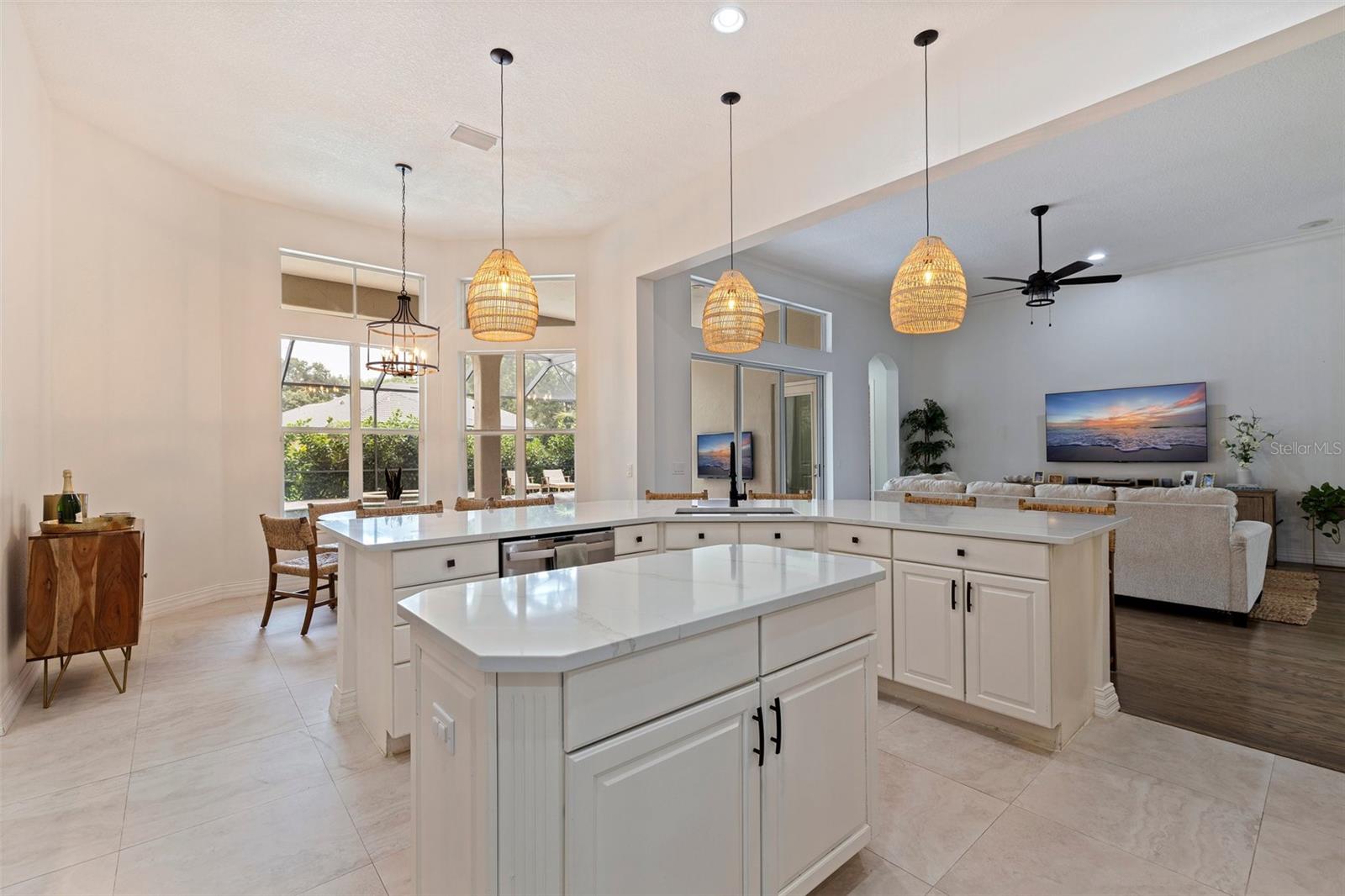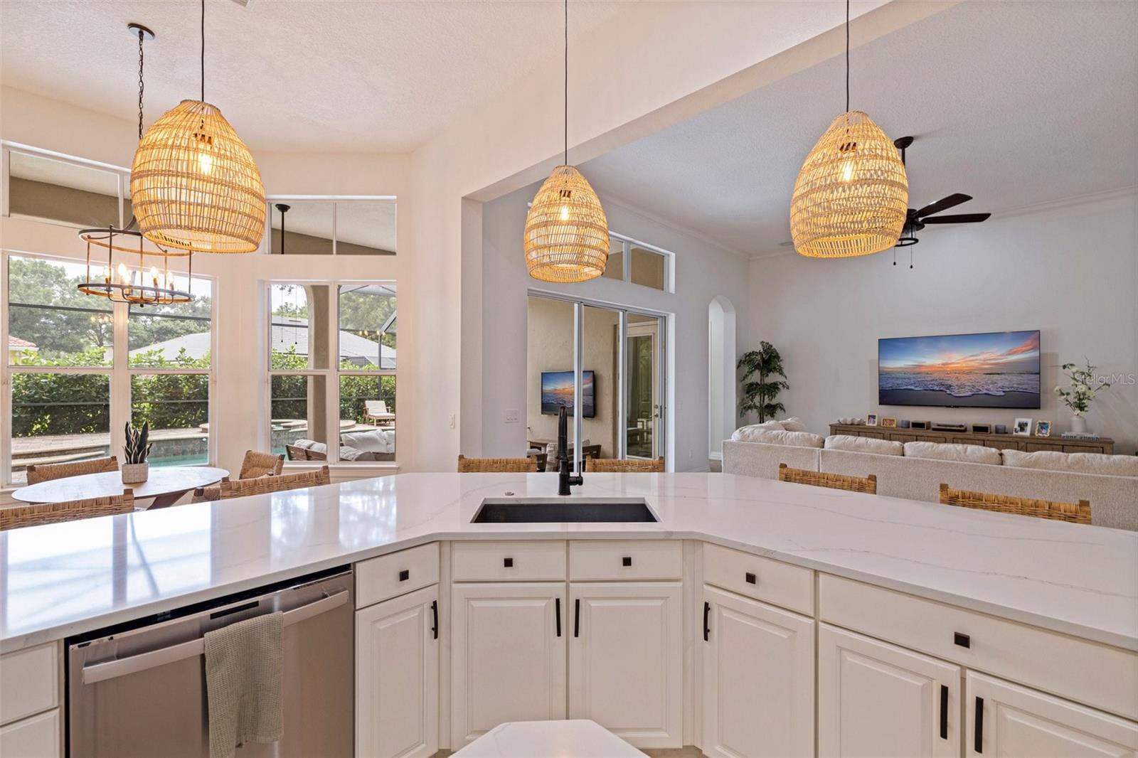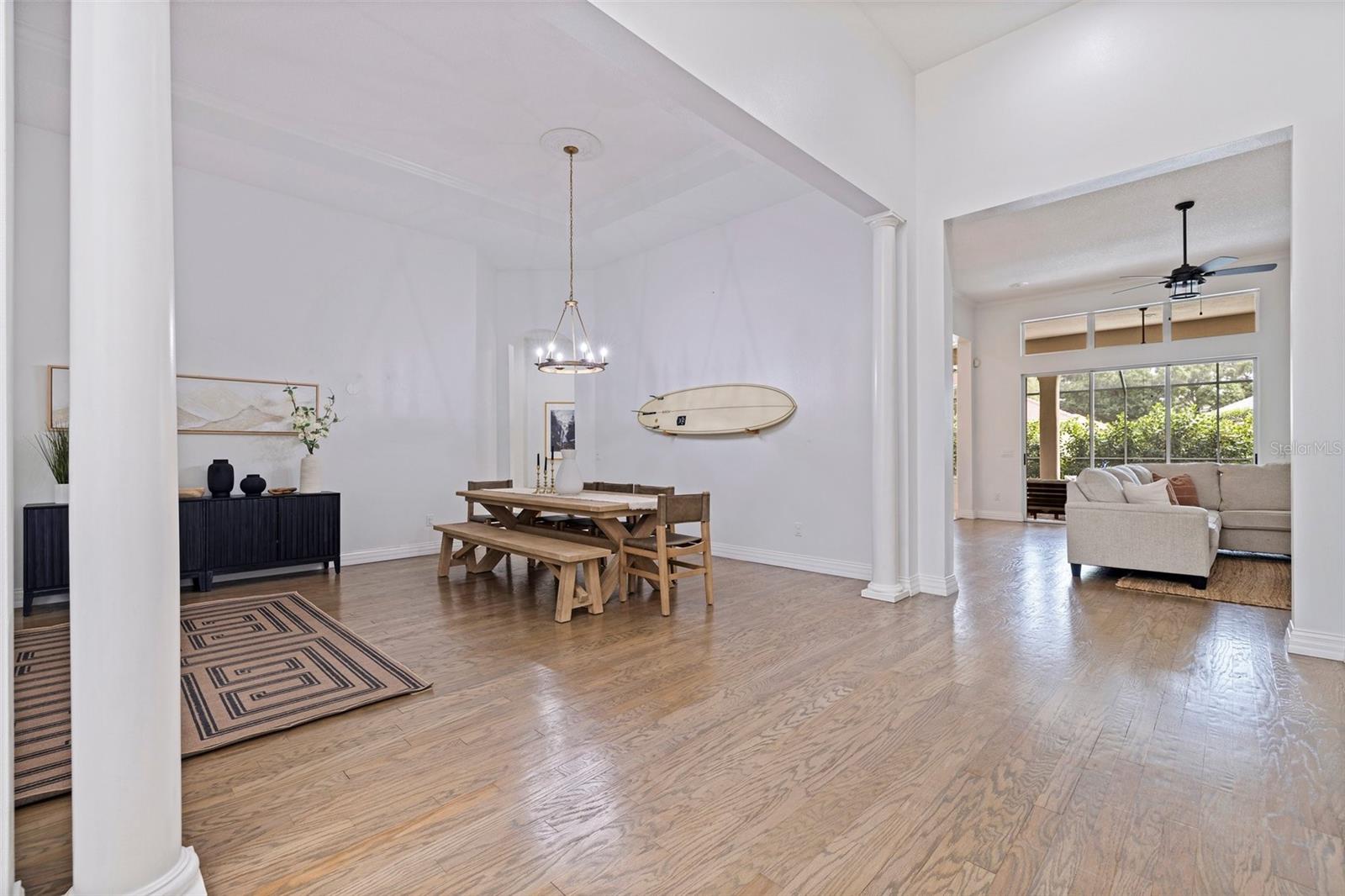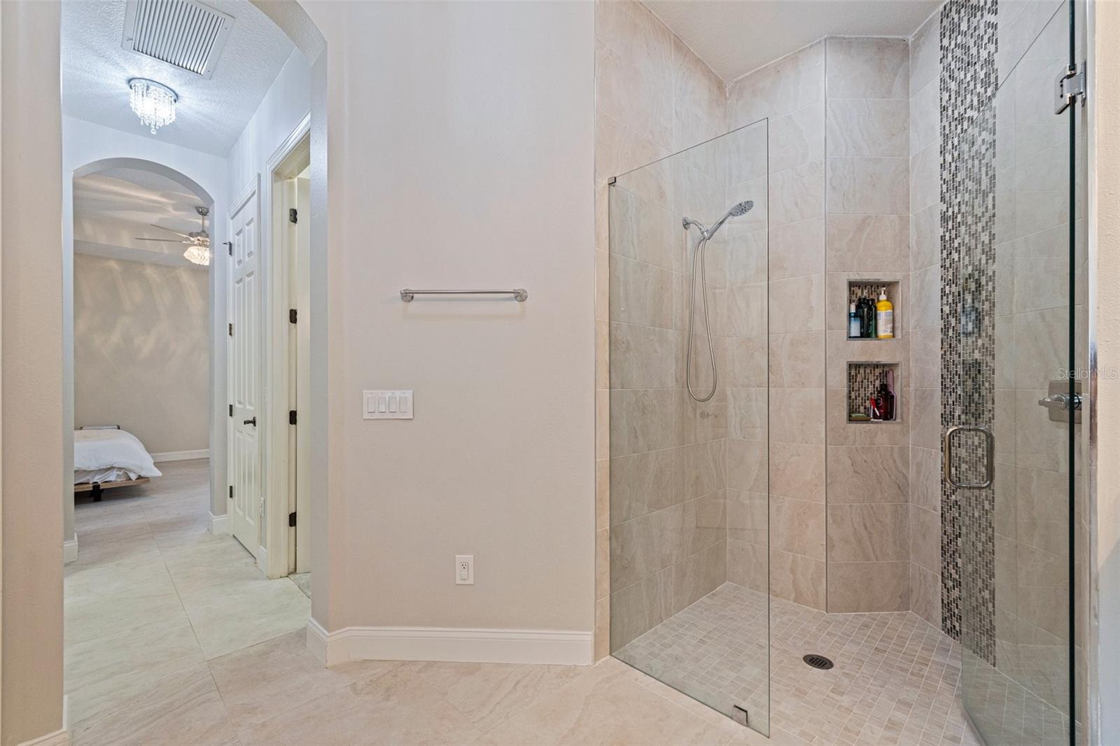 Welcome to 1936 Floresta View Drive—an elegantly updated residence nestled within the exclusive gated enclave of New Floresta, in Tampa’s coveted Lake Magdalene / Carrollwood area. Set high and dry in an X flood zone, with no flood insurance required, this home offers both lasting value and peace of mind. A brand new tile roof adds timeless curb appeal and exceptional durability. Residents enjoy tranquil, tree-lined streets, enhanced privacy, and effortless access to I-275, the Veterans Expressway, downtown Tampa, Tampa International Airport, and top-rated schools. Inside, a dramatic 22-foot turret-style foyer opens to a bright, airy, and thoughtful layout with 12-foot ceilings, engineered hardwood floors, crown molding, and plantation shutters throughout. The kitchen is a chef’s dream, featuring white cabinetry, quartz countertops, stainless steel appliances, a convection microwave, walk-in pantry, and wine fridge. The primary suite includes lanai access, dual custom walk-in closets, and a spa-like bath with a freestanding tub and no-step shower. The split-bedroom layout offers flexibility and privacy with three spacious secondary bedrooms—two sharing a Jack & Jill bath, and one with its own ensuite and pool access. A dedicated office with French doors provides the perfect work-from-home setup. The laundry room includes built-in cabinetry, quartz counters, and a deep sink. Step outside to your own private Florida oasis—a screened-in lanai with heated pool and spa, brick paver deck, TV sitting area, and fully fenced backyard perfect for entertaining or relaxing in comfort. Additional highlights include two separate garages (a 2-car and a 1-car), wired for an EV charging setup, 2021 HVAC systems, and a whole-home water softening system. This move-in ready home blends modern luxury with practical upgrades and is located in one of Tampa’s most sought-after communities—offering comfort, convenience, and low-maintenance living at its finest.