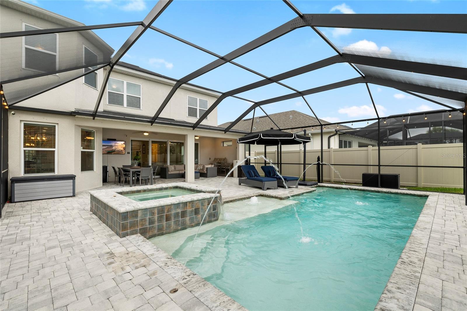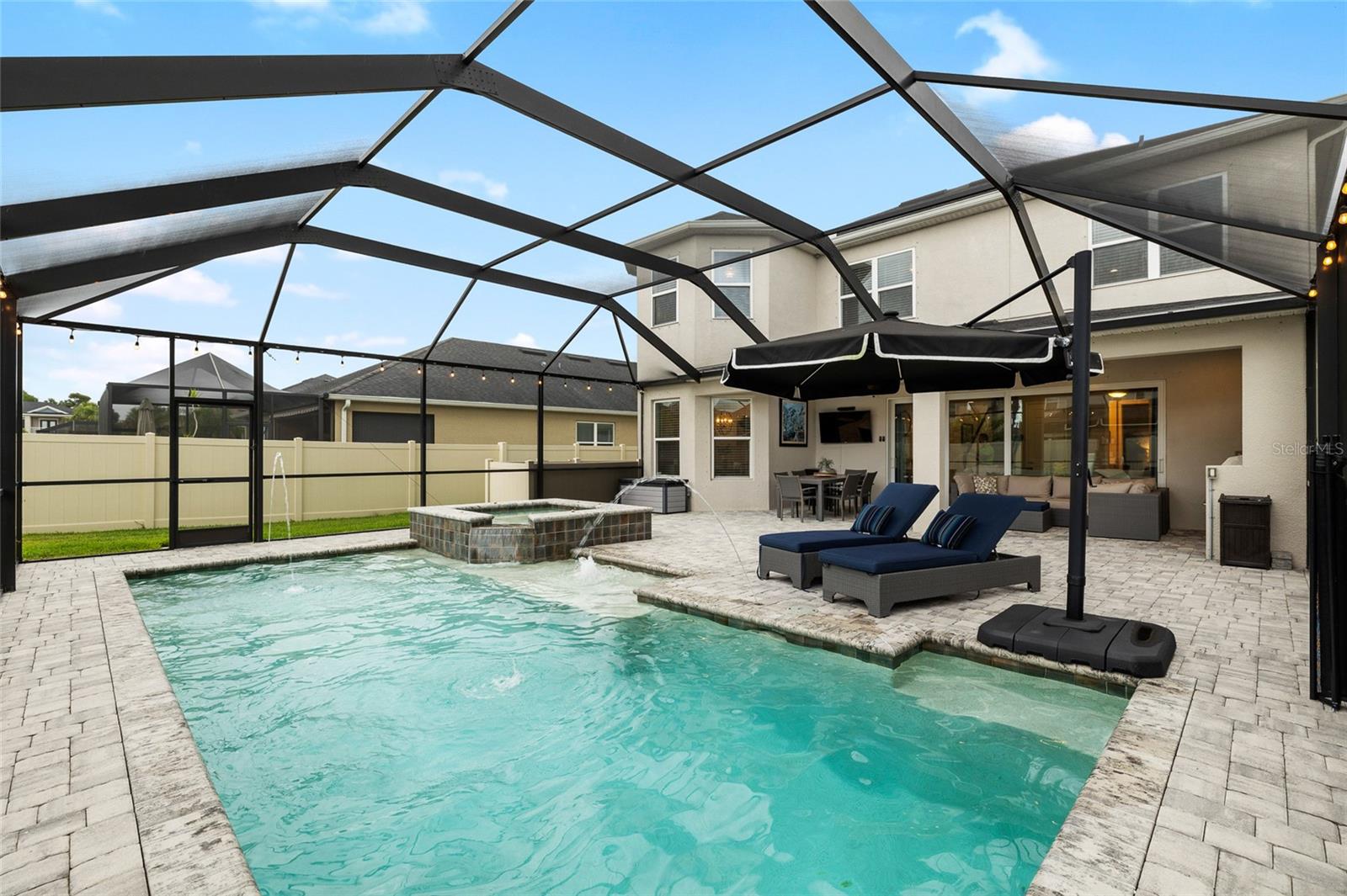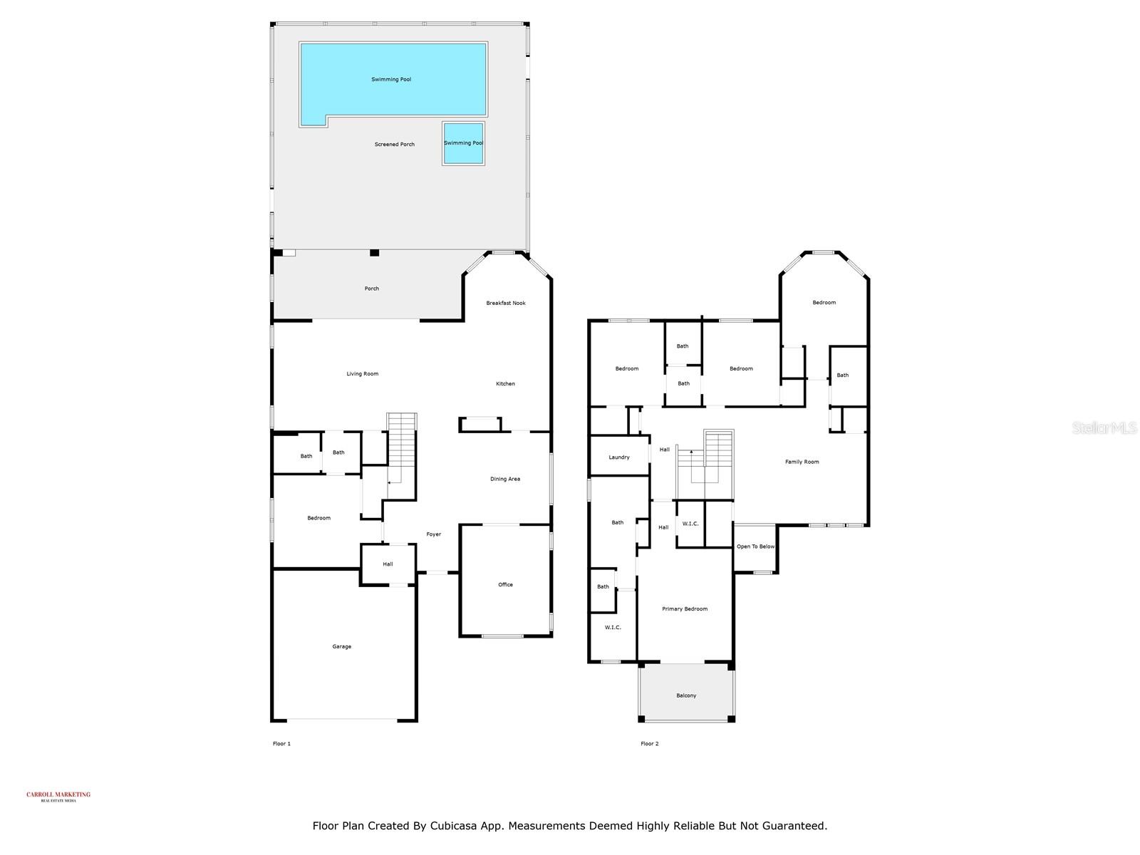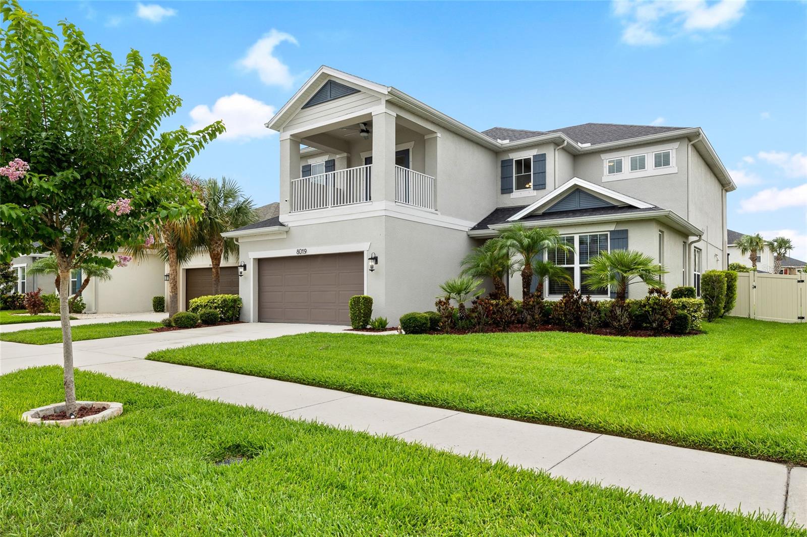 Welcome to 8019 Marbella Creek Ave, a stunning 5-bedroom, 4-bathroom pool home nestled in the private gated community of Cypress Chase—an exclusive enclave of fewer than 70 Taylor Morrison-built homes with no CDD and low HOA fees. Ideally located with quick access to Westchase, downtown Tampa, the Veterans Expressway, Tampa International Airport, and the Gulf beaches, this home offers the perfect balance of convenience and luxury. Inside, you'll find an open-concept floor plan with elegant porcelain wood-look tile throughout the first floor. The layout includes a dedicated office with French doors, a formal dining room with wainscoting, and a cozy breakfast nook. A full bedroom and bathroom downstairs make an ideal space for guests or multigenerational living. The kitchen is equipped with a reverse osmosis system and flows seamlessly into the living room, where sliding glass doors open to a spacious screened-in pavered patio—perfect for entertaining. The outdoor space is pre-plumbed for a summer kitchen and features a heated saltwater pool and spa, all within a private, fenced backyard. Upstairs, a spacious loft offers flexibility for a playroom, media space, or game area. The luxurious primary suite features a private balcony, dual walk-in closets, and a newly renovated spa-like bathroom with double vanities, a makeup station, and a dual-head shower with frameless glass. Additional upgrades include an epoxy-coated garage floor, whole-house water softener, smart home features, and built-in surround sound upstairs and down. This is the one you've been waiting for—schedule your private tour today!