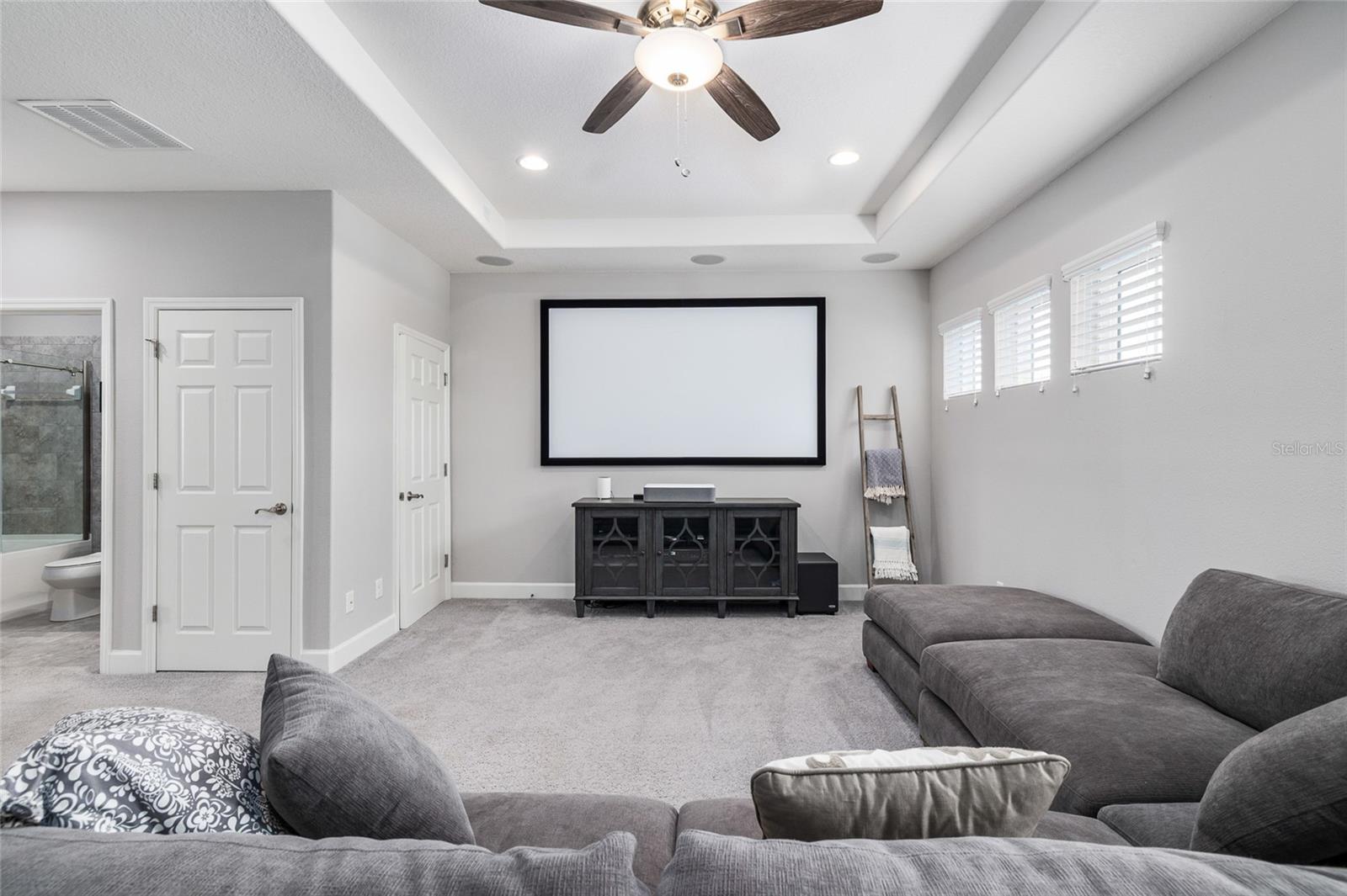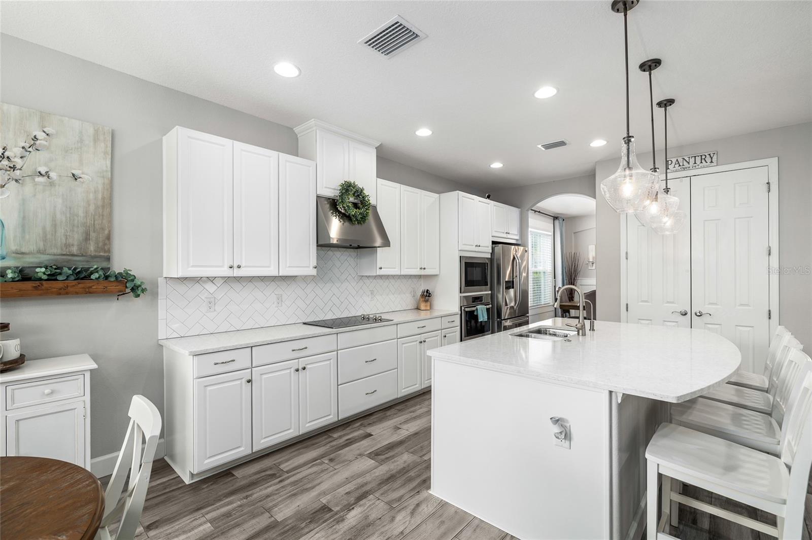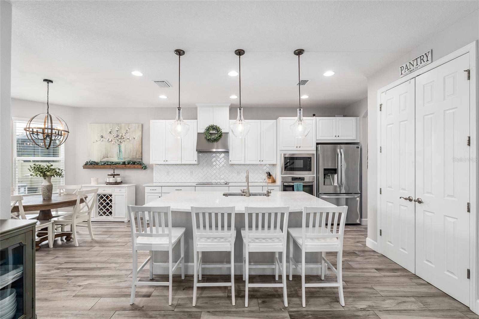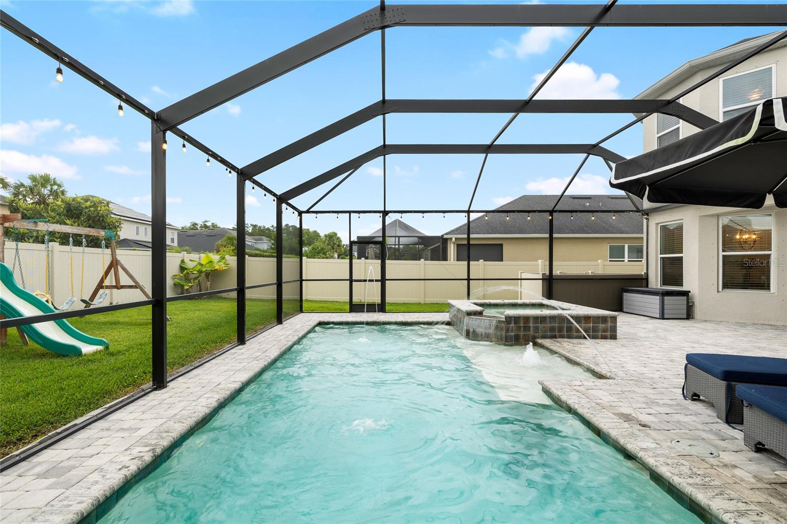 Welcome to 8019 Marbella Creek Ave, a stunning 5-bedroom, 4-bathroom pool home nestled in the private gated community of Cypress Chase—an exclusive enclave of fewer than 70 Taylor Morrison-built homes with no CDD and low HOA fees. Ideally located with quick access to Westchase, downtown Tampa, the Veterans Expressway, Tampa International Airport, and the Gulf beaches, this home offers the perfect balance of convenience and luxury. Inside, you'll find an open-concept floor plan with elegant porcelain wood-look tile throughout the first floor. The layout includes a dedicated office with French doors, a formal dining room with wainscoting, and a cozy breakfast nook. A full bedroom and bathroom downstairs make an ideal space for guests or multigenerational living. The kitchen is equipped with a reverse osmosis system and flows seamlessly into the living room, where sliding glass doors open to a spacious screened-in pavered patio—perfect for entertaining. The outdoor space is pre-plumbed for a summer kitchen and features a heated saltwater pool and spa, all within a private, fenced backyard. Upstairs, a spacious loft offers flexibility for a playroom, media space, or game area. The luxurious primary suite features a private balcony, dual walk-in closets, and a newly renovated spa-like bathroom with double vanities, a makeup station, and a dual-head shower with frameless glass. Additional upgrades include an epoxy-coated garage floor, whole-house water softener, smart home features, and built-in surround sound upstairs and down. This is the one you've been waiting for—schedule your private tour today!