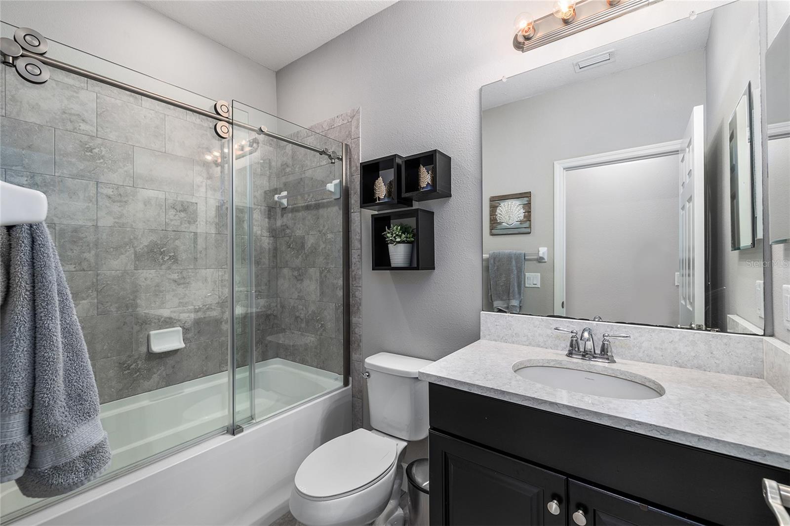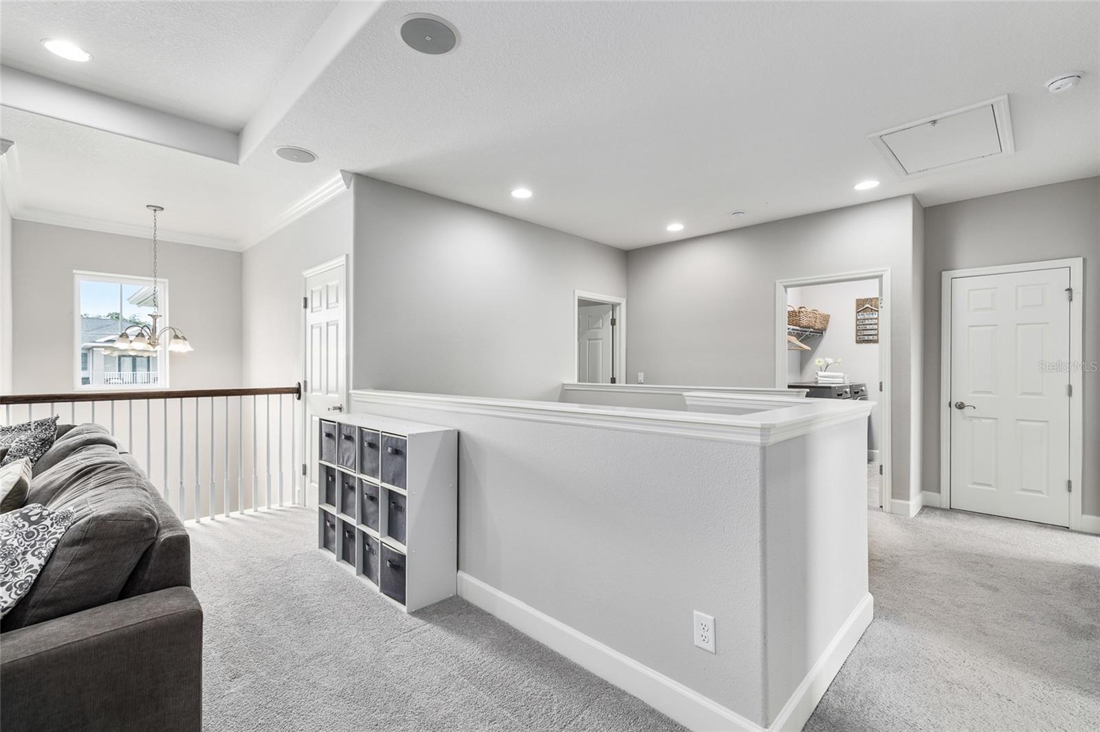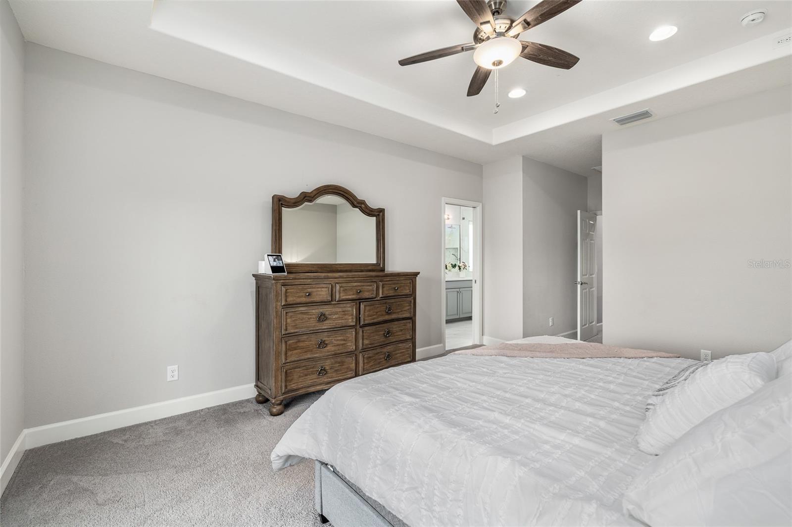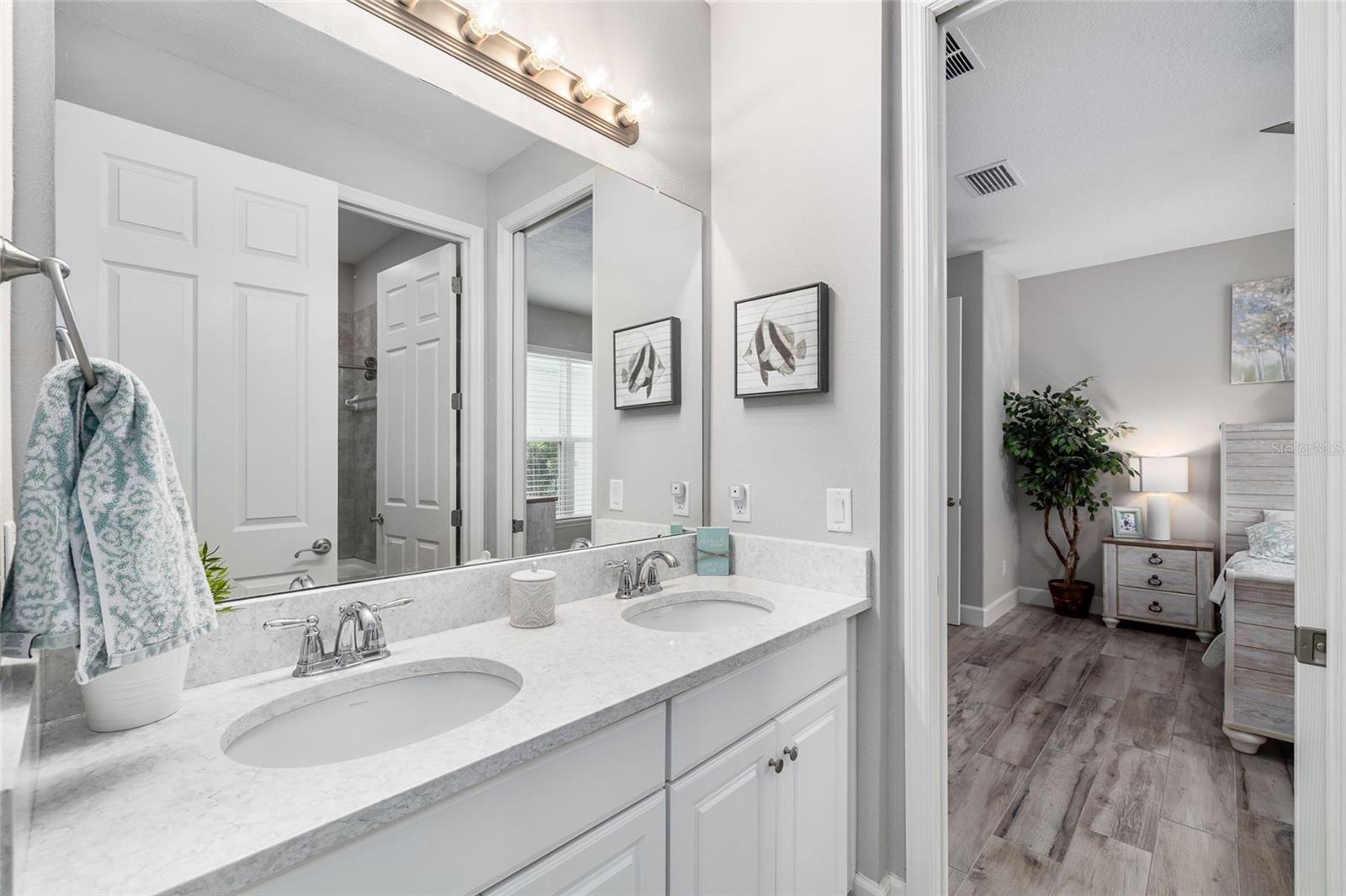 Welcome to 8019 Marbella Creek Ave, a stunning 5-bedroom, 4-bathroom pool home nestled in the private gated community of Cypress Chase—an exclusive enclave of fewer than 70 Taylor Morrison-built homes with no CDD and low HOA fees. Ideally located with quick access to Westchase, downtown Tampa, the Veterans Expressway, Tampa International Airport, and the Gulf beaches, this home offers the perfect balance of convenience and luxury. Inside, you'll find an open-concept floor plan with elegant porcelain wood-look tile throughout the first floor. The layout includes a dedicated office with French doors, a formal dining room with wainscoting, and a cozy breakfast nook. A full bedroom and bathroom downstairs make an ideal space for guests or multigenerational living. The kitchen is equipped with a reverse osmosis system and flows seamlessly into the living room, where sliding glass doors open to a spacious screened-in pavered patio—perfect for entertaining. The outdoor space is pre-plumbed for a summer kitchen and features a heated saltwater pool and spa, all within a private, fenced backyard. Upstairs, a spacious loft offers flexibility for a playroom, media space, or game area. The luxurious primary suite features a private balcony, dual walk-in closets, and a newly renovated spa-like bathroom with double vanities, a makeup station, and a dual-head shower with frameless glass. Additional upgrades include an epoxy-coated garage floor, whole-house water softener, smart home features, and built-in surround sound upstairs and down. This is the one you've been waiting for—schedule your private tour today!