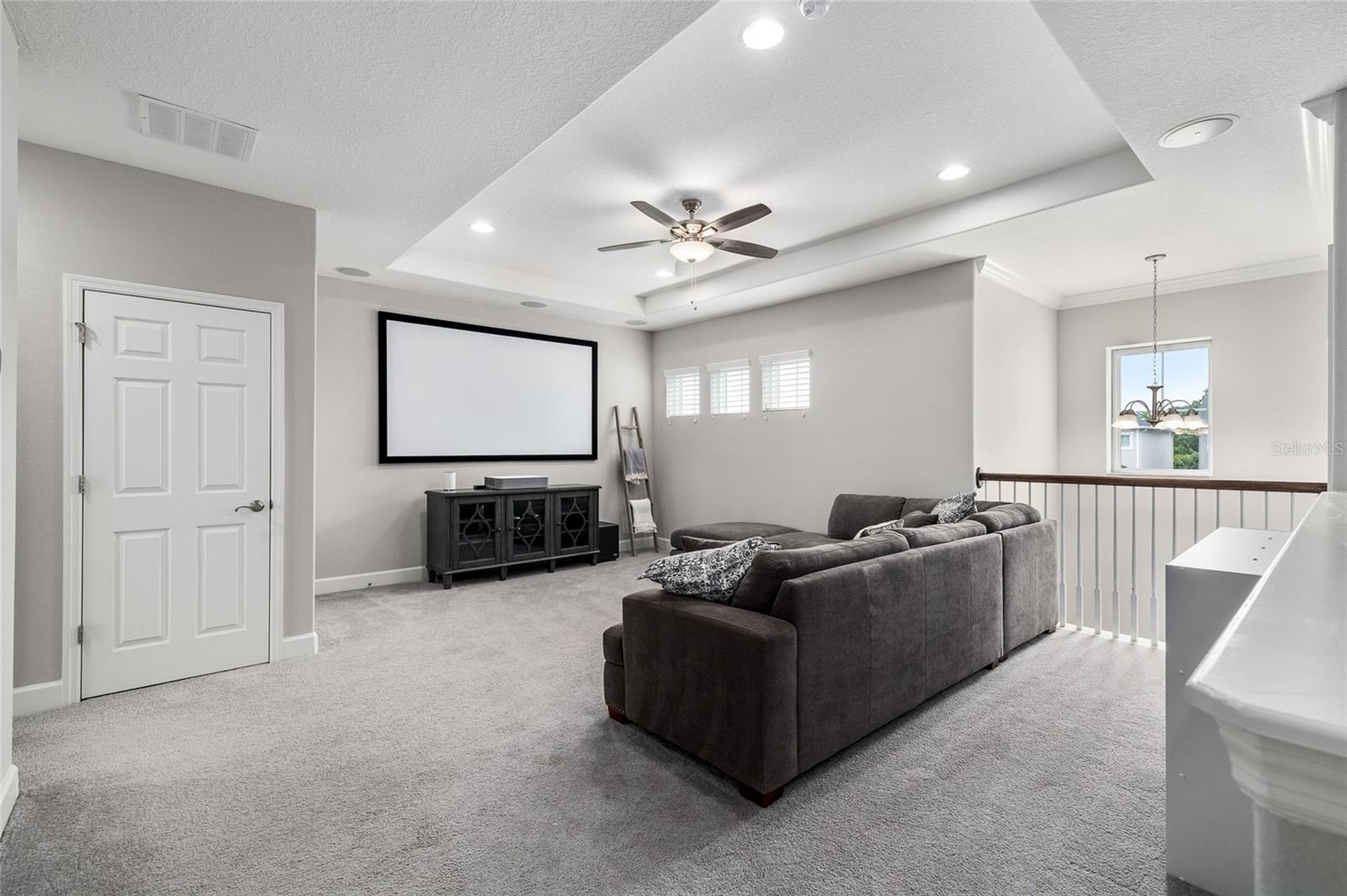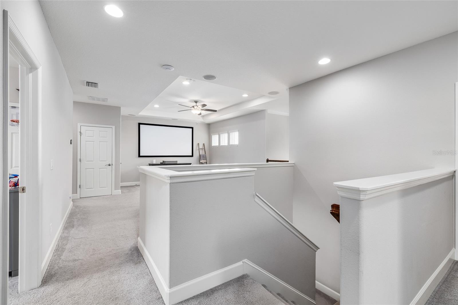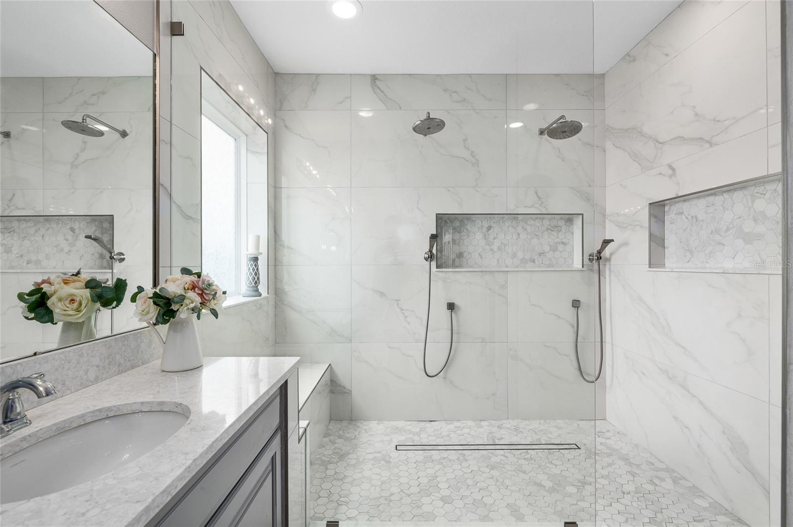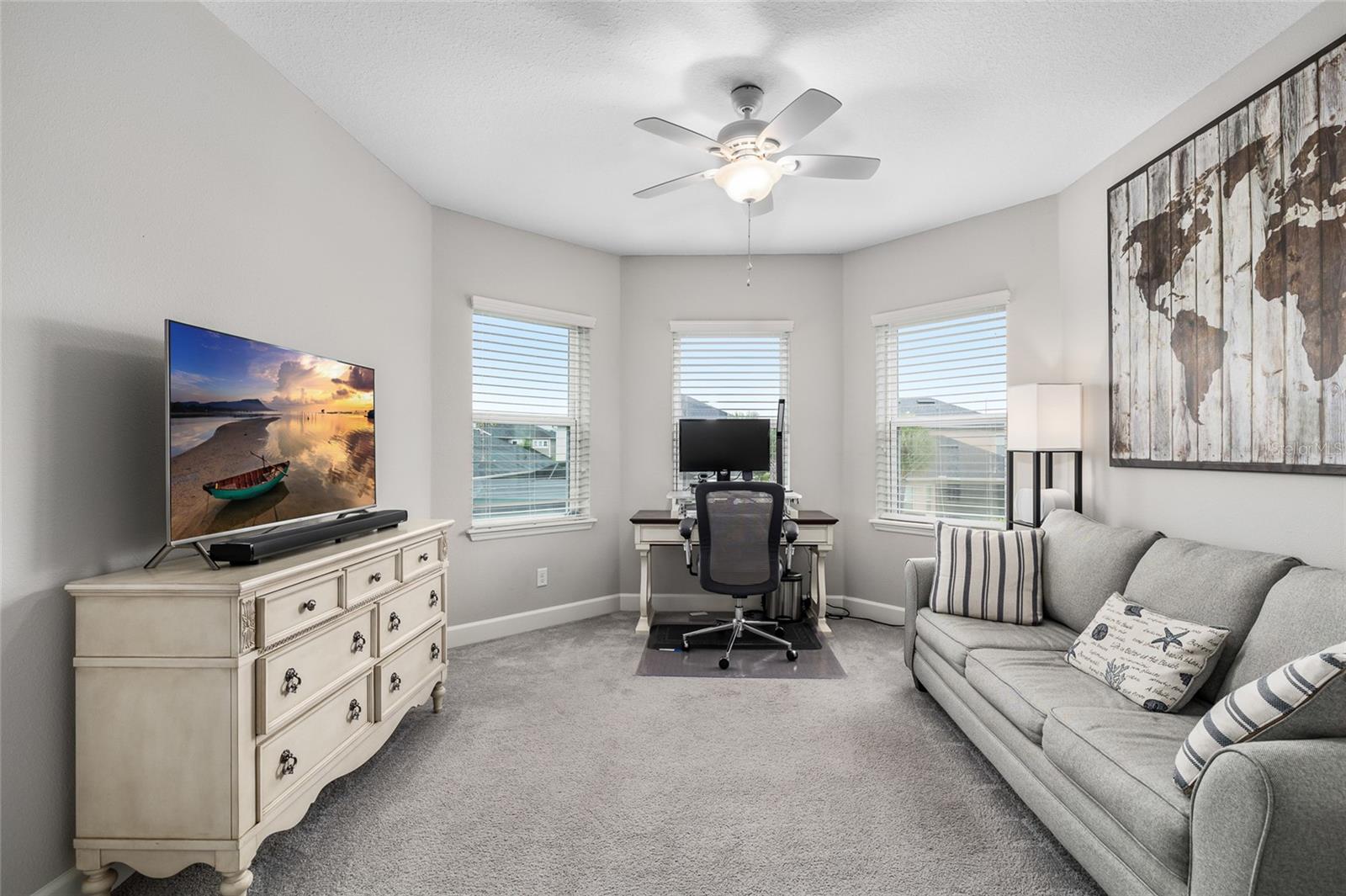 Welcome to 8019 Marbella Creek Ave, a stunning 5-bedroom, 4-bathroom pool home nestled in the private gated community of Cypress Chase—an exclusive enclave of fewer than 70 Taylor Morrison-built homes with no CDD and low HOA fees. Ideally located with quick access to Westchase, downtown Tampa, the Veterans Expressway, Tampa International Airport, and the Gulf beaches, this home offers the perfect balance of convenience and luxury. Inside, you'll find an open-concept floor plan with elegant porcelain wood-look tile throughout the first floor. The layout includes a dedicated office with French doors, a formal dining room with wainscoting, and a cozy breakfast nook. A full bedroom and bathroom downstairs make an ideal space for guests or multigenerational living. The kitchen is equipped with a reverse osmosis system and flows seamlessly into the living room, where sliding glass doors open to a spacious screened-in pavered patio—perfect for entertaining. The outdoor space is pre-plumbed for a summer kitchen and features a heated saltwater pool and spa, all within a private, fenced backyard. Upstairs, a spacious loft offers flexibility for a playroom, media space, or game area. The luxurious primary suite features a private balcony, dual walk-in closets, and a newly renovated spa-like bathroom with double vanities, a makeup station, and a dual-head shower with frameless glass. Additional upgrades include an epoxy-coated garage floor, whole-house water softener, smart home features, and built-in surround sound upstairs and down. This is the one you've been waiting for—schedule your private tour today!