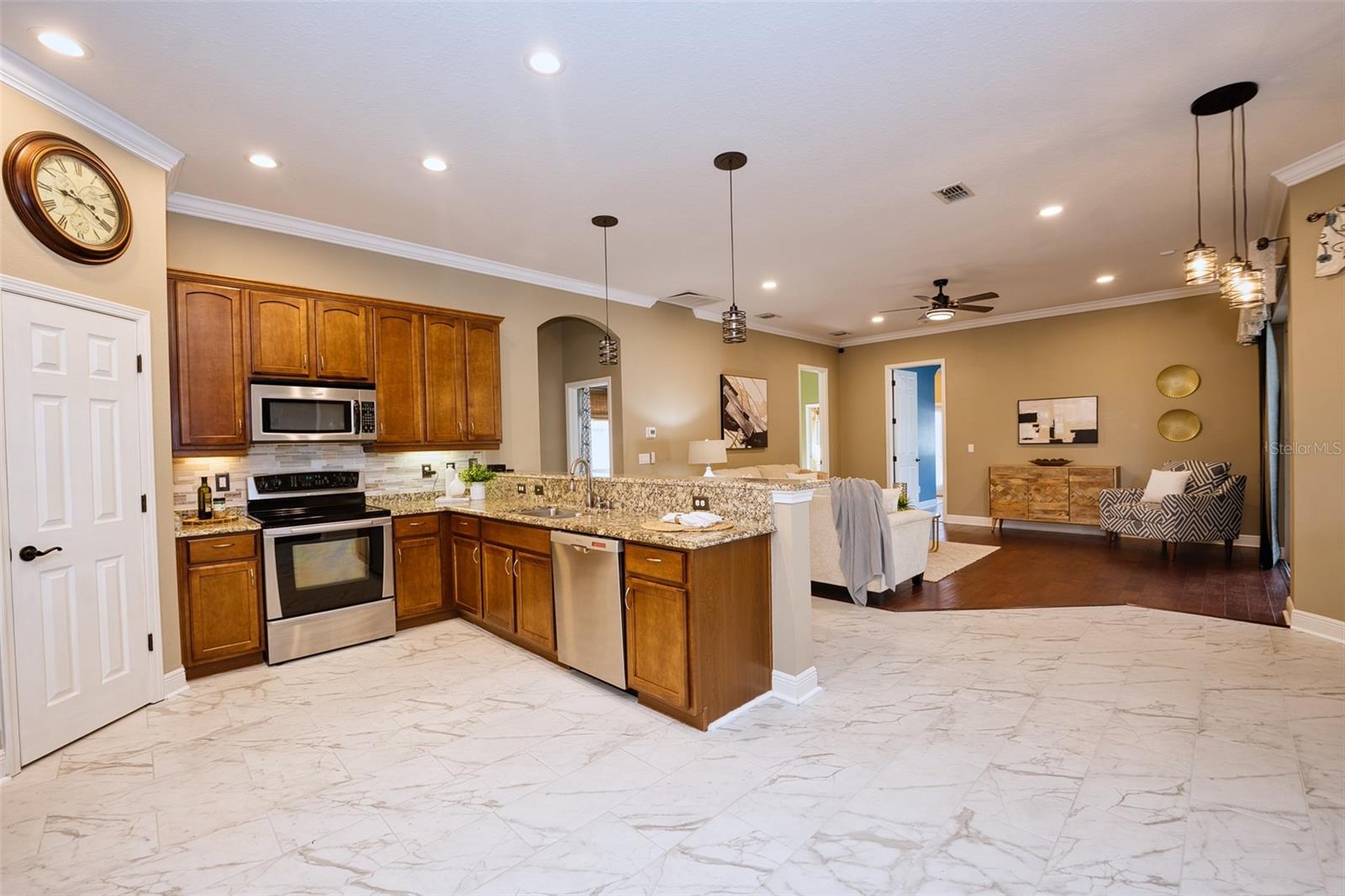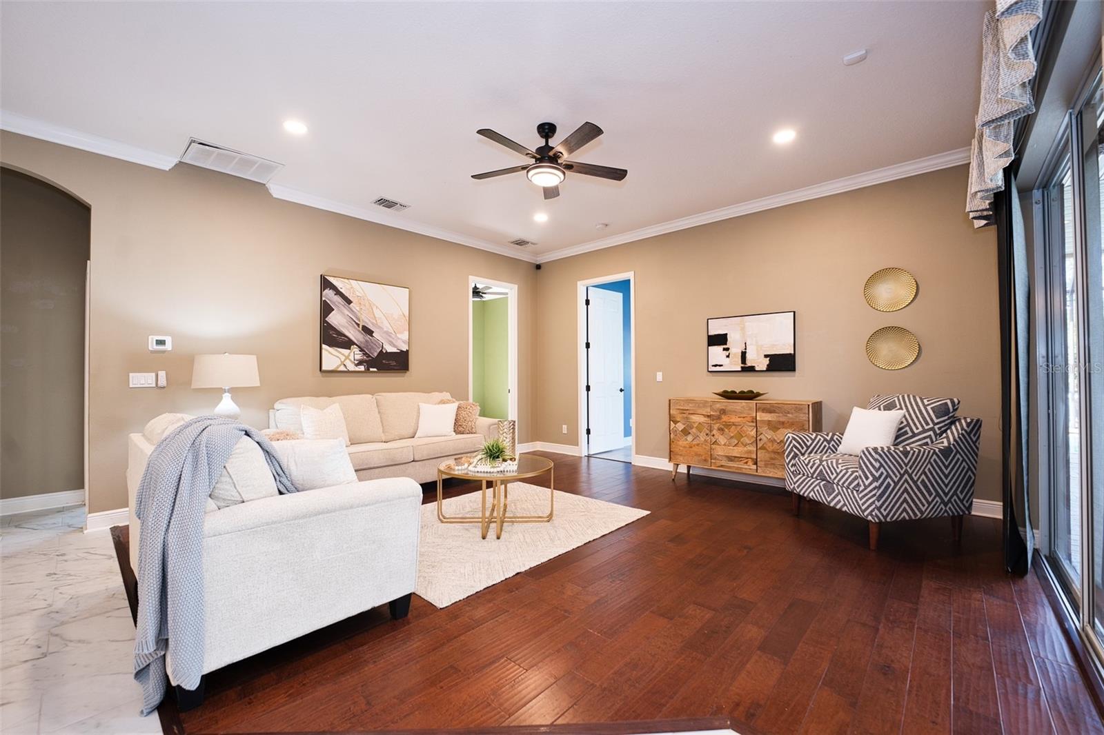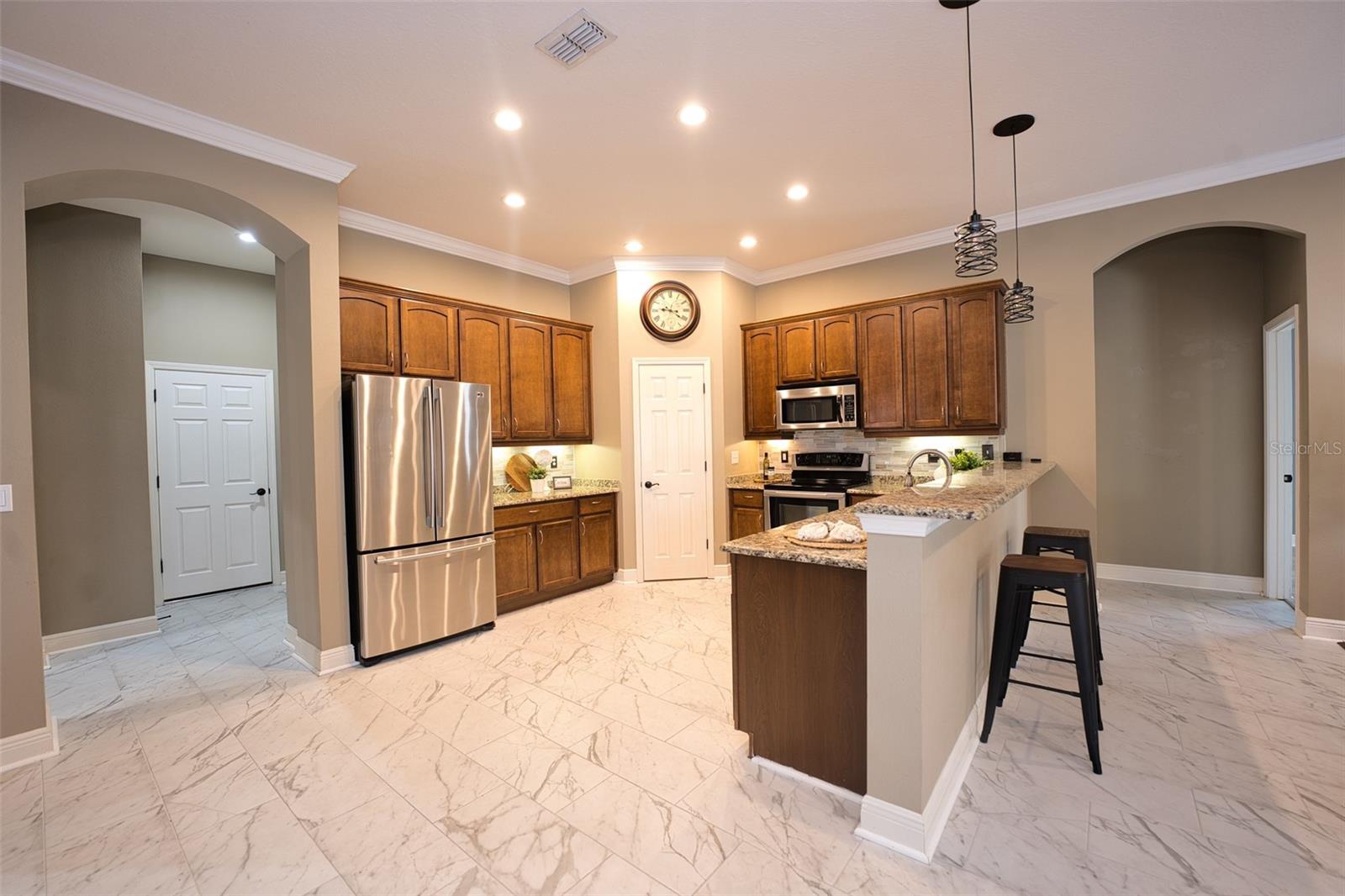 Stunning 4-Bedroom Pool Home with Office & Bonus Room in Gated Heritage Isles! Welcome to Florida living at its finest! This beautifully updated 4-bedroom, 3-bath home with a private office and versatile bonus room offers over 3,100 sq ft of thoughtfully designed living space—all on a serene conservation lot in the highly sought-after gated community of Heritage Isles. Step inside to find an inviting open-concept layout accented with crown molding, wainscoting, and elegant window trim. The gourmet kitchen is a dream come true for any chef, boasting granite countertops, upgraded cabinetry, stainless steel appliances, and a spacious breakfast bar overlooking the main living area. The primary suite is your private retreat, complete with a spa-like ensuite bathroom and a generous walk-in closet. Three additional bedrooms offer ample space for family or guests, while the dedicated office makes working from home a breeze. A separate bonus room provides flexibility for a game room, gym, or media space. Step outside to your private outdoor oasis—a heated saltwater pool, travertine deck, and fenced backyard overlooking the lush preserve and golf course. Perfect for relaxing evenings or entertaining friends. Recent Upgrades Include: New Roof (2022) Two New HVAC Units (2022 & 2023) New Flooring (2024) Additional Features: 3-Car Garage Low HOA Fees Resort-Style Amenities: Clubhouse, Pool, Fitness Center, Tennis Courts, Playground Prime Location: Minutes to I-75, USF, top-rated schools, shopping, dining & medical centers Don’t miss the opportunity to own this move-in ready home in one of Tampa’s premier communities. Schedule your private showing today!