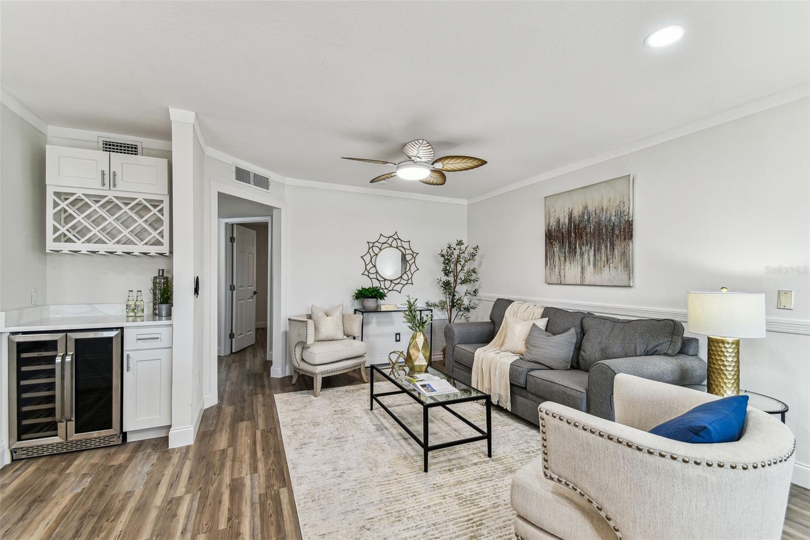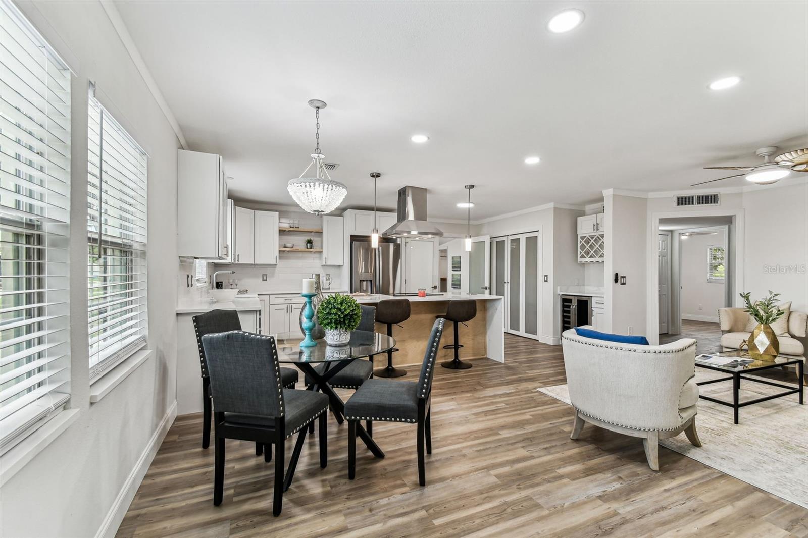 Welcome home to this beautifully renovated waterfront retreat in the heart of Tampa’s beloved Bay Crest Park! Bring your boat and step into the perfect blend of sophisticated design and easygoing Florida charm. This 4-bedroom, 2-bathroom home offers 1,638 square feet of thoughtfully crafted living space, with an open floorplan that fills the home with natural light and provides effortless flow from room to room. At the heart of this updated home lies a designer kitchen that stuns with its two-tone cabinetry—crisp white paired with warm wood accents—topped with luxurious granite countertops. A farmhouse sink, modern hood, built-in microwave drawer, and dry bar with wine rack and dual-zone cooler make this a dream kitchen for both everyday living and entertaining. The spacious primary suite is a peaceful sanctuary, complete with a custom walk-in closet and a spa-inspired en-suite bathroom. Indulge in a frameless glass shower with a natural waterfall feature, bold blue herringbone tile, and exquisite gold hardware. A thoughtfully designed split floorplan provides privacy, with two additional bedrooms, and one oversized bedroom or office with its own mini split service and a full bath, ideally situated for guests or family members. Throughout the home, luxury vinyl plank flooring offers the timeless look of hardwood with durability suited for waterfront living. Step outside to your private backyard oasis, where new brick pavers lead to your own dock—your personal launch point for Gulf adventures, sunset cruises, or relaxing days on the water. This home has been fully updated with a new roof and all major systems—AC, plumbing, and electrical—replaced in 2024 with proper permits. And with no HOA, no CDD, and low-cost transferable flood insurance, peace of mind comes standard. Located just minutes from shopping, dining, major highways, and a private neighborhood boat launch, this move-in-ready gem combines modern comfort with unbeatable waterfront access. Schedule your private tour today and discover the lifestyle that awaits in one of Tampa’s most desirable boating communities.