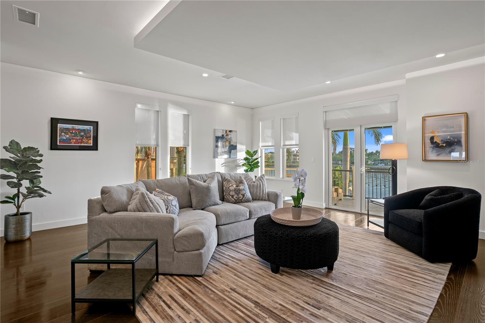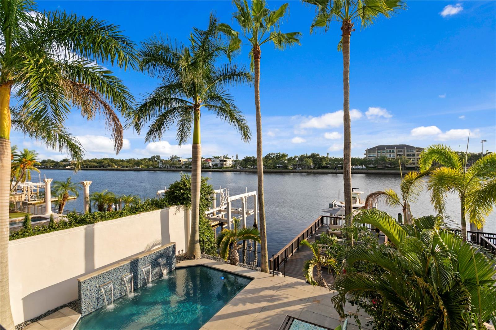 Welcome home to the pinnacle of casual sophistication on Harbour Island, where a completely redesigned three-level waterfront residence redefines luxury living in Tampa Bay. Framed by the artistry of SOL Design Architecture, this home greets you with a front entry hallway that effortlessly unfolds into a luminous great room. Towering windows capture daily sunsets over the water, while seamless sightlines invite the outdoors in, setting the stage for both intimate evenings and grand gatherings. Step into the chef’s kitchen, where Wolf and Sub-Zero appliances stand ready beneath custom millwork and expansive storage. The great room flows to a cantilevered deck suspended above the water and adds an additional nearly 600 sf of outdoor living, complete with a private pool, spa, covered lanai, and built-in Wolfe outdoor kitchen. Whether you’re hosting sunset cocktails or slipping into your boat for a day on the water, every moment here feels both private and jubilant. On the first floor, discover a versatile bedroom suite—ideal as a guest retreat, home office, or private workout studio—with its own ensuite bath. A solid steel and wood floating staircase sweeps you upward to a dedicated media and game room, where a wet bar and second-floor balcony offer panoramic water vistas. Two additional bedrooms share a nicely appointed full bath with double vanities and oversized tub and shower with chic finishes and beautiful pendant lights. Ascend to the third floor and enter an entire wing devoted to the primary suite, a five-star sanctuary overlooking the glistening waters. The spa-inspired bathroom flows directly into the bedroom, delivering uninterrupted water views from the oversized soaking tub to the glass doors. An adjacent custom closet provides an abundance of storage, ensuring that form and function unite in perfect harmony. The location of this residence is superior to others within the neighborhood providing exceptional privacy and expansive views, unlike others in the neighborhood, as it abuts the prestigious Pointe neighborhood. Harbour Island’s 24-hour guarded gates ensure serenity, yet you’re mere steps from Tampa’s vibrant Riverwalk, Bayshore Boulevard, Water Street, and the city’s premier arts and dining districts. Commuters appreciate quick access to I-275, the Lee Roy Selmon Expressway, and Tampa International Airport, making every aspect of daily life effortless. Move right in and begin living the waterfront dream you’ve always imagined—sunsets, sailing, and sophisticated entertaining await.