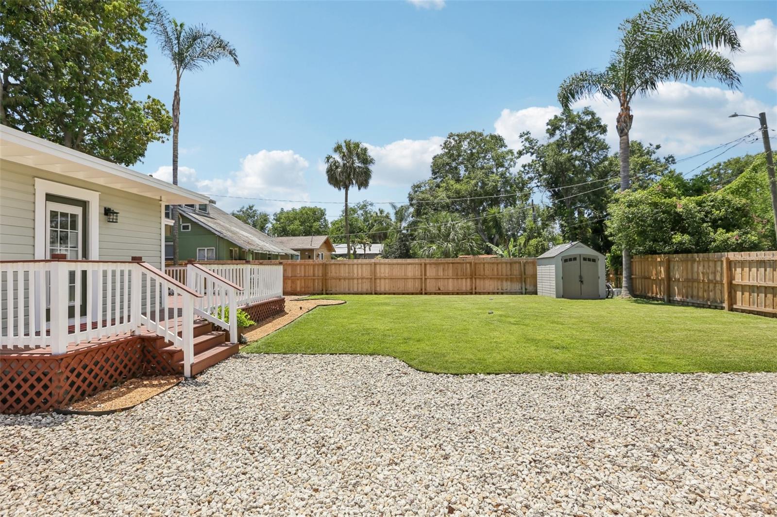 Timeless Charm Meets Modern Comfort in the Heart of Seminole Heights! Step into this beautifully updated 1925 wood-frame bungalow offering the perfect blend of vintage character and contemporary living. With 2 spacious bedrooms and 2 full baths—including a private en-suite and walk-in closet in the primary suite—this home is designed for comfort and functionality. You'll love relaxing on the inviting front porch or entertaining in the wide, open living area that flows seamlessly into a generous dining room and a large, well-equipped kitchen. Situated on a deep 60x133 ft lot, the fully fenced backyard is a private retreat, featuring a manicured lawn, expansive deck, and plenty of space to unwind or entertain. With gate access from both the front and rear (E Wilder Ave), you'll enjoy unmatched flexibility for parking multiple vehicles, your RV, or even a boat. Recent updates include fresh interior/exterior paint, a newer roof, and HVAC—ensuring peace of mind for years to come. Located just minutes from I-275, downtown Tampa, Water Street, Armature Works, and all the eclectic restaurants and bars that make Seminole Heights one of Tampa’s most desirable neighborhoods.