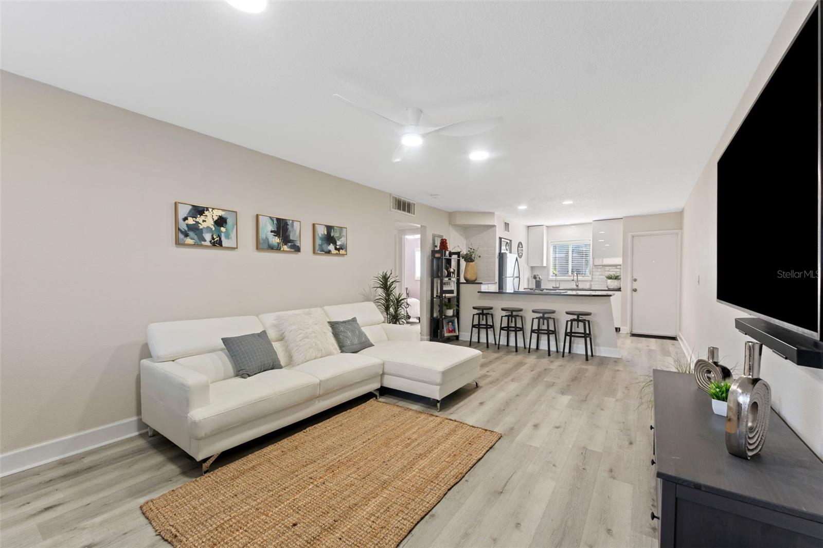 FULLY FURNISHED!!! This 2 bedroom 1 bath in the heart of S Tampa in the vibrant, lively and desirable Palma Ceia Condo community walking distance to S Howard and in TOP RATED SCHOOL ZONES. FIRST FLOOR Pool View condo with beautiful Modern 5 panel frosted doors and tons of natural light. The bathroom is conveniently situated between both oversized bedrooms and features subway tile shower/bath combo with sleek waterfall shower heads and sprayer with hexagon tile in the 3 tower niche and dual LED backlight steam proof mirror. USB and C-Type electrical outlets through out the condo, dimmable LED lights, Ceilings fans in all rooms with remotes and multi function light settings. Both bedrooms fit KING size beds with plenty of extra space for desk, dressers and all your personal needs in the generous sized closets. NO CAREPET! Luxury vinyl plank in all rooms with freshly painted rooms. The bedroom painted purple can be painted to match the rest of the space upon request and prior to move in. Kitchen has sleek cabinet design, black granite counter tops with white subway tile on the backsplash and stainless steel appliances. The centrally located laundry room has 3 washers and 3 dryers to knock out all your laundry at one time and has a WI-FI enabled payment system with AirWallet app and notifications upon cycle completions. The home has two entry doors, the front door has a covered walk way with new brick pavers throughout the community and the back door provides easy access to park right outside your door. Pool is open from morning to dusk daily with lounge chairs and tables to relax or work outside. The community also has 2 grills for outdoor cooking and picnic table for dining. Central mailbox and Amazon deliveries right to your door. Walking distance to 7-11, 2 min walk S Tampa Hospital, walking distance to multiple restaurants, 15 min walk to S Howard, 20 min walk to Bayshore and parade routes. 25 min walk to Hyde Park Village, 9 min drive to UT and 10 min drive to downtown, David Island and Harbor Island. 20 min drive to MacDill AFB. A+ rated school zones. the application is submitted. HOA fee includes Water, Sewer and Exterior maintenance. Call today to make this space yours.