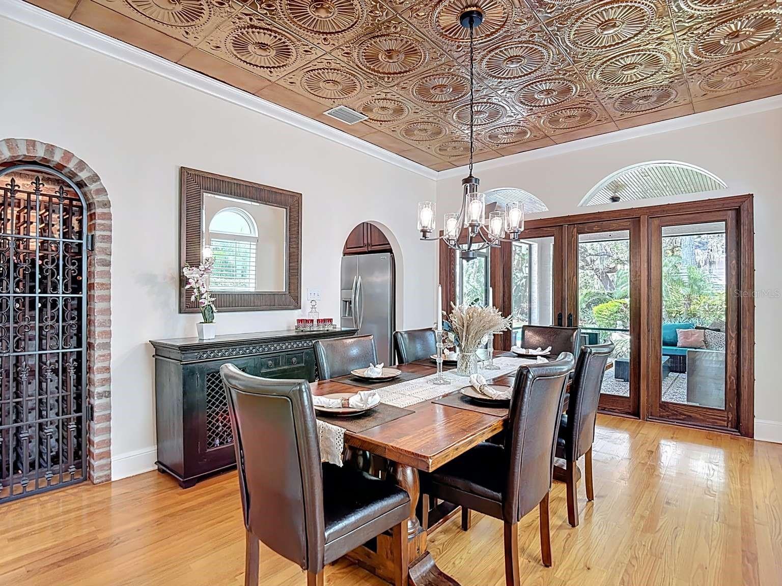 Nestled on one of the most beautiful streets in South Tampa in the highly sought after Beach Park neighborhood, this Mediterranean style architectural gem has 4 bedrooms, 3.5 baths, and a pool. This home sits on an uncharacteristically (for South Tampa) wide street, lined with double sidewalks, and is relatively quiet as it does not feed as a direct through street to the busy Westshore Blvd. The grand 46 inch wide entry door, imported and custom made from Honduran mahogany and decorated with forged iron accents creates a grand entrance that sets the tone for the elegance that awaits. The staircase leading to the second floor immediately catches the eye as it graces the foyer with exquisite imported Mexican Talavera tiles on the stair risers. The living room and dining room are adorned with beautiful tin ceilings, and the dining room also has a custom crafted brick arched and gated wine closet. The first floor is also lined with windows across the rear of the house offering an amazing view of a large deep backyard, concrete paver patio, a deep water pool (resurfaced in 2024), an exquisite lion head fountain, lush tropical landscaping, featuring a majestic grove of oak trees visible from the neighboring property and a rare, showstopping red silk-cotton tree (Bombax ceiba), typically found in botanical gardens, that transforms the space with its stunning pink blossoms during late summer and early fall. The screened lanai was added in 2013, allowing for an additional semi-outdoor area for relaxation, free from bugs, shaded, with a bead board wood ceiling, stunning ceramic tile flooring, with additional backyard views adding a truly distinctive space for relaxation and entertaining. Upstairs, the large master suite has a wonderful view of the backyard, plantation shutters (which also adorn most of the first-floor windows), two walk-in closets, and the bathroom has a whirlpool tub, and a frameless shower door. The master bedroom, as well as the other three bedrooms, all have custom closet systems. The flooring on the second floor boasts imported mahogany wide plank flooring in one of the bedrooms and a custom Brazilian cherry wood inlay embedded in the oak hardwood landing. This house is a unique find for a buyer who appreciates Mexican, Moorish, and Mediterranean architectural details. Situated in a desirable FEMA Zone X area, this home is outside the Special Flood Hazard Area, offering minimal flood risk and no lender-required flood insurance while keeping you close to all that South Tampa has to offer, including South Tampa’s premier school district—Mabry, Coleman, and Plant, and with easy access to Downtown Tampa, St Petersburg, Clearwater and the beaches. Tampa International airport is just minutes away.