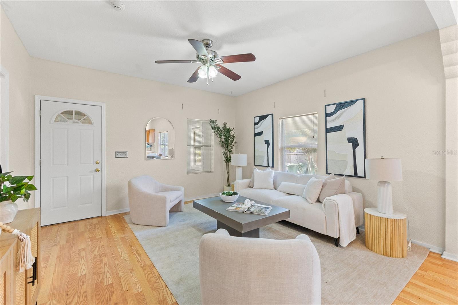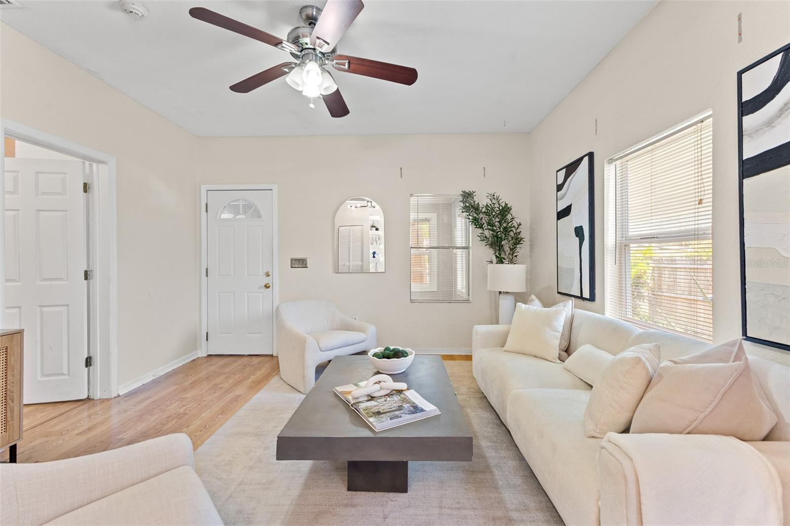 One or more photo(s) has been virtually staged. This beautiful 2-bedroom, 1-bath home is full of charm and character, perfectly located in the heart of Seminole Heights. From the moment you arrive, the inviting curb appeal and classic front porch set the tone for the warmth you’ll find inside. Spend your evenings with a glass of wine in hand and mornings with a cup of Joe- either way this porch will be the best part of your day! Step through the front door into a light-filled living space that flows seamlessly into the dining area and kitchen. The kitchen has been thoughtfully updated with modern appliances, granite countertops, and crisp cabinetry, making it both stylish and functional. Both bedrooms are generously sized with plenty of natural light, while the bathroom has been refreshed with an earthy warm tone and modern finishes. Throughout the home, you’ll find a move-in-ready space that feels like new while still retaining its Seminole Heights charm. Out back, enjoy a spacious fenced yard with endless potential, perfect for entertaining, gardening, or simply relaxing under the shade of mature trees. Located just minutes from Tampa’s best restaurants, breweries, coffee shops, and downtown, this home offers the perfect blend of comfort, convenience, and lifestyle. Love the furniture? You can buy that too!