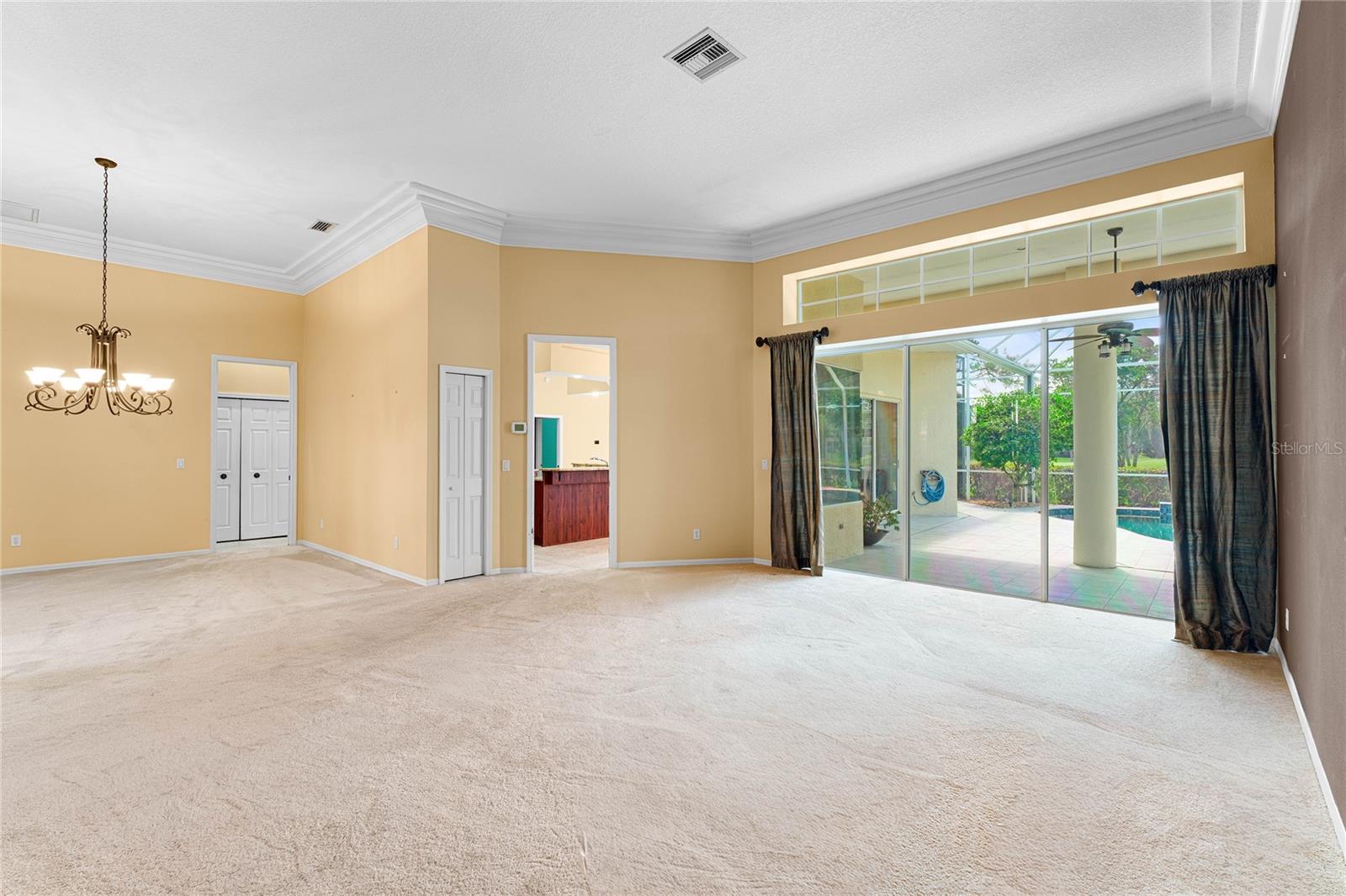 Welcome to this elegant residence in the highly sought-after Osprey Pointe at Hunter’s Green community, where timeless architecture and modern comforts come together. A stately double-door entry opens to soaring ceilings, crown molding, and expansive windows that bathe the home in natural light. Formal living and dining spaces set the stage for entertaining, while the chef’s kitchen, complete with granite counters, custom cabinetry, and a generous center island, flows seamlessly into the family room with tranquil pool views. The owner’s suite is a private retreat with a spa-inspired bath featuring dual vanities, a garden tub, and walk-in shower. Additional bedrooms, a flexible office/den, and well-designed guest accommodations provide comfort and versatility. Step outside to your personal sanctuary: a screened lanai with sparkling pool, lush landscaping, a spacious yard ideal for gatherings or quiet evenings and an incredible view down the fairway! With tree-lined streets, 24-hour security, and access to resort-like community amenities including golf, tennis, parks, and clubhouse, this home offers the best of Florida living in one of Tampa’s premier neighborhoods. Seller is offering a $10,000 closing credit towards paint and/or carpeting.