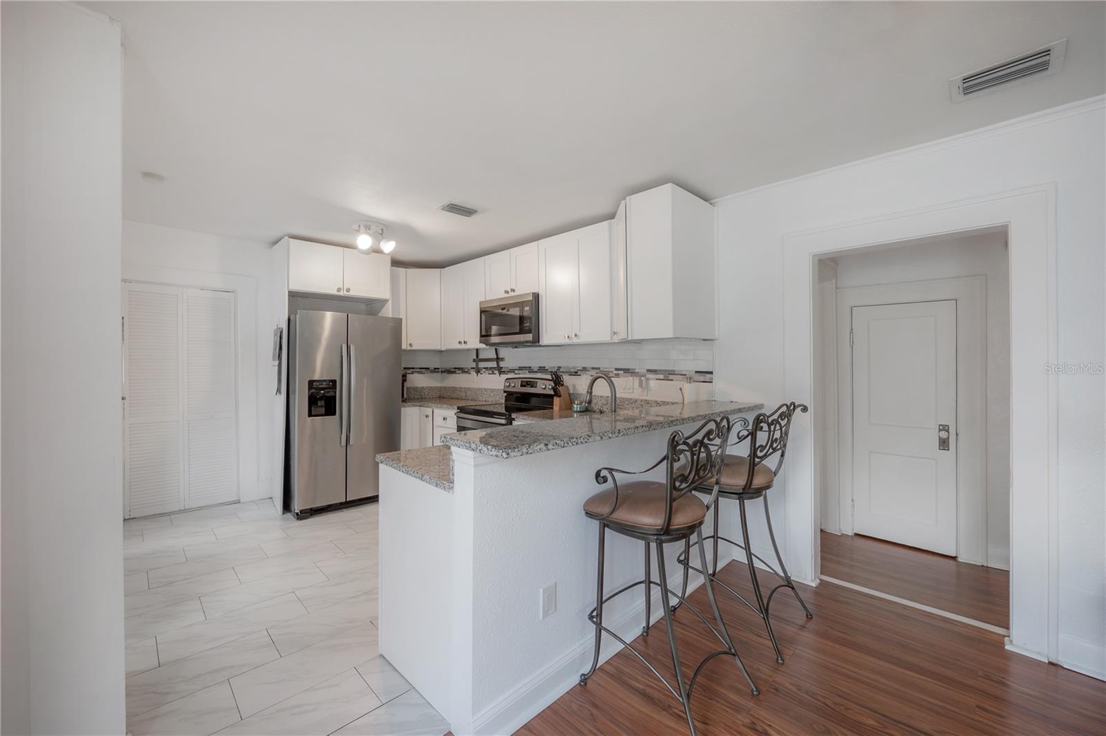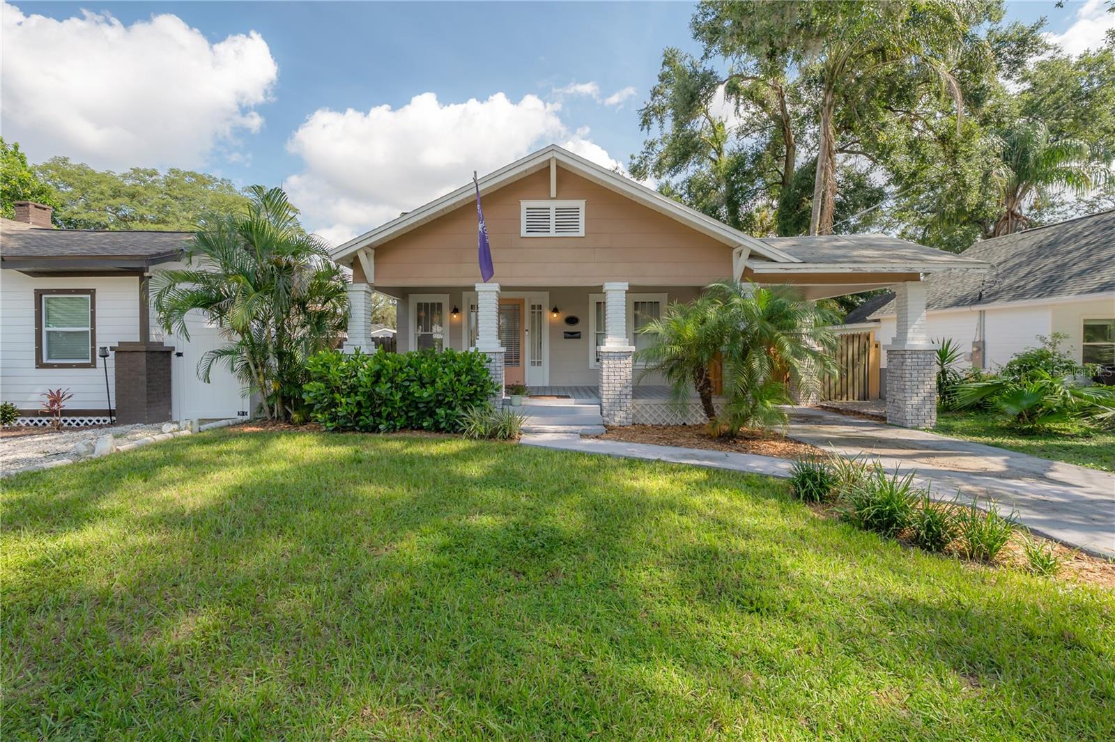 Nestled in the heart of Seminole Heights, on quiet pristine street, this delightful 1920's bungalow exudes historic charm and instant curb appeal. The inviting front porch sets a welcoming tone and leads into a bright, open floor plan accented by abundant natural light this home offers walkability and easy access to Tampa’s best spots—think the Riverwalk, Armature Works, parks, bars, and local eateries. Residents enjoy the mix of historic appeal and vibrant urban lifestyle that defines Old Seminole Heights, centrally located in Tampa this area offers both quite charm and convenience. The home offers 3 bedrooms and 2 full baths, with a split layout that offers privacy—particularly for the primary suite. New foundation and flooring warranty by Solid Foundations gives buyers piece of mind in this charming one of a kind bungalow. Tucked away for tranquility, it includes an updated en-suite bathroom with designer tile and a walk-in shower. Kitchen: Upgraded with granite countertops, wood cabinetry, stainless steel appliances, and an eat-in nook—perfect for casual meals or socializing as meals are prepared. Set on a 5,200 sq ft lot, the home includes a custom back deck, newly installed irrigation system, and landscaping. Fully fenced with an outdoor storage shed. This home is move in ready and priced with equity in mind!