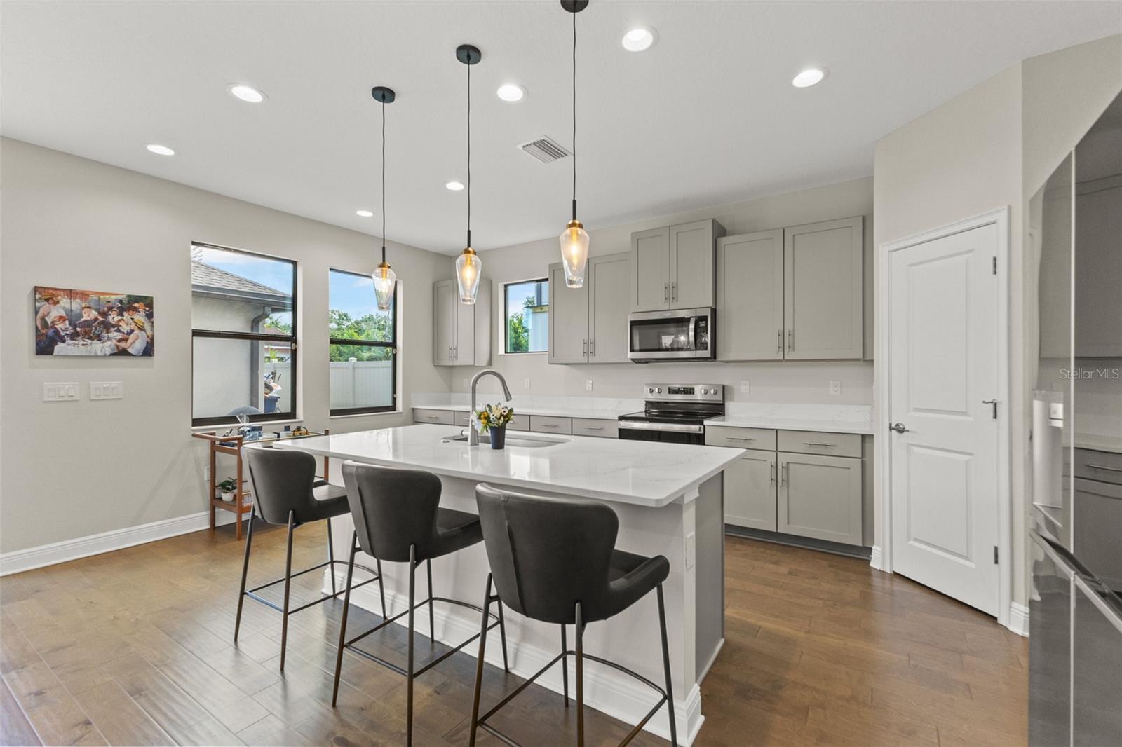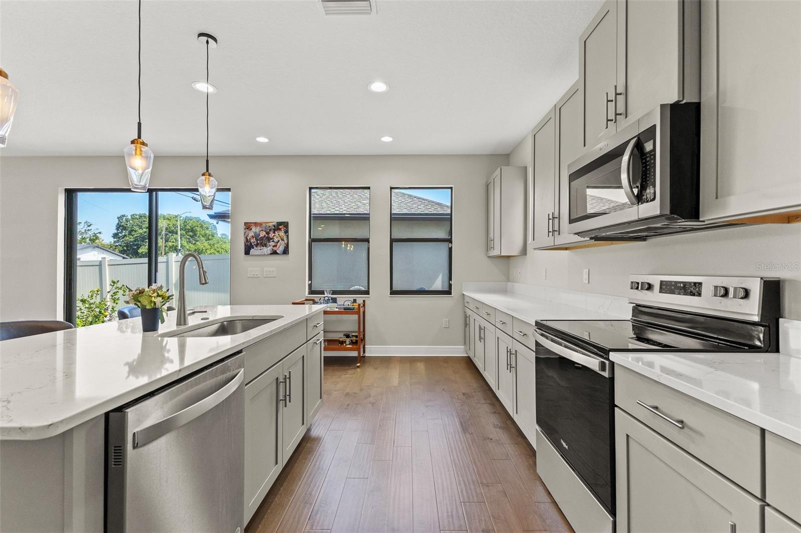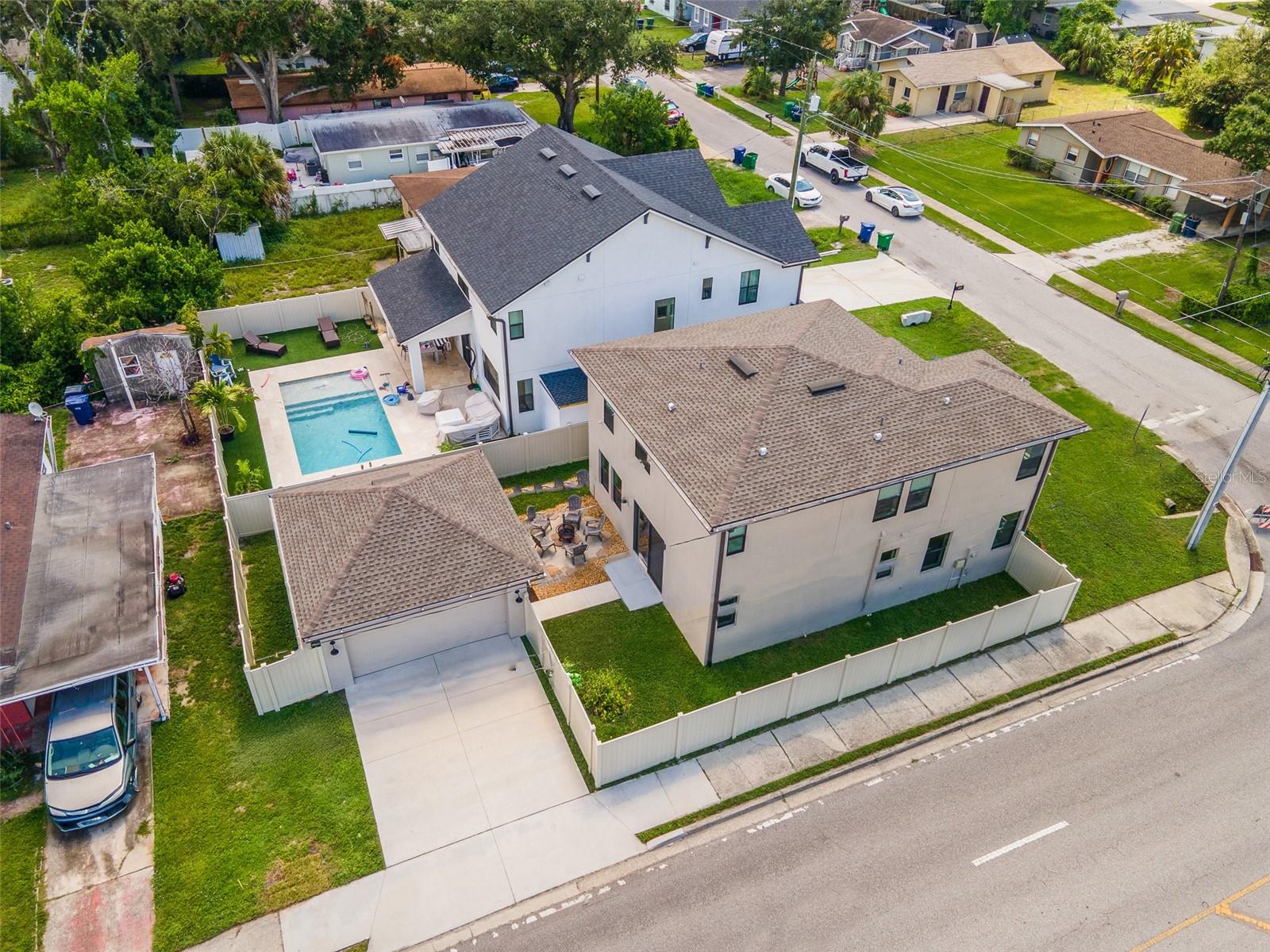 Welcome to your dream home in the heart of Tampa! Built in 2022, this stunning 4-bedroom, 3-bathroom residence combines modern design with everyday comfort. From the moment you arrive, you’ll notice the attention to detail—from the clean architectural lines to the thoughtfully landscaped exterior. Inside, you’re greeted with an open-concept floor plan featuring high ceilings, abundant natural light, and stylish finishes throughout. The gourmet kitchen boasts sleek cabinetry, quartz countertops, stainless steel appliances, and a spacious island perfect for gatherings. The living and dining areas flow seamlessly, creating the ideal space for both entertaining and relaxing. The home offers a full bedroom and bath on the main level, perfect for guests or a private office. Upstairs, you’ll find a spacious primary suite with a spa-like bathroom, walk-in closet, and dual vanities. Two additional bedrooms and a full bath provide plenty of room for family or visitors. Step outside to enjoy your private fenced-in backyard, perfect for outdoor dining, play, or simply unwinding in your own retreat. A detached two-car garage provides secure parking and extra storage. Located just minutes from International Plaza, Tampa International Airport, Midtown, and Downtown Tampa, this home places you at the center of it all—close to premier dining, shopping, and entertainment. Don’t miss this opportunity to own a like-new home in one of Tampa’s most desirable locations!