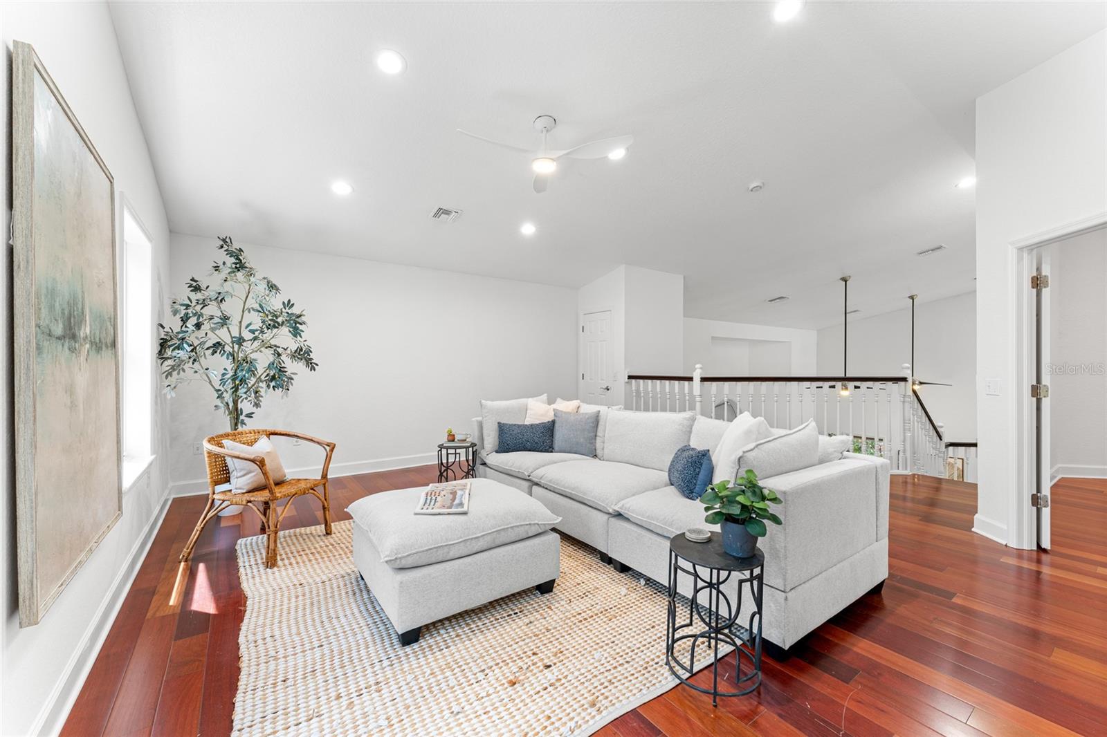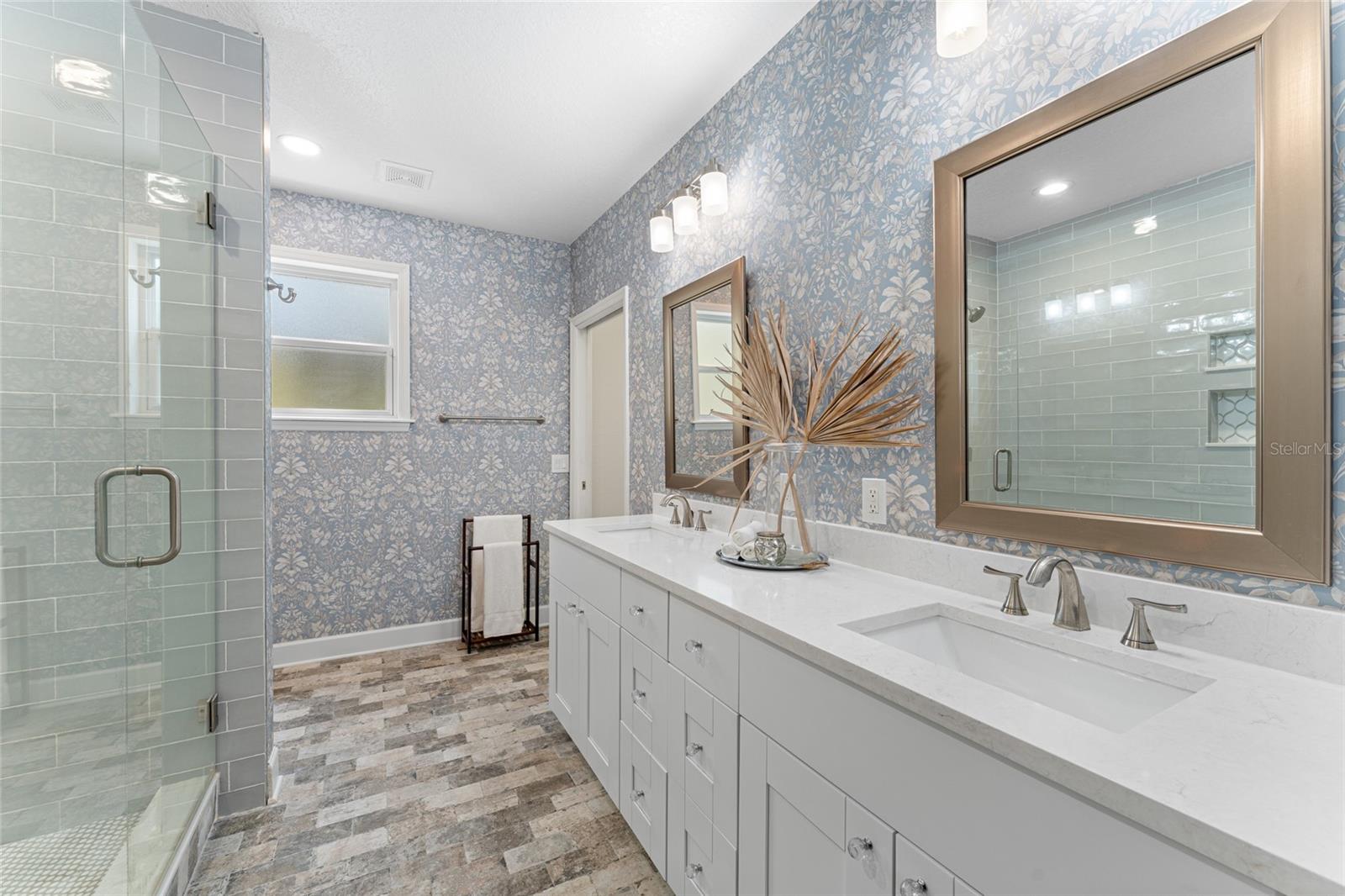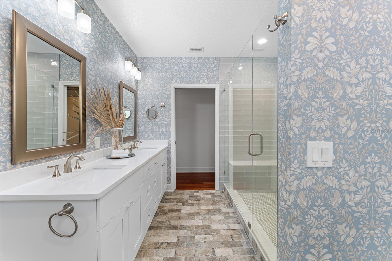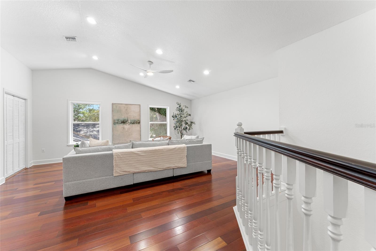Nestled in the heart of highly sought-after Bayshore Beautiful neighborhood, this expansive South Tampa residence spans over 3,200 sq ft on a generous 70x120 lot, offering both privacy and presence in a premier location. Open the elegant double glass doors to be greeted by soaring cathedral ceilings, rich hardwood flooring and an abundance of natural light. The open layout offers multiple living and dining areas, perfect for both entertaining and everyday comfort. Thoughtfully updated throughout, this residence blends timeless charm and fresh designer finishes. The updated kitchen is open to all of the living spaces, has quartz countertops and backsplash, real wood cabinetry, ss appliances and bronze hardware. All bedrooms are located on the first floor with split floor plan. Primary bedroom has french doors giving you access to screened in back porch, double walk in closets, ensuite bathroom with private water closet, linen closet, massive shower and double vanity. Secondary bedroom has updated ensuite bathroom and ample closet space. Bedroom 3 & 4 are spacious and in close proximity to the updated 3rd bathroom. Upstairs offers an additional loft with private insulated room that can be used as home theatre, 2nd home office, workout room, playroom, library, (easy convert to 5th bedroom), etc. Your imagination is the limit! Outside, enjoy a vaulted screened in porch, over looking plenty of backyard space with room for a pool. The exterior construction of the home is cement based Hardie board siding to resist moisture and pests. Originally built in 1943, home was completely rebuilt in 2001, and beautifully updated 2020-2025. This special home is only a few blocks from Bayshore Boulevard, offering easy access to scenic waterfront paths, parks, award winning restaurants and boutique shopping. Call to schedule your private tour of this truly special property.