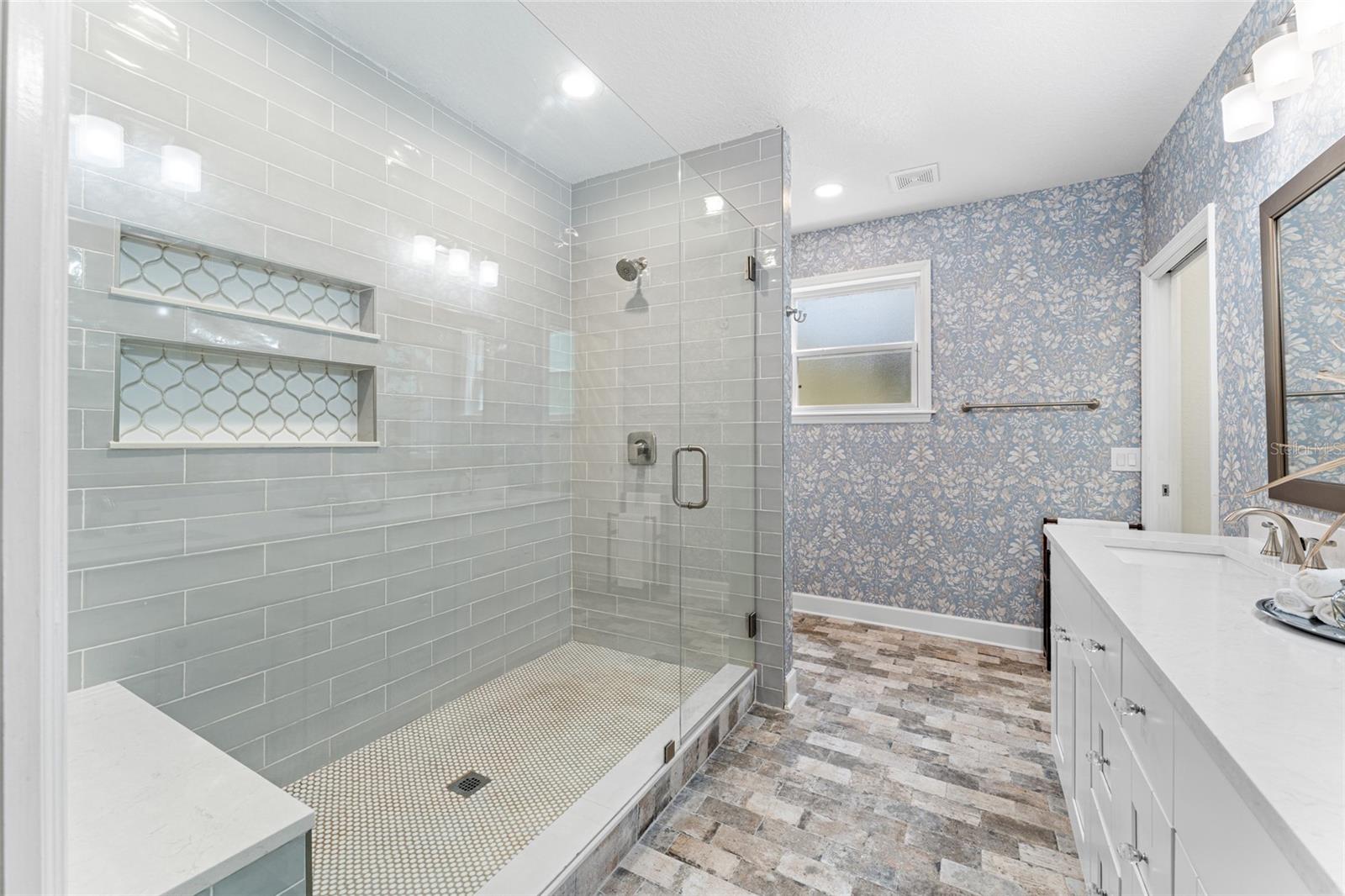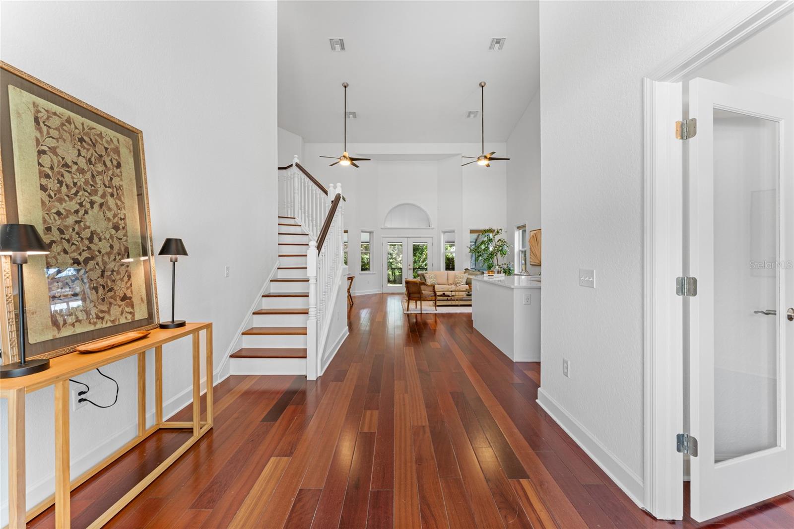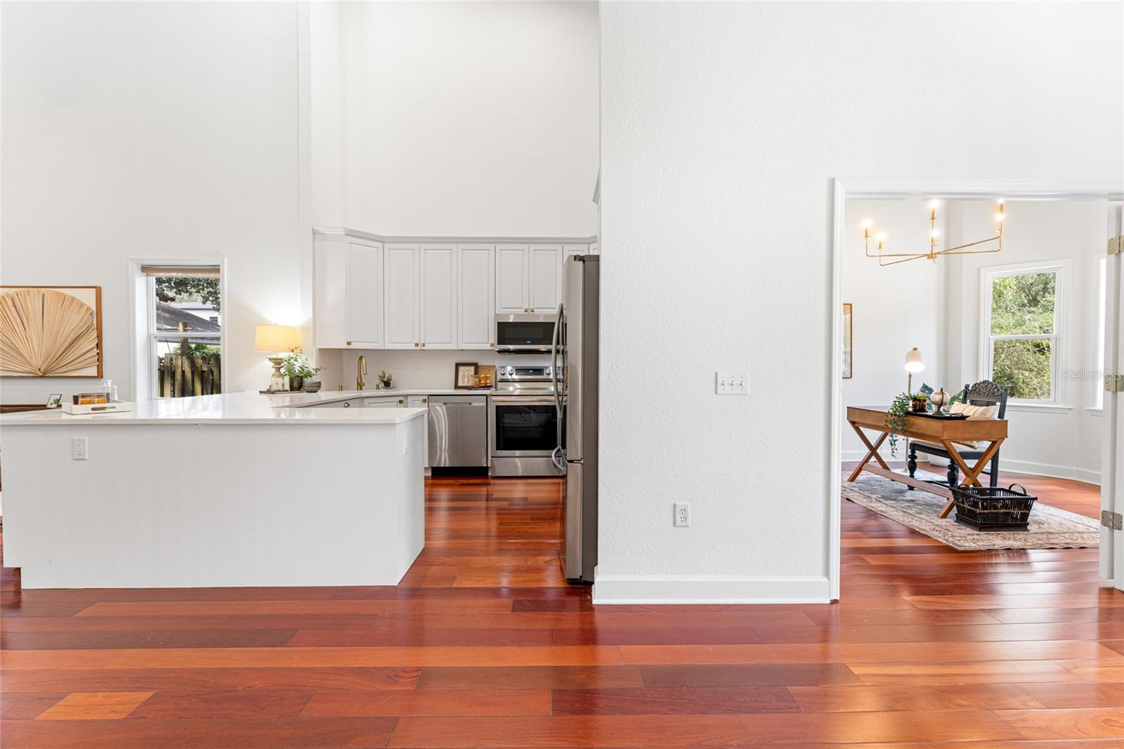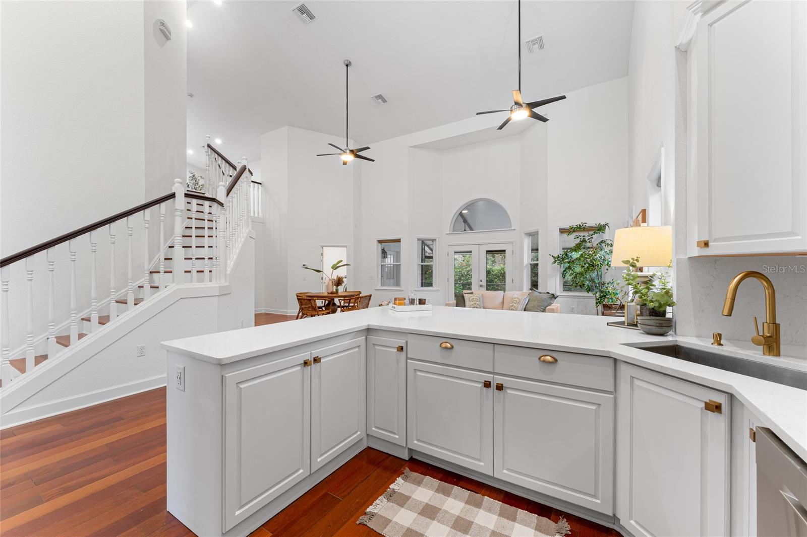Nestled in the heart of highly sought-after Bayshore Beautiful neighborhood, this expansive South Tampa residence spans over 3,200 sq ft on a generous 70x120 lot, offering both privacy and presence in a premier location. Open the elegant double glass doors to be greeted by soaring cathedral ceilings, rich hardwood flooring and an abundance of natural light. The open layout offers multiple living and dining areas, perfect for both entertaining and everyday comfort. Thoughtfully updated throughout, this residence blends timeless charm and fresh designer finishes. The updated kitchen is open to all of the living spaces, has quartz countertops and backsplash, real wood cabinetry, ss appliances and bronze hardware. All bedrooms are located on the first floor with split floor plan. Primary bedroom has french doors giving you access to screened in back porch, double walk in closets, ensuite bathroom with private water closet, linen closet, massive shower and double vanity. Secondary bedroom has updated ensuite bathroom and ample closet space. Bedroom 3 & 4 are spacious and in close proximity to the updated 3rd bathroom. Upstairs offers an additional loft with private insulated room that can be used as home theatre, 2nd home office, workout room, playroom, library, (easy convert to 5th bedroom), etc. Your imagination is the limit! Outside, enjoy a vaulted screened in porch, over looking plenty of backyard space with room for a pool. The exterior construction of the home is cement based Hardie board siding to resist moisture and pests. Originally built in 1943, home was completely rebuilt in 2001, and beautifully updated 2020-2025. This special home is only a few blocks from Bayshore Boulevard, offering easy access to scenic waterfront paths, parks, award winning restaurants and boutique shopping. Call to schedule your private tour of this truly special property.