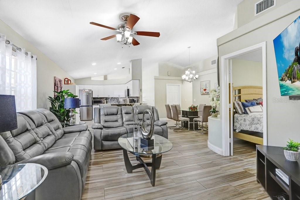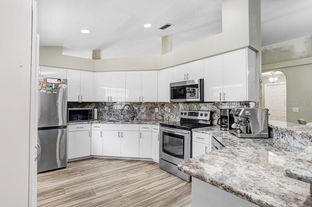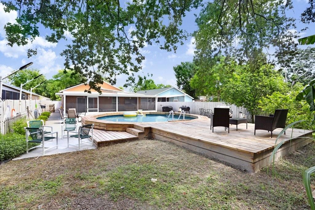 Welcome to this beautifully updated 4-bedroom, 3-bathroom IN-GROUND POOL home with a PRIVATE IN-LAW SUITE and an additional office/den in a desirable NO HOA community! Offering modern finishes, flexible living spaces, and a backyard oasis, this property is move-in ready and full of upgrades. Inside, you’ll find wood-look tile flooring throughout, an updated kitchen with granite countertops, and renovated bathrooms. The layout includes a bonus office/den plus a loft-style family room, providing multiple living and work-from-home options. The in-law suite features a full kitchen, private bedroom, and ensuite bath, perfect for multi-generational living, guests, or potential rental income. Recent upgrades include a NEW ROOF (2024), solar panels (2024) for energy efficiency, and a newer HVAC system (2019). Outside, the property shines with a fully fenced yard and gated entry, a vastly large oversized fully paved driveway with ample parking, and a pool with a wood deck surrounded by fruit trees and green space, perfect for entertaining or relaxing. Just 10 minutes to Tampa International Airport, 5 minutes to the Courtney Campbell Causeway for quick beach access, and 15 minutes to Downtown Tampa. Everyday conveniences like Costco, Aldi, Sprouts, and Wild Fork are only minutes away.