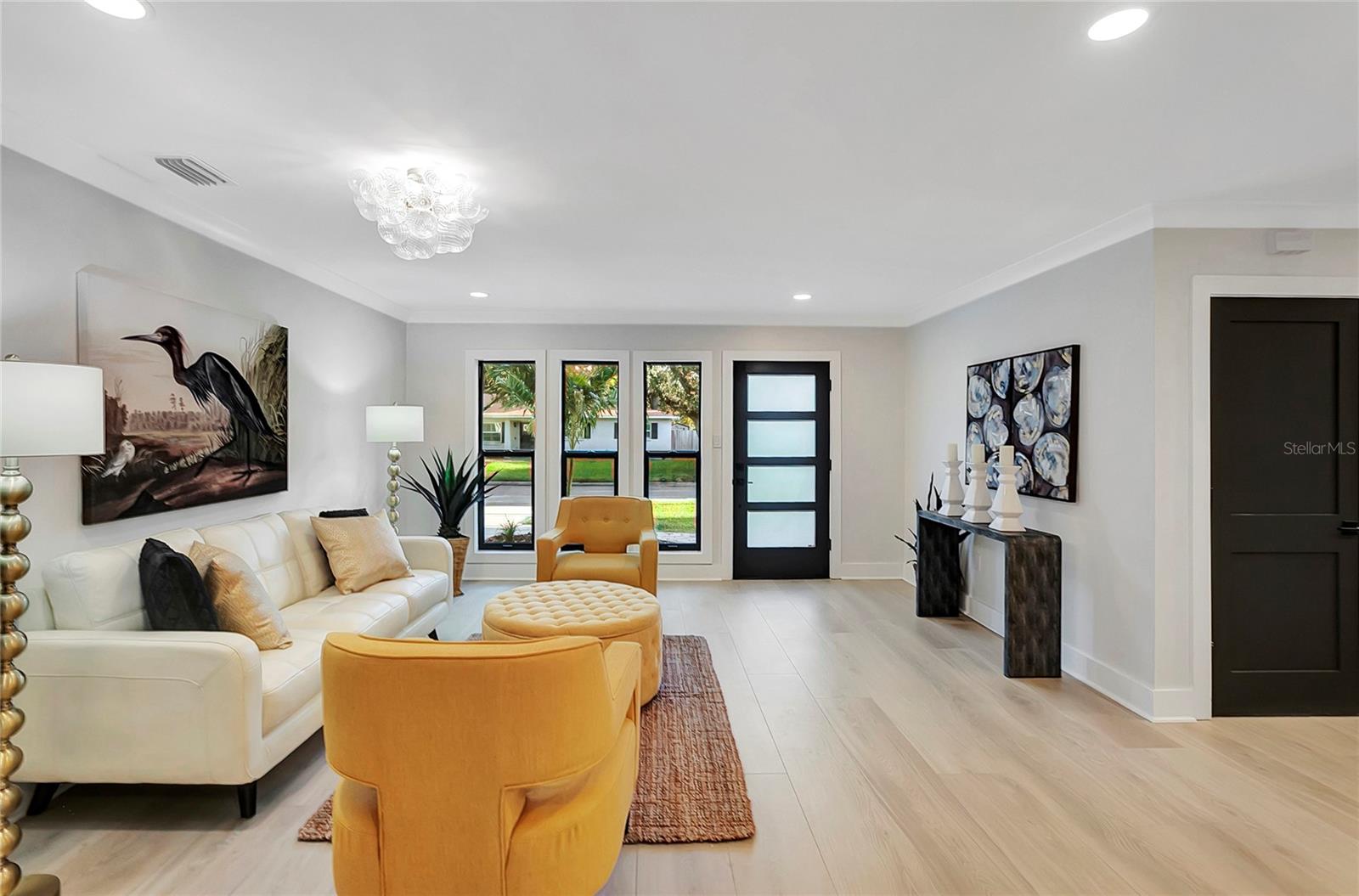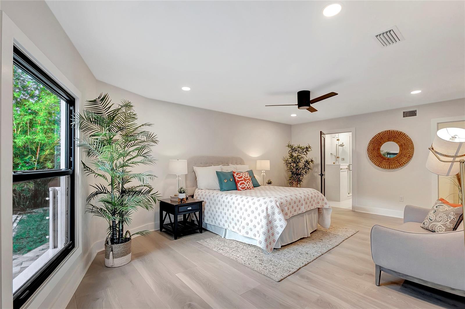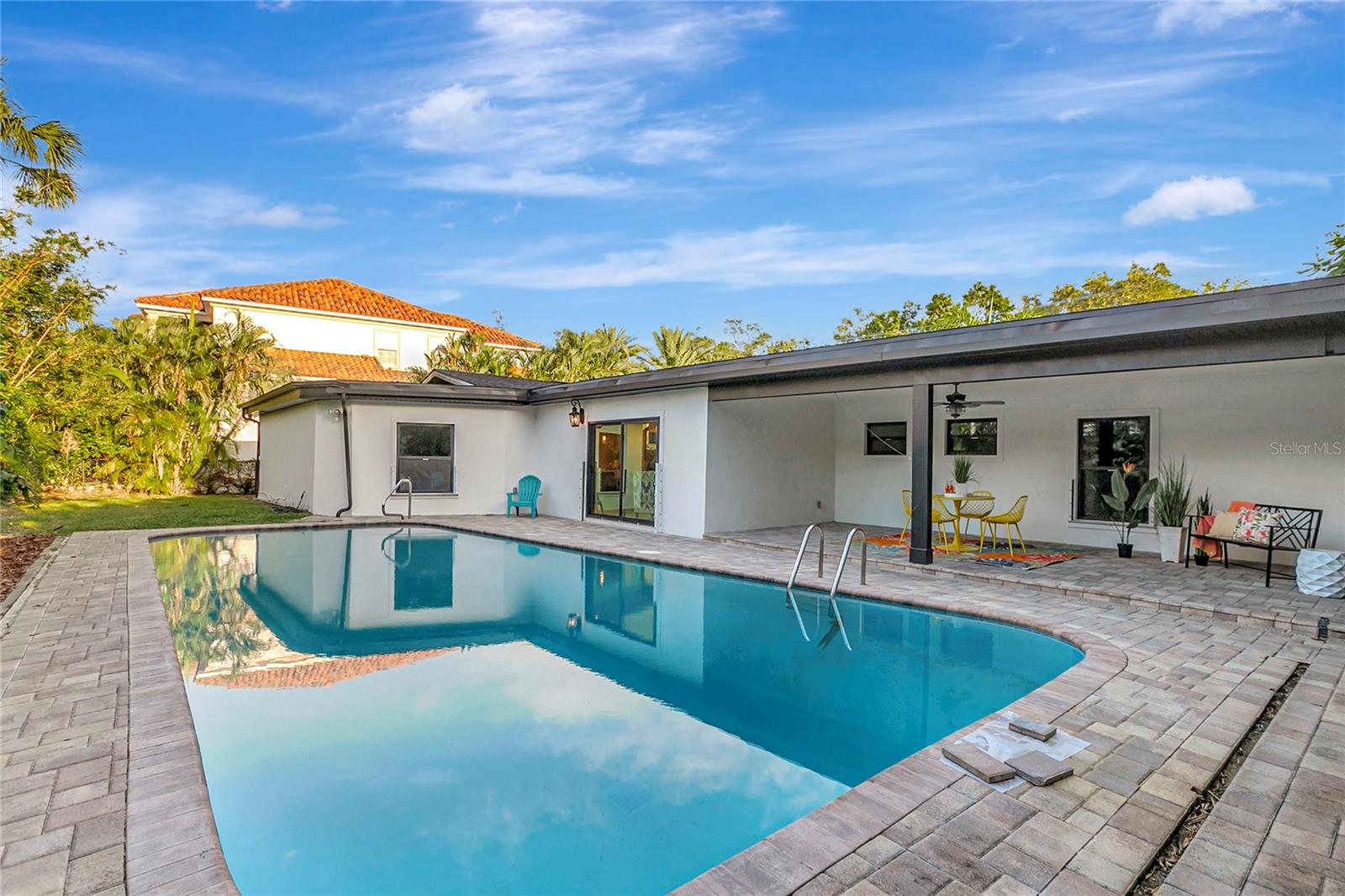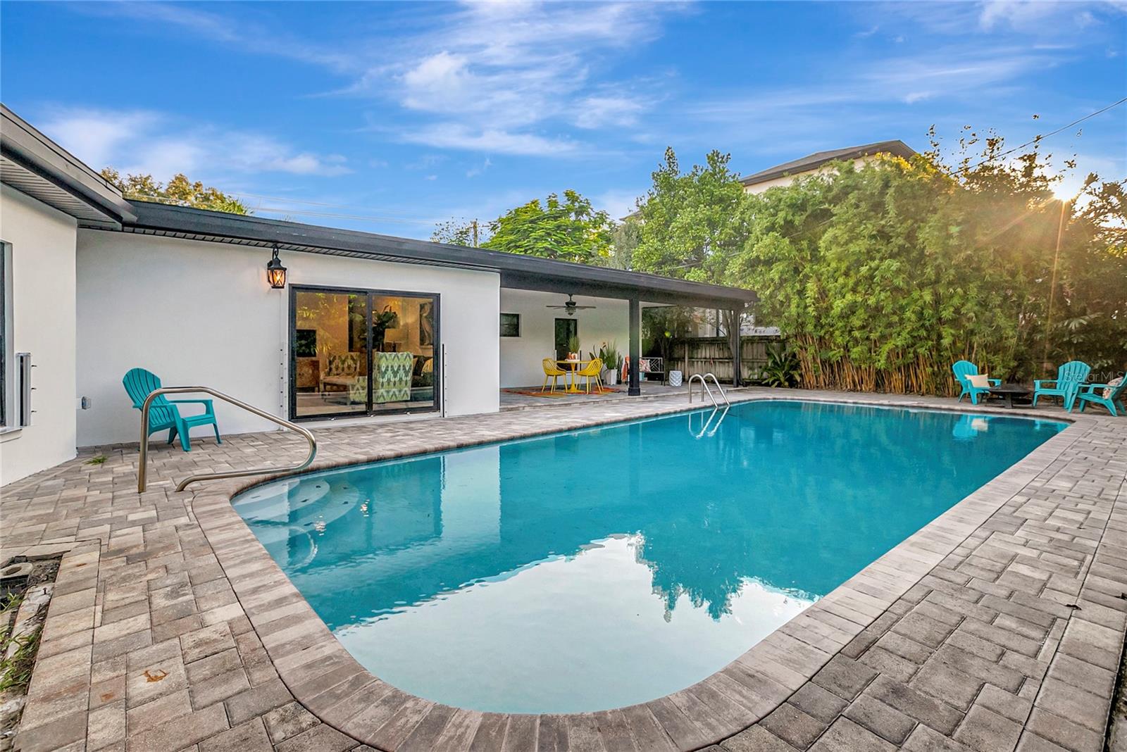 Welcome home to this exceptional 4-bedroom, 3-bath pool home in the heart of Sunset Park, where timeless mid-century charm meets modern luxury. This beautifully renovated ranch features a split floor plan, an expansive pool perfect for entertaining, and a chef’s dream kitchen with Thermador Pro appliances—including a 48” fridge, 36” gas range with griddle, double convection ovens, quartz countertops, and a beverage center. The home boasts all-new 1'x6' plank tile flooring, wood kitchen cabinets, floating vanities, impact-rated PGT windows and slider, a new dimensional shingle roof, updated lighting, fans, interior doors, and a brand-new HVAC system. Flood-smart upgrades include Hydra Pro exterior flood panels, water-resistant drywall, mold-resistant paint, antimicrobial floors, PVC baseboards, and raised mechanicals for extra peace of mind. Located near A-rated schools, Westshore Marina District, and Tampa International Airport, this is more than a home—it’s a lifestyle.