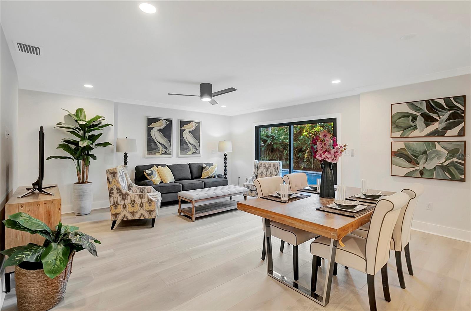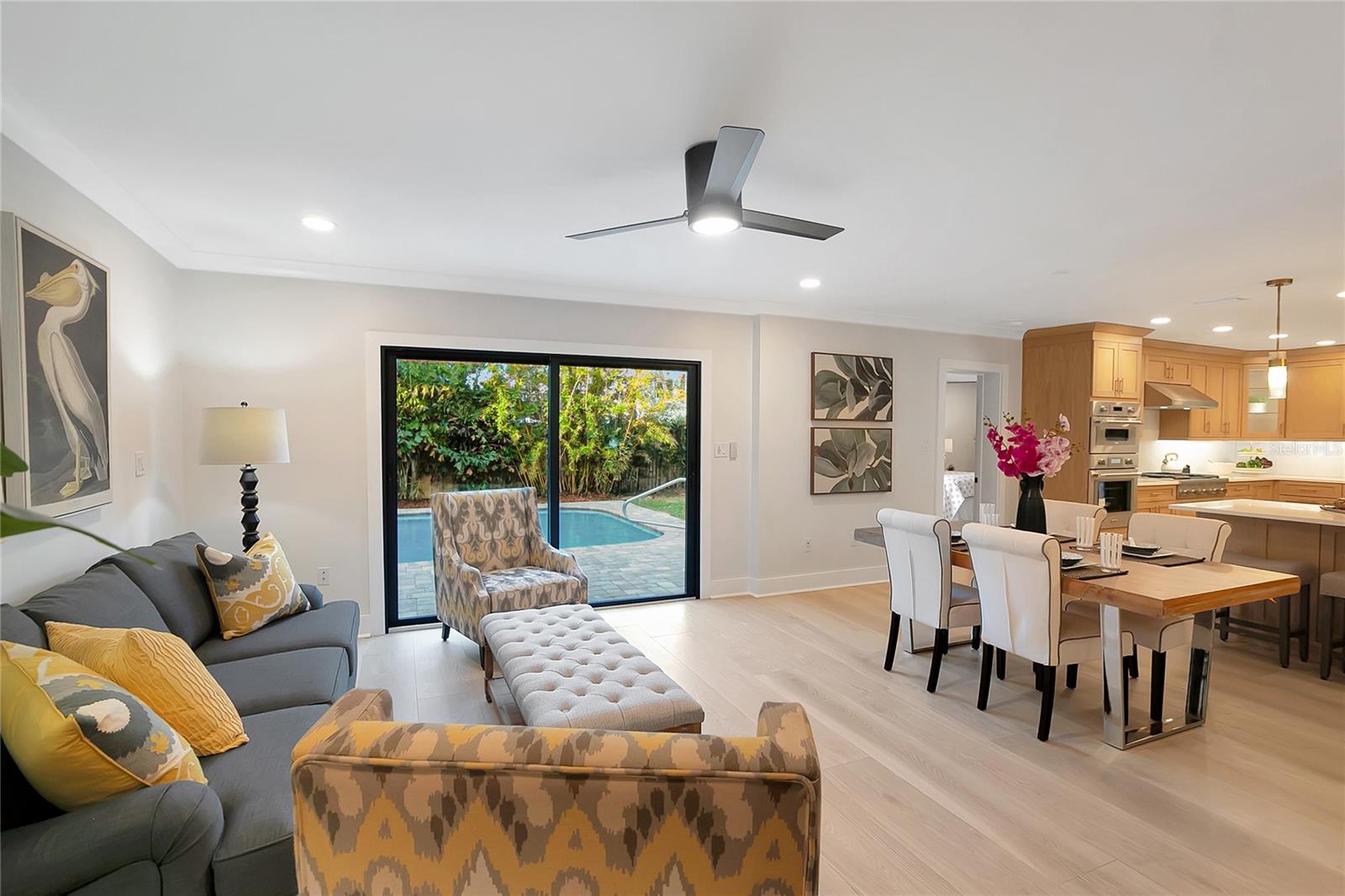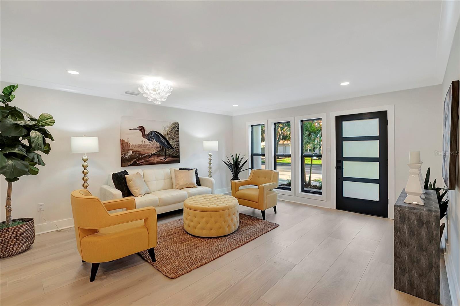 Welcome home to this exceptional 4-bedroom, 3-bath pool home in the heart of Sunset Park, where timeless mid-century charm meets modern luxury. This beautifully renovated ranch features a split floor plan, an expansive pool perfect for entertaining, and a chef’s dream kitchen with Thermador Pro appliances—including a 48” fridge, 36” gas range with griddle, double convection ovens, quartz countertops, and a beverage center. The home boasts all-new 1'x6' plank tile flooring, wood kitchen cabinets, floating vanities, impact-rated PGT windows and slider, a new dimensional shingle roof, updated lighting, fans, interior doors, and a brand-new HVAC system. Flood-smart upgrades include Hydra Pro exterior flood panels, water-resistant drywall, mold-resistant paint, antimicrobial floors, PVC baseboards, and raised mechanicals for extra peace of mind. Located near A-rated schools, Westshore Marina District, and Tampa International Airport, this is more than a home—it’s a lifestyle.