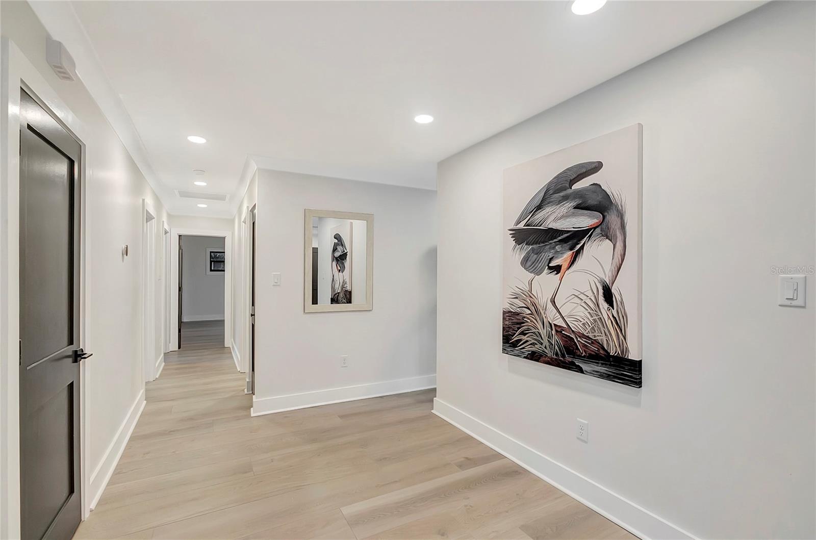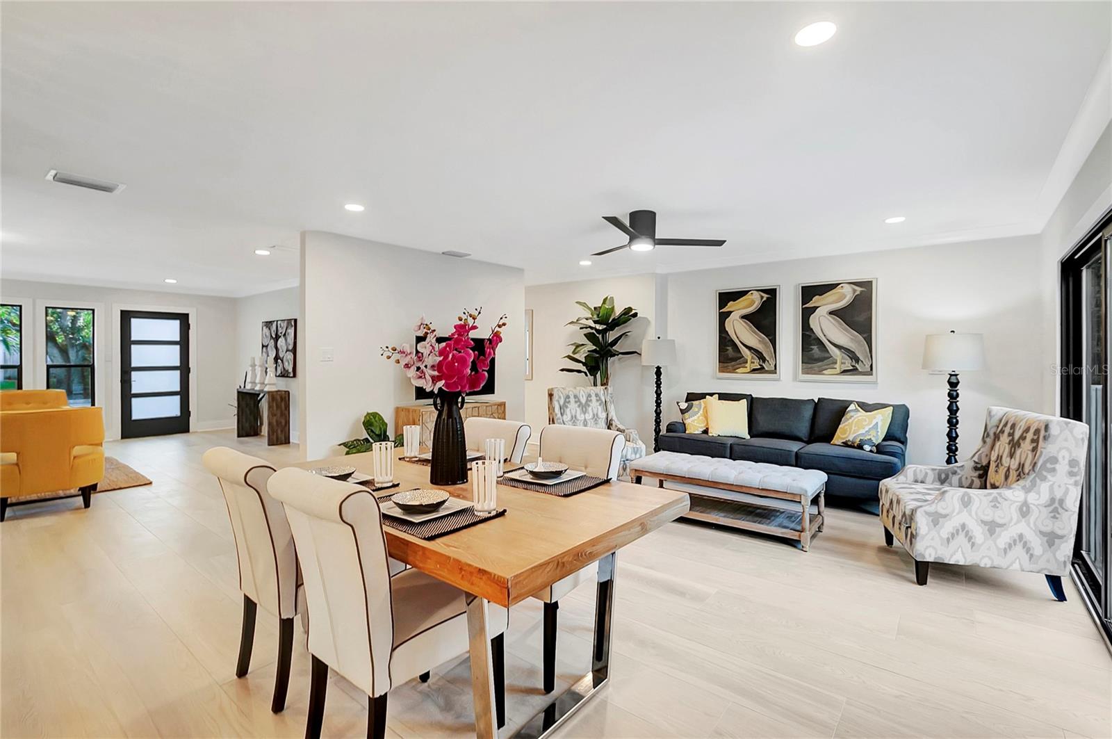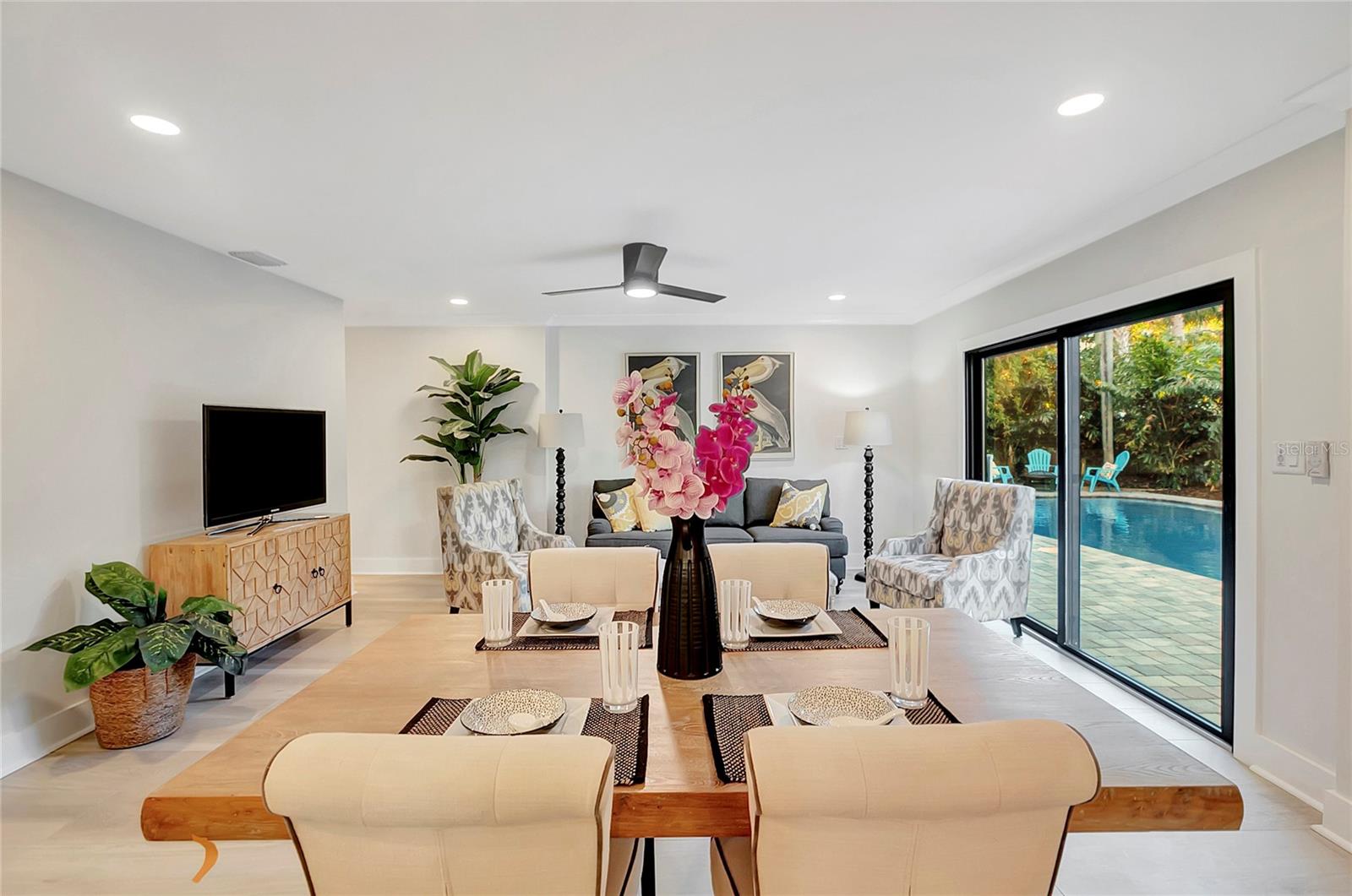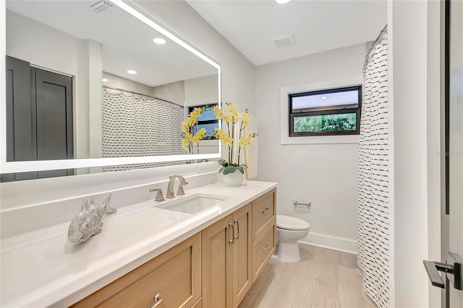 Welcome home to this exceptional 4-bedroom, 3-bath pool home in the heart of Sunset Park, where timeless mid-century charm meets modern luxury. This beautifully renovated ranch features a split floor plan, an expansive pool perfect for entertaining, and a chef’s dream kitchen with Thermador Pro appliances—including a 48” fridge, 36” gas range with griddle, double convection ovens, quartz countertops, and a beverage center. The home boasts all-new 1'x6' plank tile flooring, wood kitchen cabinets, floating vanities, impact-rated PGT windows and slider, a new dimensional shingle roof, updated lighting, fans, interior doors, and a brand-new HVAC system. Flood-smart upgrades include Hydra Pro exterior flood panels, water-resistant drywall, mold-resistant paint, antimicrobial floors, PVC baseboards, and raised mechanicals for extra peace of mind. Located near A-rated schools, Westshore Marina District, and Tampa International Airport, this is more than a home—it’s a lifestyle.