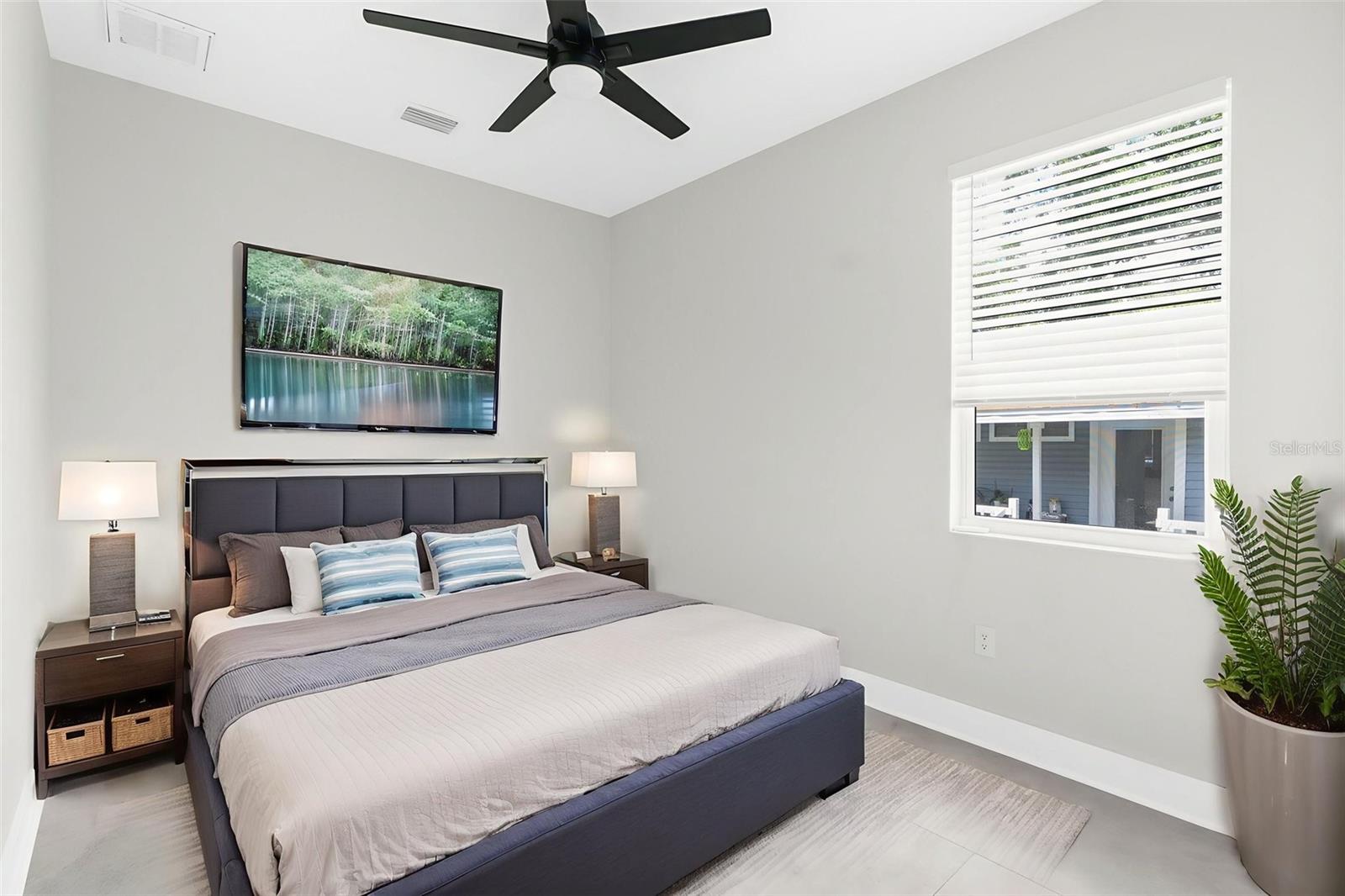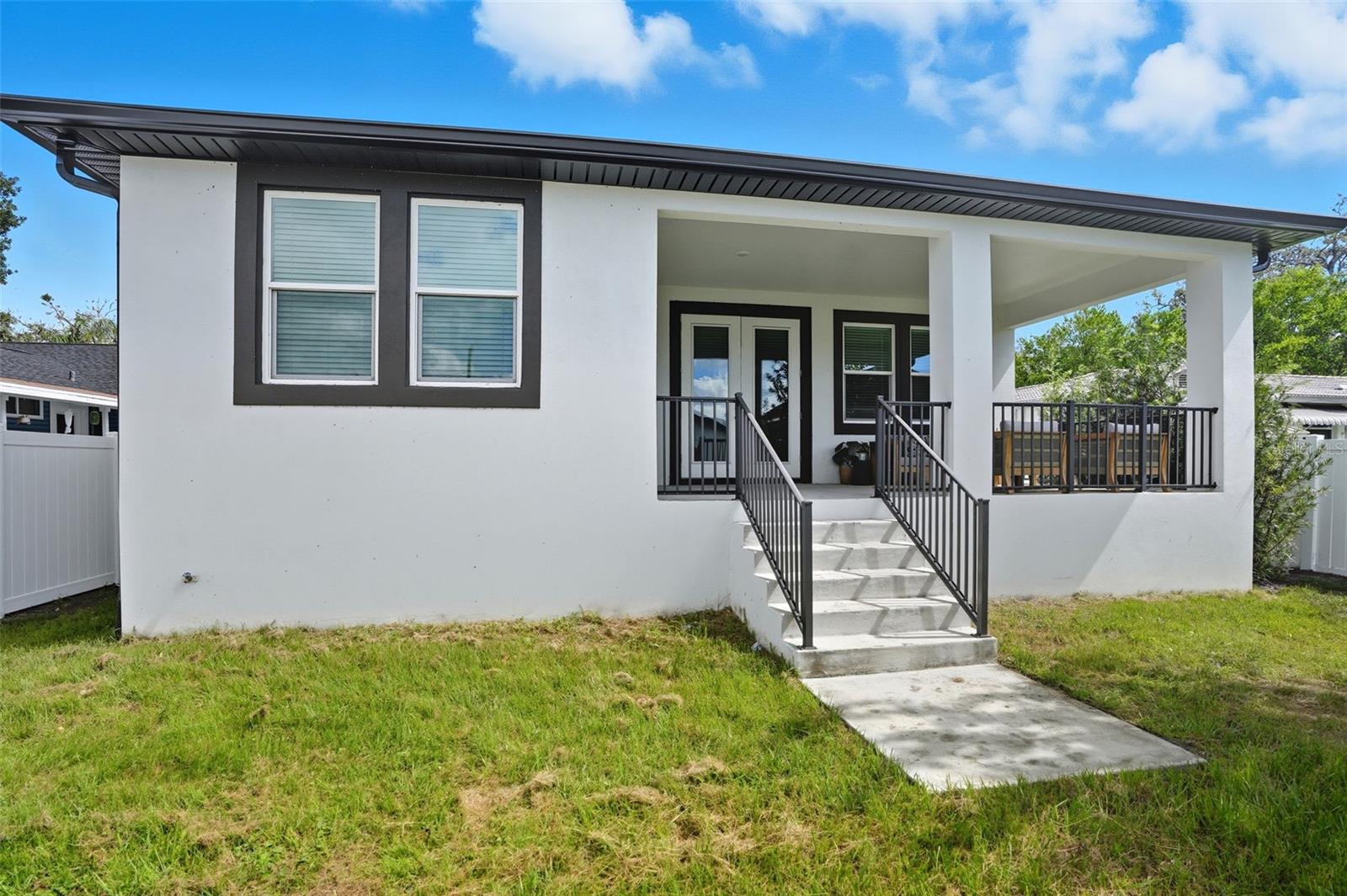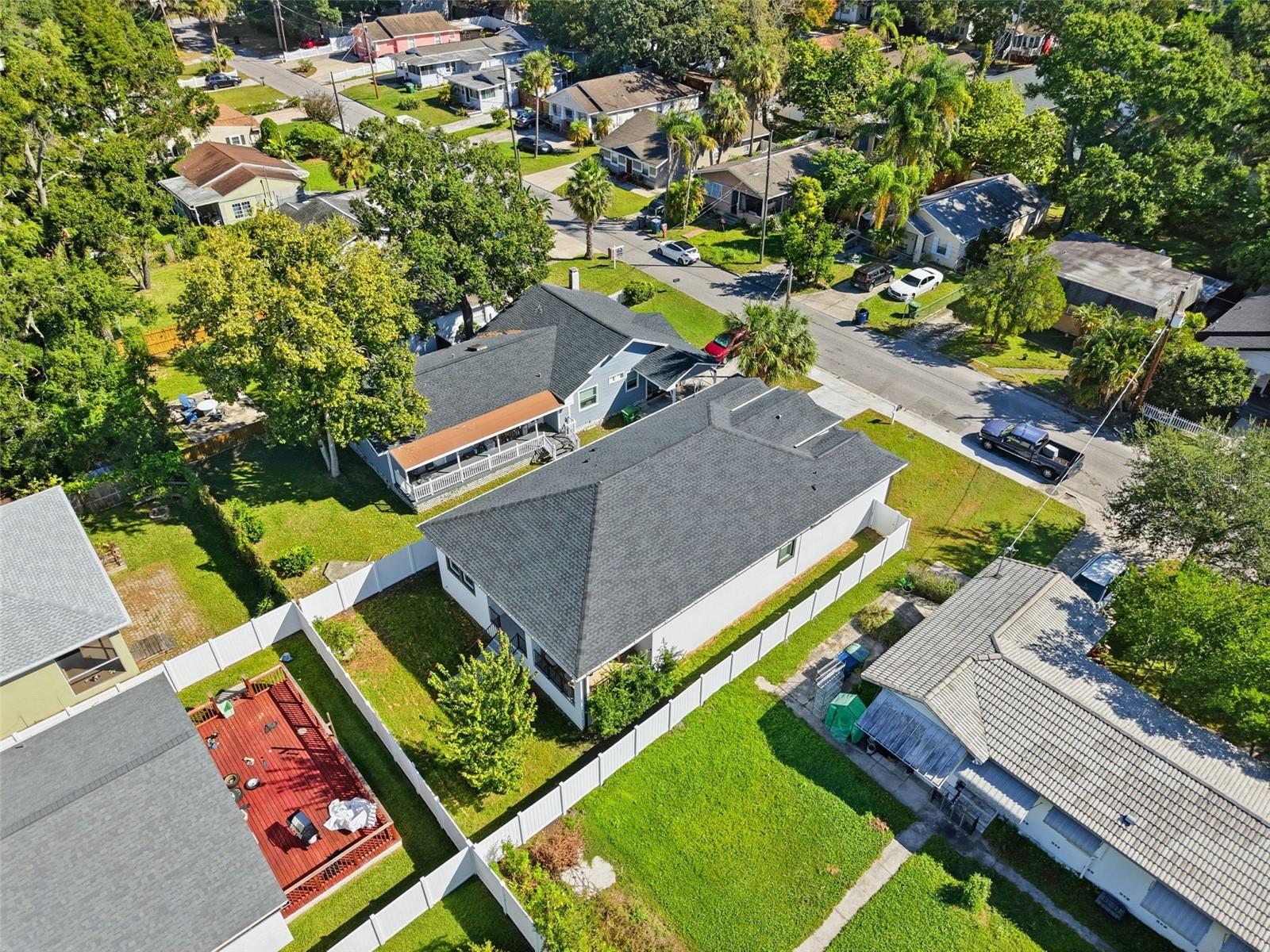 6904 N Lynn Ave offers nearly new construction in the heart of Seminole Heights, built in 2023 and designed with just under 1,800 square feet of comfortable, modern living. FULLY FENCED LOT WITH GREAT PRIVACY, INCLUDING OVERSIZED BACKYARD PATIO SURROUNDED BY MATURE LANDSCAPING. The interior is finished with large-format concrete-look tile throughout—no carpet anywhere—and elevated ceilings that give the space an open, airy feel. At the center of the home, the kitchen ties everything together with shaker cabinetry, stone counters, stainless appliances, and a functional island perfect for food prep or serving guests. The kitchen overlooks the dining and living areas with a tray ceiling detail, and together they open directly to the oversized covered lanai, creating an easy indoor-outdoor flow. The lanai is large enough for both a dining table and a lounge setup, ideal for year-round entertaining. The primary suite features another tray ceiling, a generous walk-in closet, and a well-appointed en-suite bathroom with double vanities and a frameless glass walk-in shower finished in vibrant blue subway tile laid in a staggered pattern. Three additional bedrooms are light-filled and flexible, supported by a second full bath. A laundry room, one-car garage, and a long driveway that provides extra parking round out the home’s practical touches. Living here means you’re within easy reach of Seminole Heights favorites—morning coffee at LPCX Café, barbecue at Wicked Oak, or a dinner out at Rooster & The Till. For a more casual night, Front Porch & Bart’s Tavern is just around the corner. The Seminole Heights Garden Center offers a quiet green escape, and Downtown Tampa is only minutes away with the Riverwalk, museums, and dining along the water.