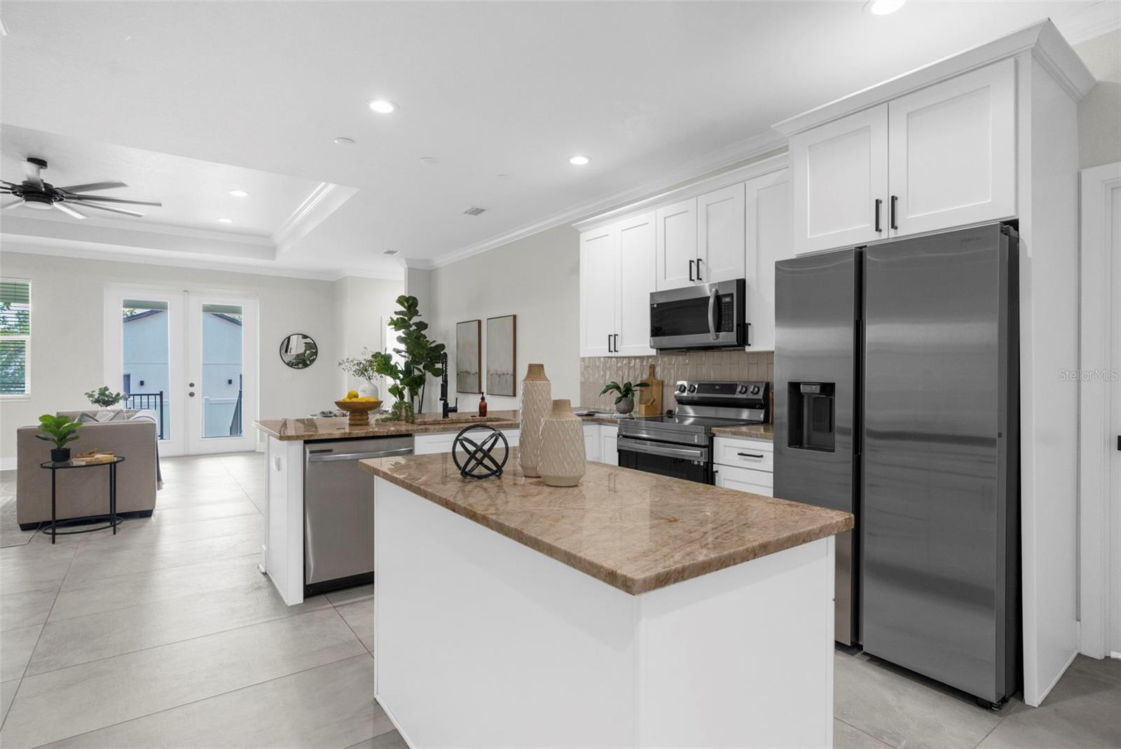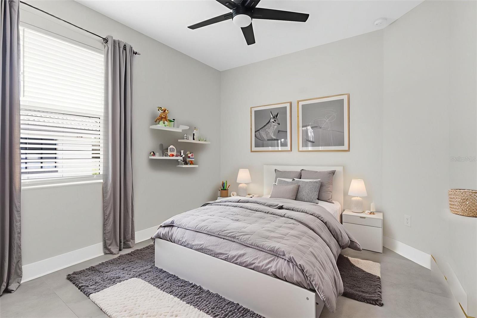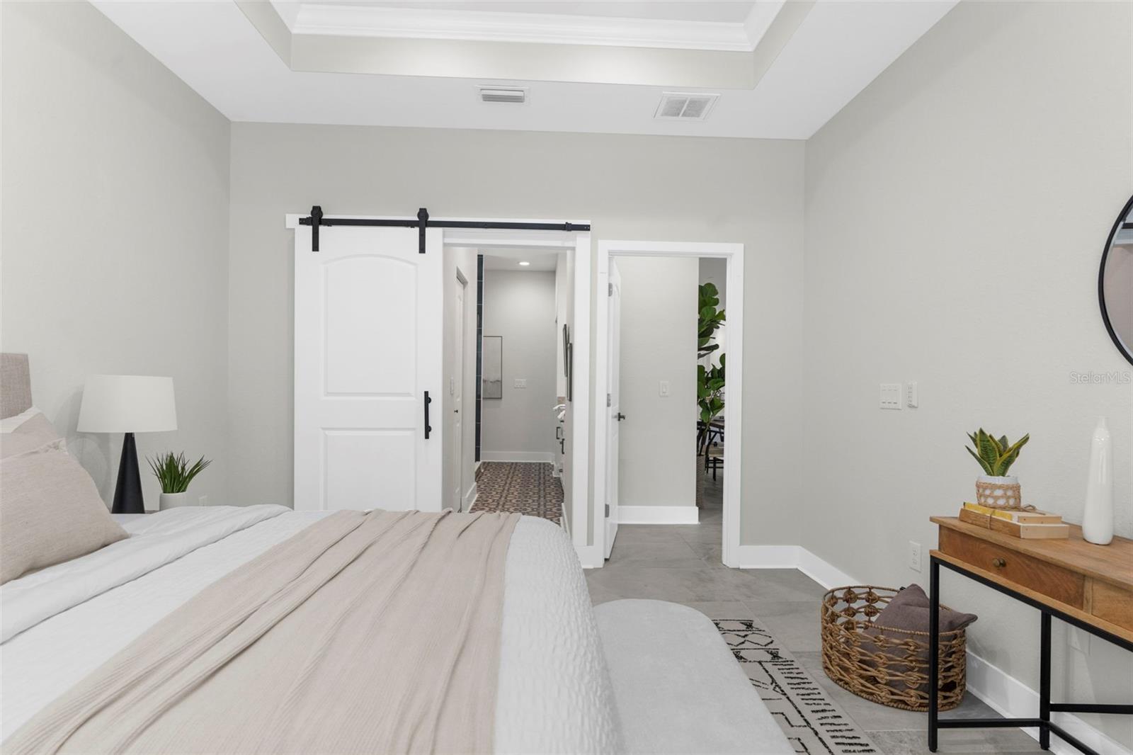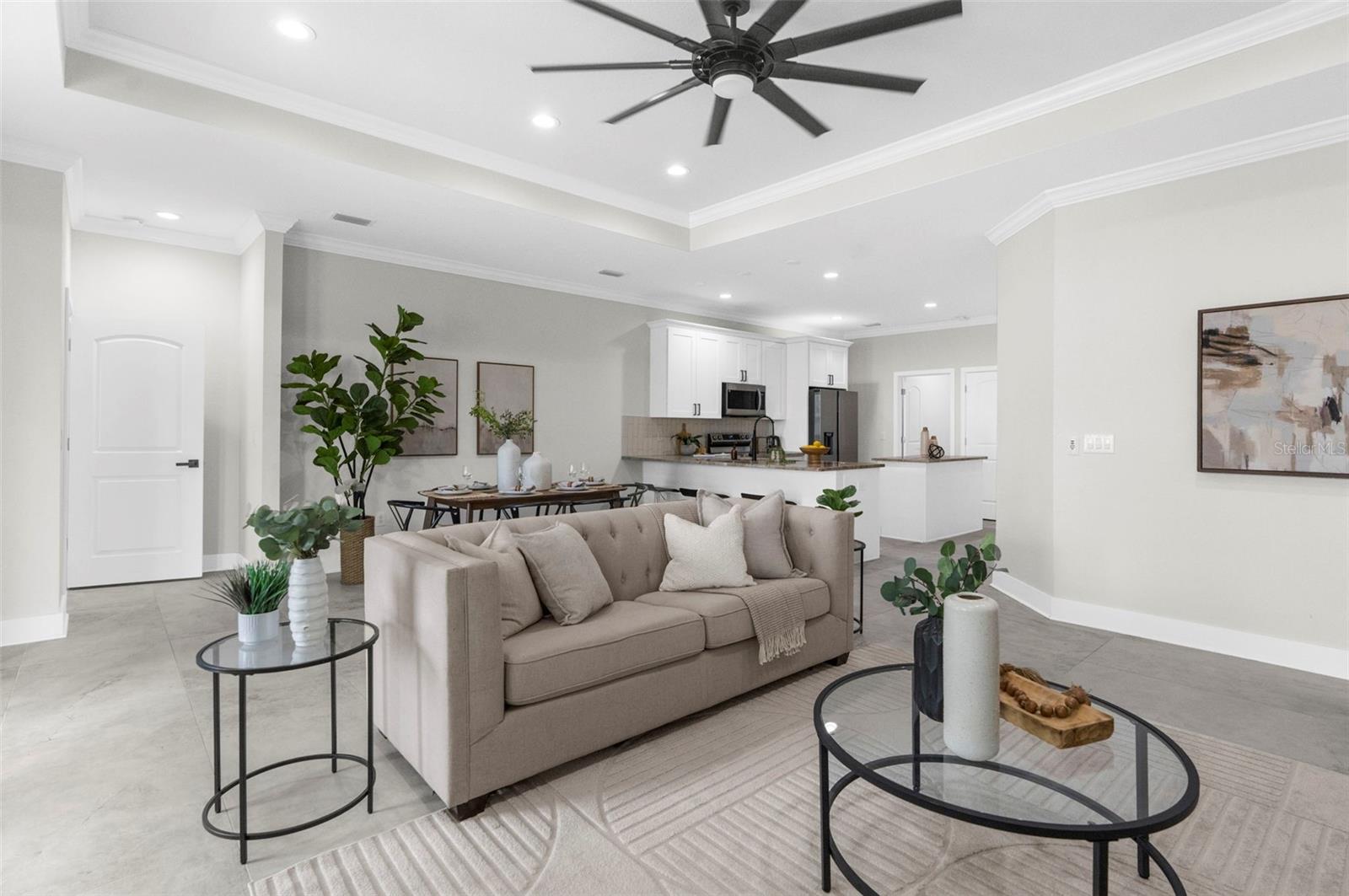 6904 N Lynn Ave offers nearly new construction in the heart of Seminole Heights, built in 2023 and designed with just under 1,800 square feet of comfortable, modern living. FULLY FENCED LOT WITH GREAT PRIVACY, INCLUDING OVERSIZED BACKYARD PATIO SURROUNDED BY MATURE LANDSCAPING. The interior is finished with large-format concrete-look tile throughout—no carpet anywhere—and elevated ceilings that give the space an open, airy feel. At the center of the home, the kitchen ties everything together with shaker cabinetry, stone counters, stainless appliances, and a functional island perfect for food prep or serving guests. The kitchen overlooks the dining and living areas with a tray ceiling detail, and together they open directly to the oversized covered lanai, creating an easy indoor-outdoor flow. The lanai is large enough for both a dining table and a lounge setup, ideal for year-round entertaining. The primary suite features another tray ceiling, a generous walk-in closet, and a well-appointed en-suite bathroom with double vanities and a frameless glass walk-in shower finished in vibrant blue subway tile laid in a staggered pattern. Three additional bedrooms are light-filled and flexible, supported by a second full bath. A laundry room, one-car garage, and a long driveway that provides extra parking round out the home’s practical touches. Living here means you’re within easy reach of Seminole Heights favorites—morning coffee at LPCX Café, barbecue at Wicked Oak, or a dinner out at Rooster & The Till. For a more casual night, Front Porch & Bart’s Tavern is just around the corner. The Seminole Heights Garden Center offers a quiet green escape, and Downtown Tampa is only minutes away with the Riverwalk, museums, and dining along the water.