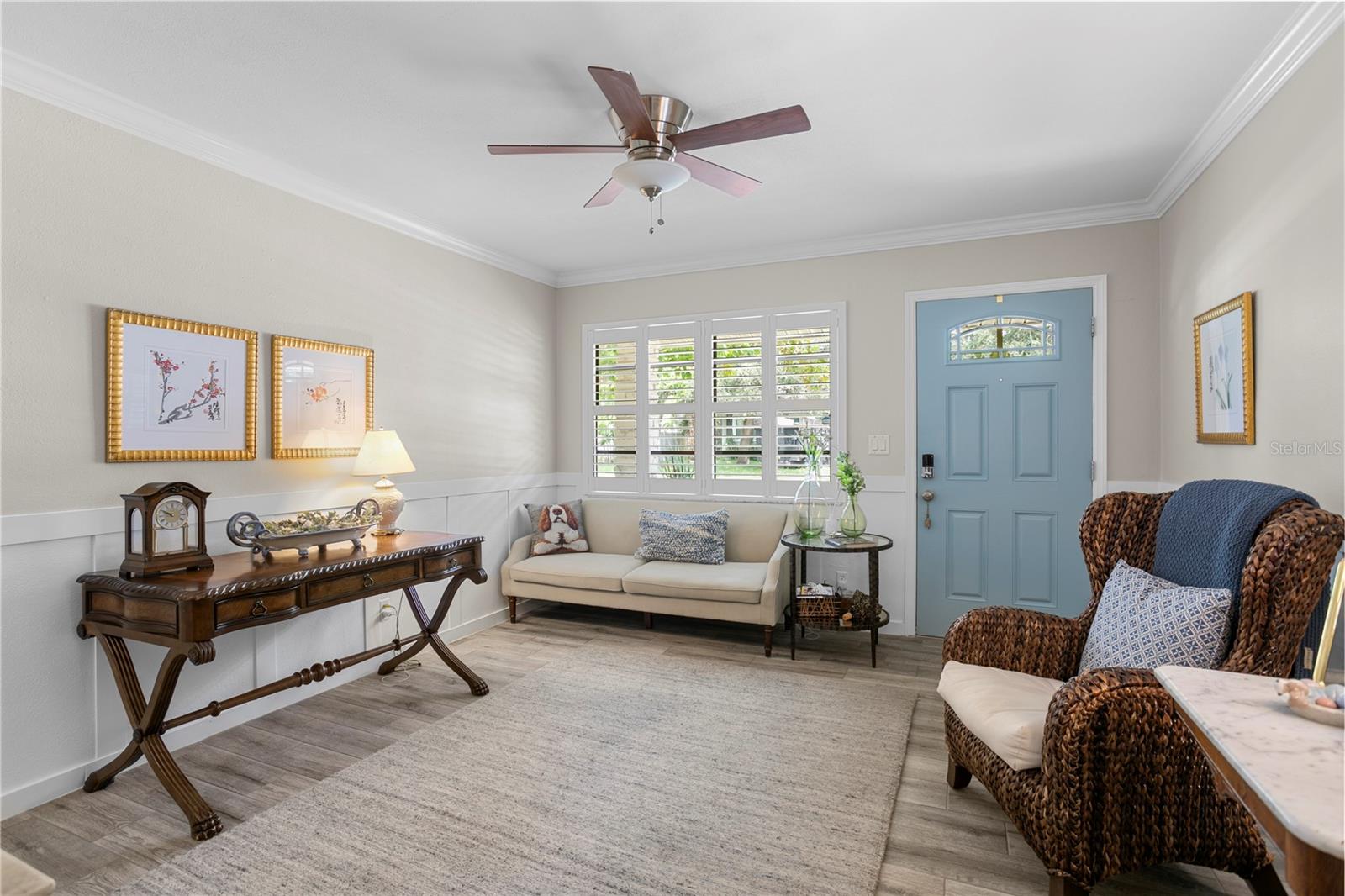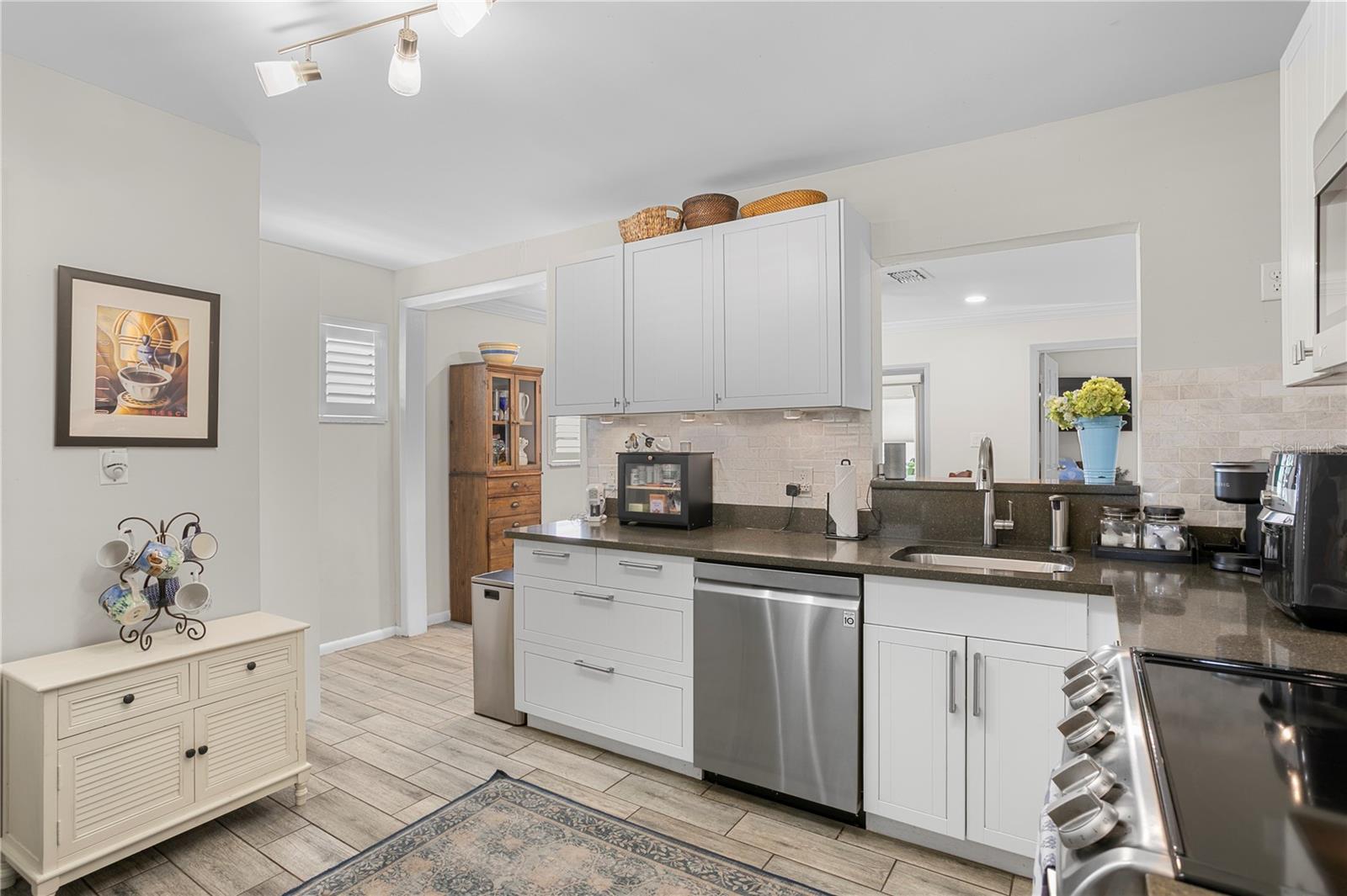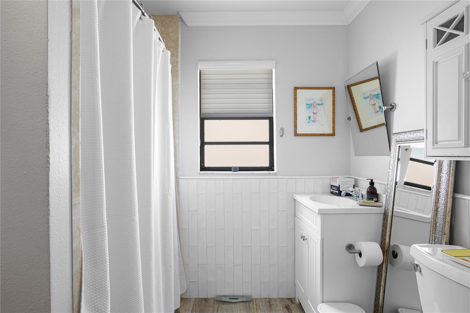 WONDERFUL PRICE REDUCTION! Welcome home to this darling South Tampa bungalow, in popular Virginia Park! High and dry; flood zone X500! Step from your covered front porch into a gracious living room with wainscoting and plenty of natural light. Two comfortable bedrooms with a hall bath are located to one side, and access to the balance of the home are on the other. The updated kitchen features newer cabinetry, newer appliances, and stone countertops. You'll love the spacious dining and great room, where you'll happily and comfortably entertain your guests. Step back to the primary suite with vaulted ceilings, a walk-in closet with custom closet system, and bathroom with two vanities and a walk-in shower. There is a wonderfully sweet den/office which leads to a delightful backyard with newer fencing, charming landscape, and a newer storage shed. This property is in great shape and ready for a new owner!