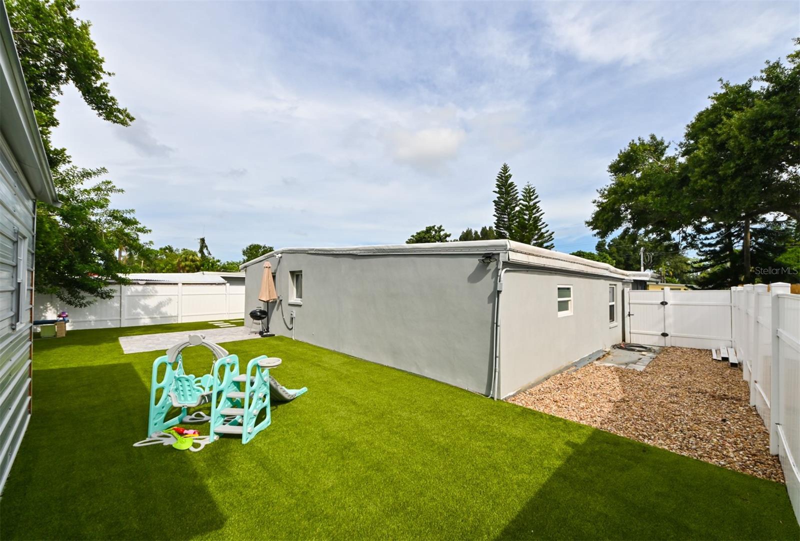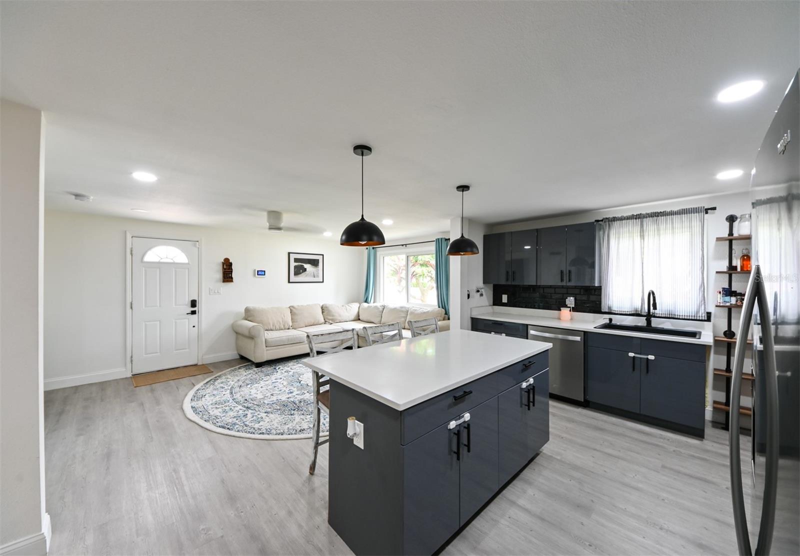 Motivated seller! Selling due to moving out of state. Immaculate South Tampa home — move-in ready & stylish combining South Tampa charm with immaculate condition, this bright and open-concept home is ready for you to move in. The interior features beautiful vinyl oak plank flooring throughout. The kitchen boasts stunning quartz countertops, modern updated cabinets, stainless steel appliances, and a large island with pendant lighting, creating a stylish and functional space. A spacious walk-in pantry adds convenient storage. Just off the kitchen is the master bedroom, accented with wood beams that add depth, warmth, and a cozy ambiance. The attached master bathroom features a walk-in frameless glass shower, a freestanding elegant bathtub, dual sinks, and a water closet. The master suite also includes a generous walk-in closet. Two additional bedrooms are separated from the master, each with surprisingly large closets to meet all your storage needs. The second bathroom has been completely updated with modern finishes, offering a fresh and contemporary look. Step outside to a fully fenced backyard with lush, all-year-round green turf — the perfect space for outdoor gatherings. An 18x20 multi-purpose steel shed with a solid foundation and electricity provides extra storage or workspace. Recent upgrades include a brand-new TPO roof (2024), HVAC system (2022), tankless water heater (2023), hurricane-proof windows, new ductwork, security system, and a top-of-the-line non-electric Kinetico 2022 water system, ensuring high water quality throughout the home. This high-and-dry property requires no flood insurance, and there are no CDD or HOA fees. Located less than 10 minutes from MacDill Air Force Base, with easy access to Crosstown, Gandy Bridge, Veterans Expressway, I-275, and Tampa International Airport, offering quick commutes to shopping, dining, hospitals, entertainment, and downtown Tampa. Don’t miss the opportunity to own this fully updated gem in one of Tampa’s desirable neighborhoods. Schedule your showing today!
