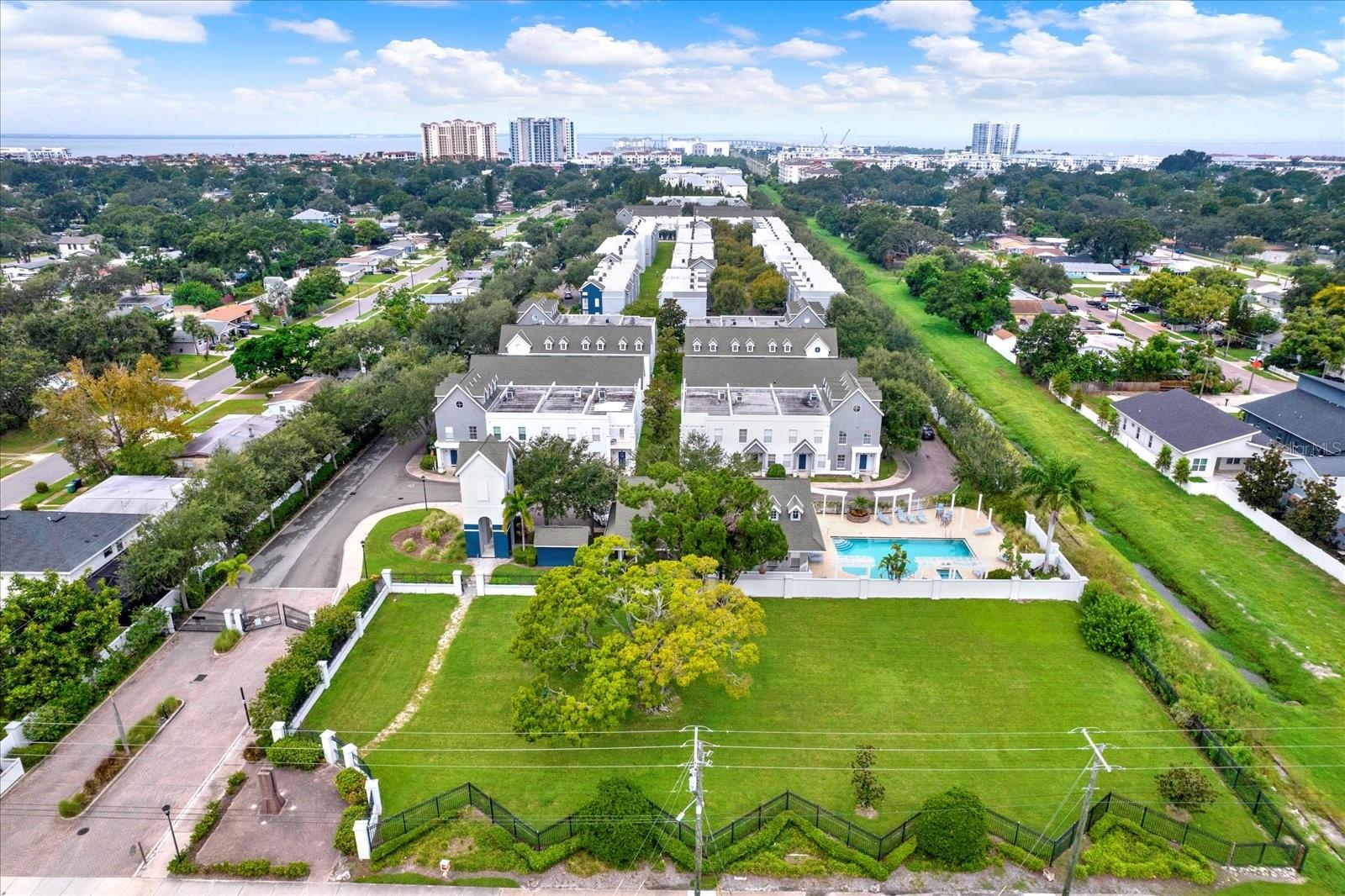 This lovely GATED 3 bedroom 3.5 bath townhome can be yours! Walk in to a first floor that includes a private bedroom with a full bath and access to a two-car garage, perfect for guests or a home office. The open-concept second floor connects the kitchen, dining, and living spaces with ease. Granite counters, stainless appliances, abundant cabinetry, and a closet pantry add both style and function, while a private balcony expands the living area outdoors. The top floor offers two spacious bedrooms with en-suite baths, including a primary suite with its own balcony and excellent closet space. A full-size laundry area is also conveniently located on this level. Legacy Park residents enjoy a pool, spa, clubhouse, gated dog park, and oak-lined streets, with HOA fees covering exterior maintenance, water, sewer, and trash. Ideally situated between downtown Tampa and downtown St. Pete, this home places you minutes from Bayshore Boulevard, Hyde Park, local marinas, and the airport.