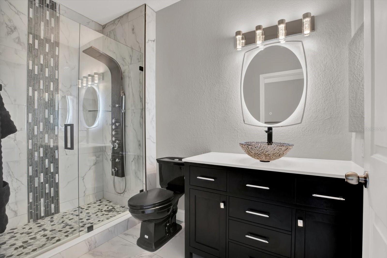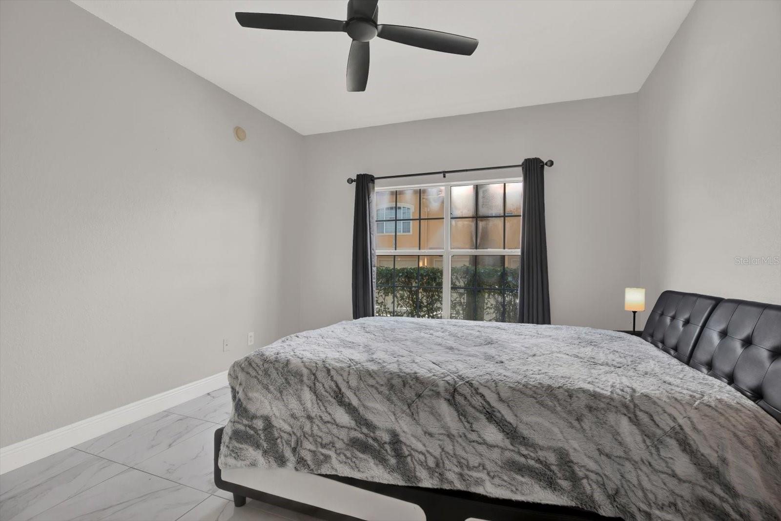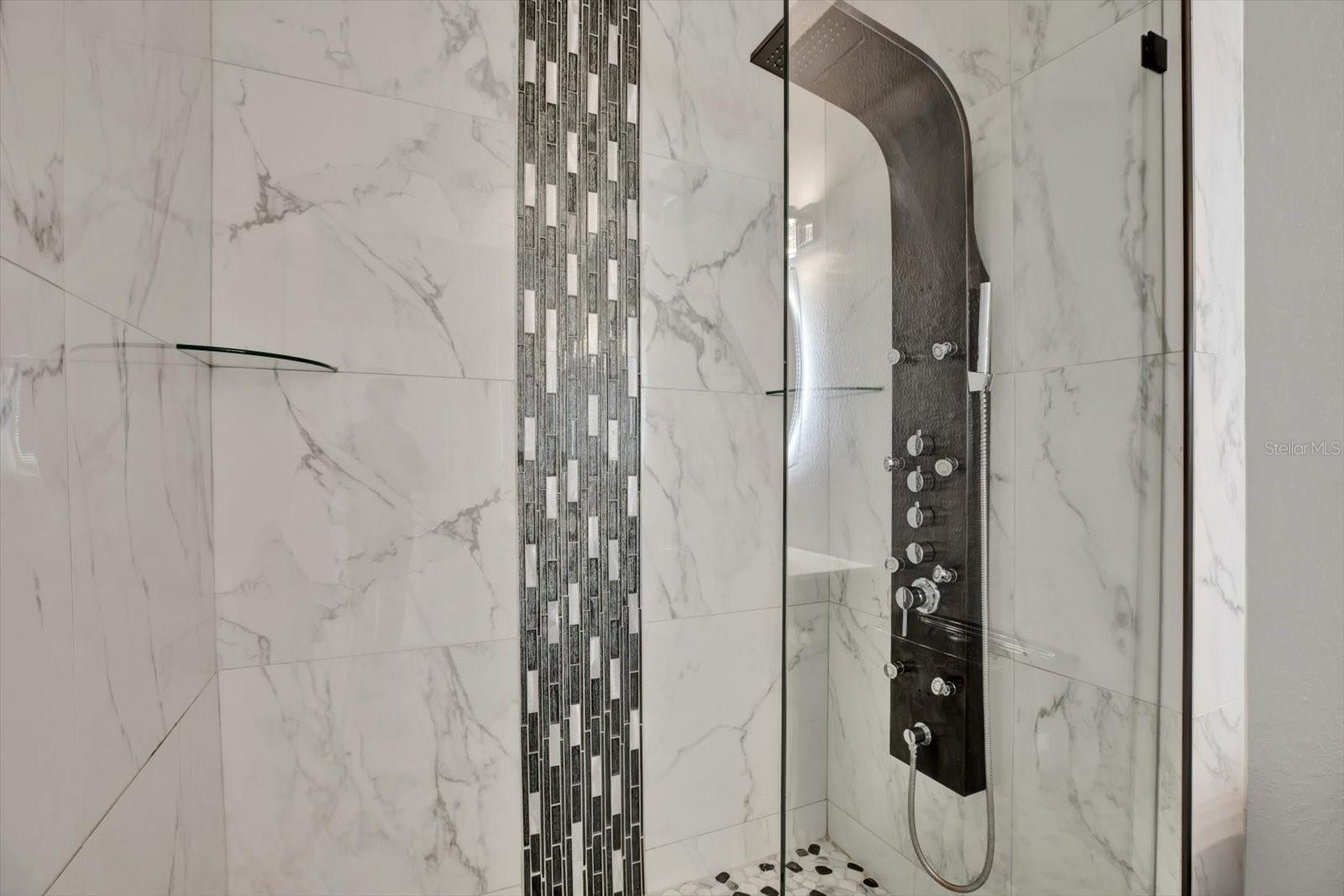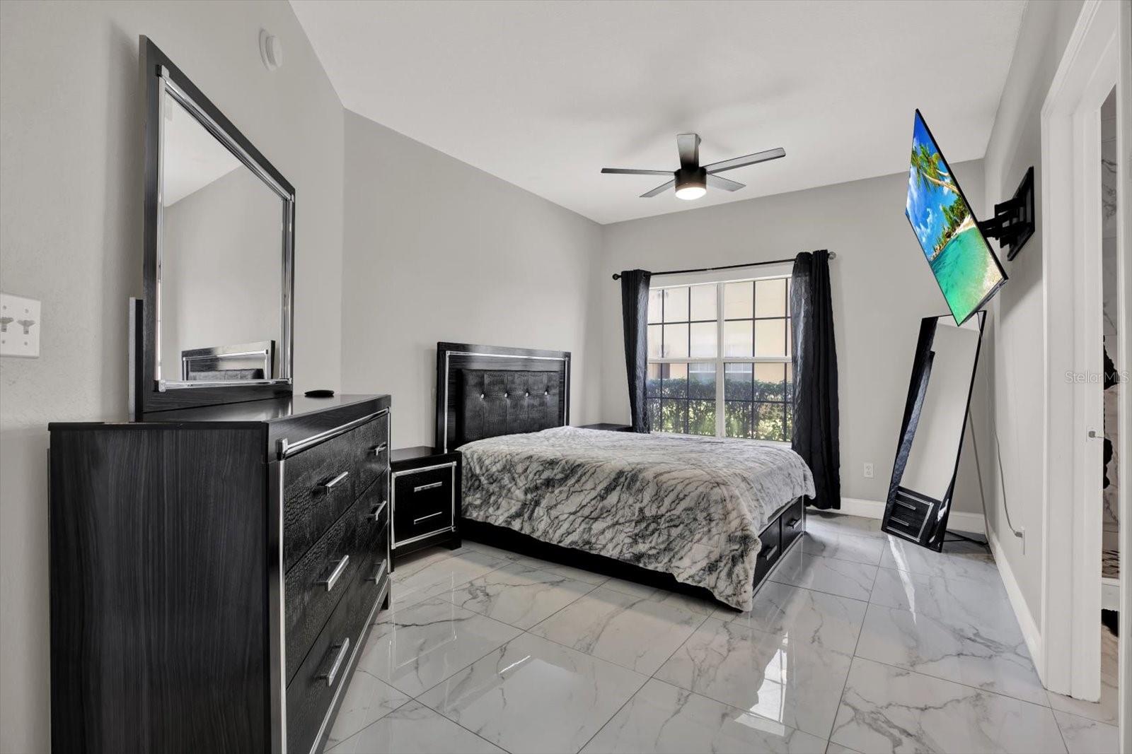 One or more photo(s) has been virtually staged. Step into this beautifully updated modern condo in the desirable, gated Beachwalk Condominiums community in Tampa. Designed for both comfort and style, this home features an open-concept layout with premium porcelain tile flooring throughout, creating a seamless flow between the kitchen, dining, and living areas. The fully renovated kitchen is a standout with granite countertops, custom cabinetry, mosaic tile backsplash, pull-down faucet, stainless steel appliances, and designer pendant lighting. Retreat to the spa-inspired bathrooms, each thoughtfully upgraded with marble-tiled shower walls, rain shower heads, LED vanity mirrors, mirrored shelving cabinets, and waterfall vessel sinks. The primary bath boasts a multiple shower head system for a true at-home oasis. Both bedrooms are generously sized with walk-in closets, and the home is enhanced with crown molding, fresh paint, and oversized insulated windows that fill the space with natural light. The private balcony features newly replaced screens, storage space, and tranquil views of the lush tropical landscaping. Recent updates include newer A/C (2019), LED lighting, washer, dryer, and water heater. Beachwalk Condominiums offers a resort-style living experience with a 24-hour manned security gate, fitness center, pool, game room, billiards tables, office and printer rooms, auditorium, canoe dock with bay access, and a scenic boardwalk along the water. HOA fees include water, sewer, and valet trash service, making this a turnkey opportunity in a prime Tampa location.