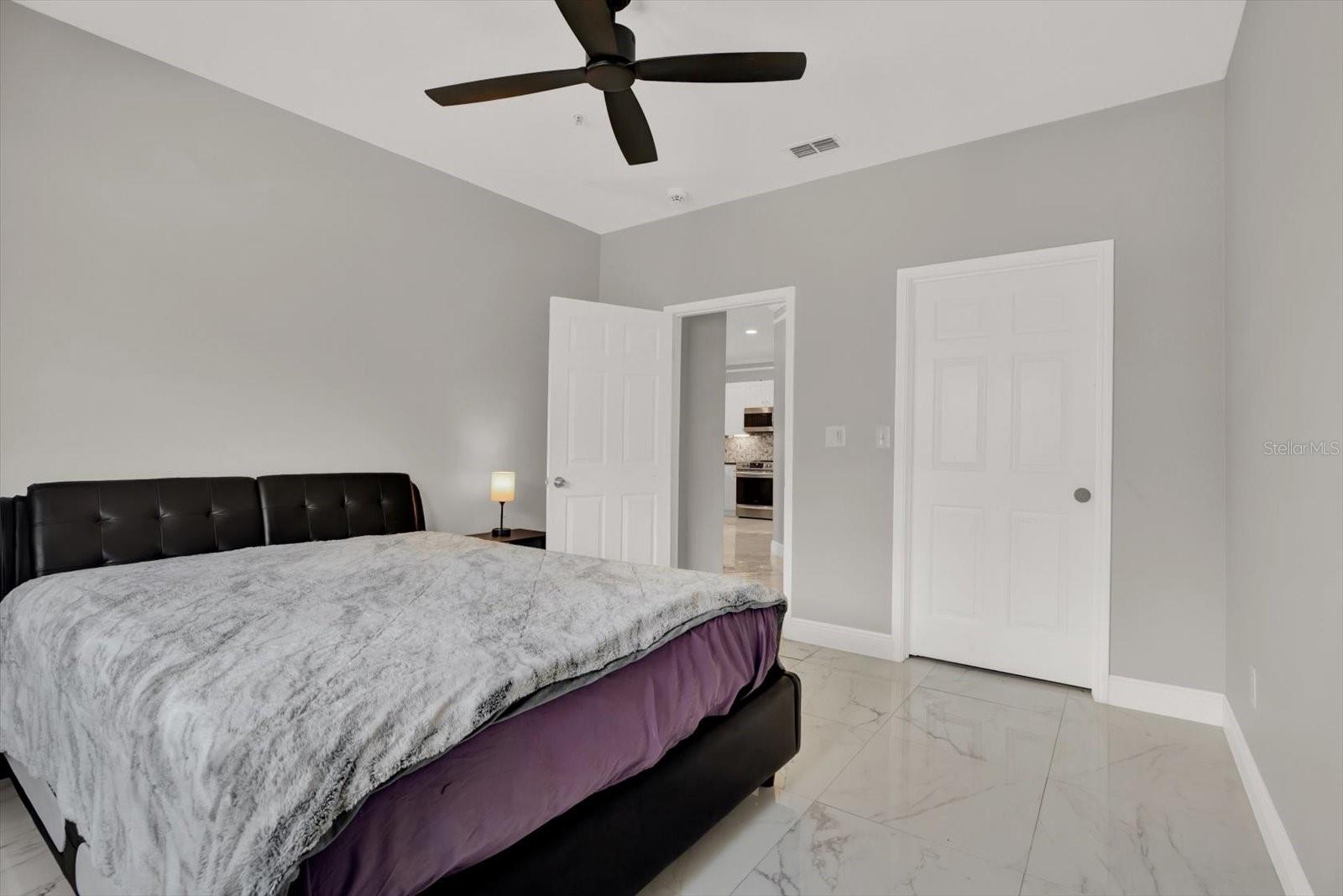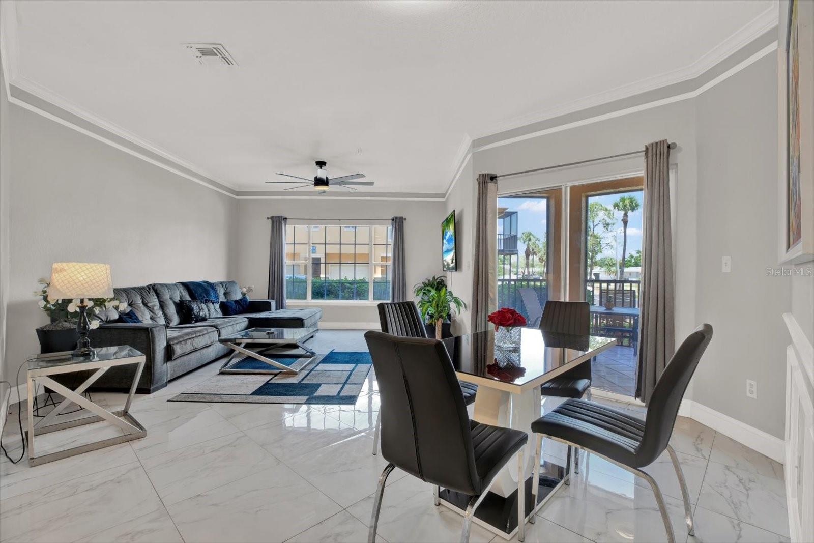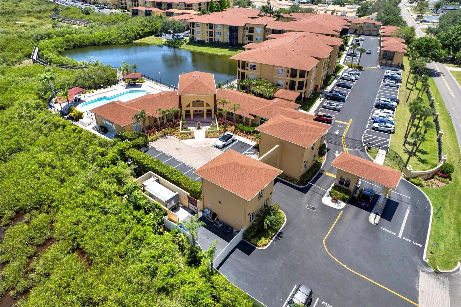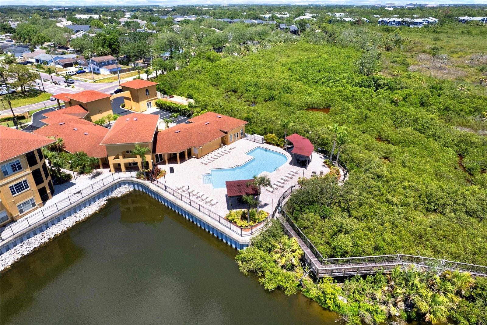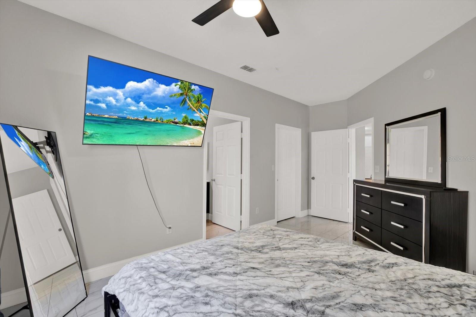One or more photo(s) has been virtually staged. Step into this beautifully updated modern condo in the desirable, gated Beachwalk Condominiums community in Tampa. Designed for both comfort and style, this home features an open-concept layout with premium porcelain tile flooring throughout, creating a seamless flow between the kitchen, dining, and living areas. The fully renovated kitchen is a standout with granite countertops, custom cabinetry, mosaic tile backsplash, pull-down faucet, stainless steel appliances, and designer pendant lighting. Retreat to the spa-inspired bathrooms, each thoughtfully upgraded with marble-tiled shower walls, rain shower heads, LED vanity mirrors, mirrored shelving cabinets, and waterfall vessel sinks. The primary bath boasts a multiple shower head system for a true at-home oasis. Both bedrooms are generously sized with walk-in closets, and the home is enhanced with crown molding, fresh paint, and oversized insulated windows that fill the space with natural light. The private balcony features newly replaced screens, storage space, and tranquil views of the lush tropical landscaping. Recent updates include newer A/C (2019), LED lighting, washer, dryer, and water heater. Beachwalk Condominiums offers a resort-style living experience with a 24-hour manned security gate, fitness center, pool, game room, billiards tables, office and printer rooms, auditorium, canoe dock with bay access, and a scenic boardwalk along the water. HOA fees include water, sewer, and valet trash service, making this a turnkey opportunity in a prime Tampa location.