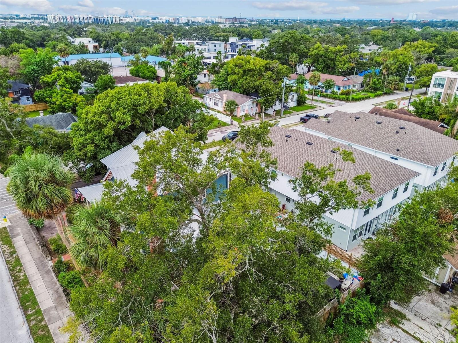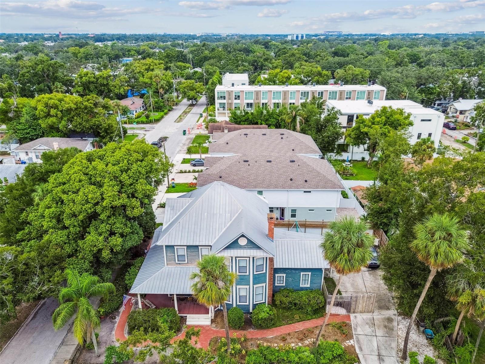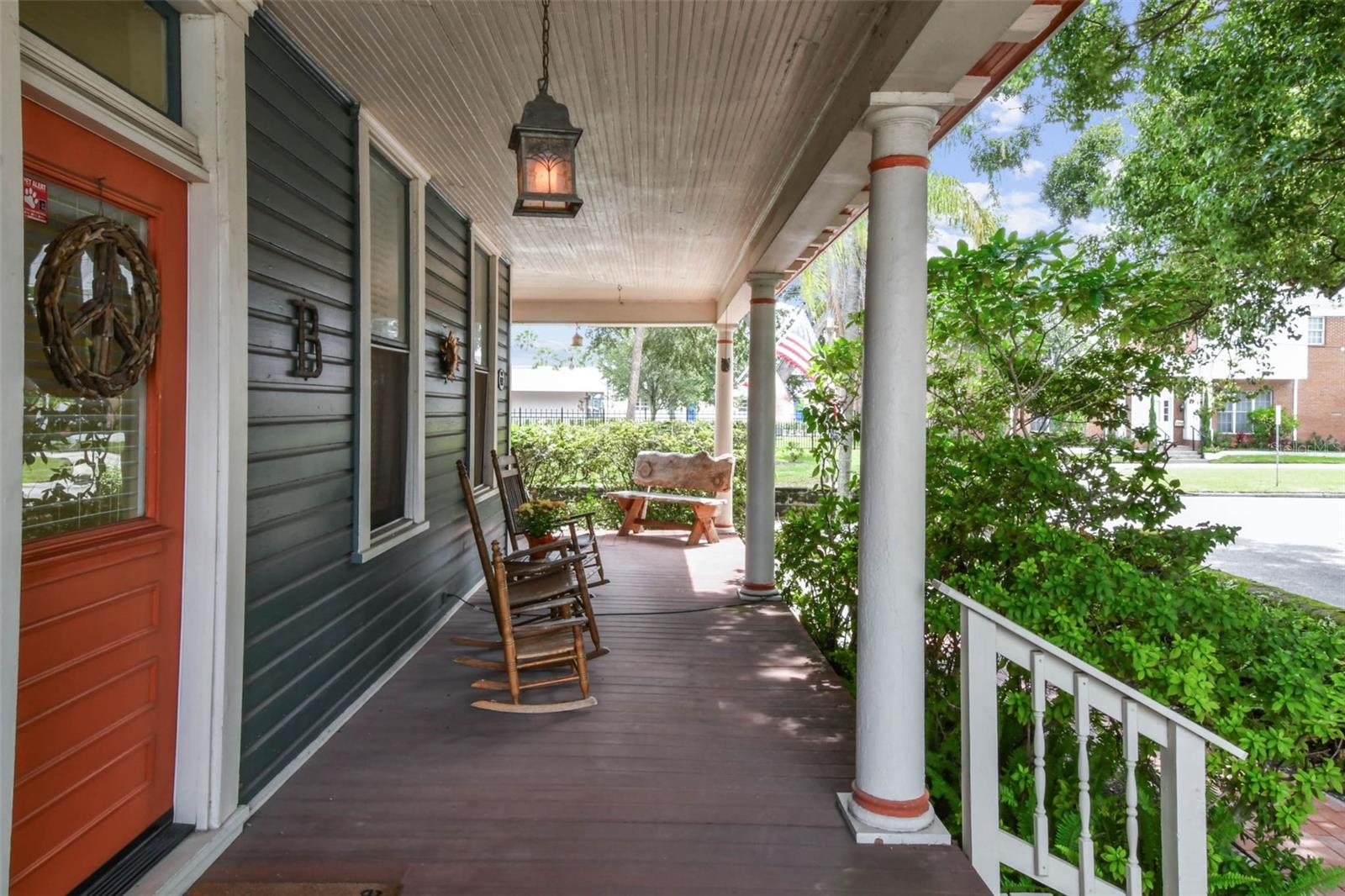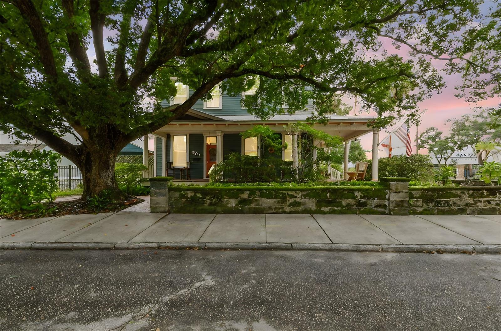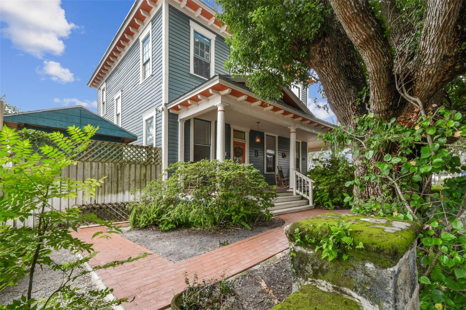 Welcome to this beautifully preserved 1913 home located in the heart of highly sought-after Tampa Heights. Nestled on a picturesque 75 x 109 corner lot, this historic residence blends timeless charm with thoughtful updates-perfectly suited for those who appreciate character and vintage ambiance. From the moment you arrive, the curb appeal is undeniable. A stunning wraparound porch invites you in, offering the ideal spot to relax under the shade of majestic trees. The back yard is fully fenced, features large double gates, providing secure access, ample parking, a covered carport (that may double as an outdoor patio), and a newer solid shed with hurricane straps. This home has been lovingly maintained. A durable and long lasting metal roof (2006), a newer HVAC unit (2022/2023), and a commercial-grade gas tankless water heater (2018/250k BTU's) ensure comfort and efficiency. Step inside to find a grand entryway full of light that leads to a spacious dining room and an expansive living room with gas fireplace-ideal for entertaining and holiday meals. The retro-style kitchen features newer appliances (gas range), a built in table and bench duo. Downstairs you will also find a laundry room and a full bedroom and bathroom for added convenience and flexibility. Climb the impressive staircase to find 3 bedrooms, 2 of which are generously sized, a large full bath, and access to a fully insulated attic, already plumbed for an additional bathroom. The attic may easily be converted into a private retreat, a studio, or more living space. Tampa Heights offers unbeatable location perks. Head South and you are minutes from Armature Works and Downtown Tampa. Go North for quick access to vibrant Riverside Heights and trendy Seminole Heights. I275, I4, Ybor City, Port Tampa, the Channelside District and more are a short drive away. Don't miss this rare opportunity to own a piece of Tampa's History-with all the updates needed to enjoy it for years to come.
