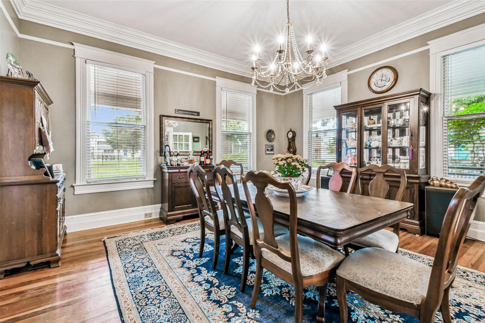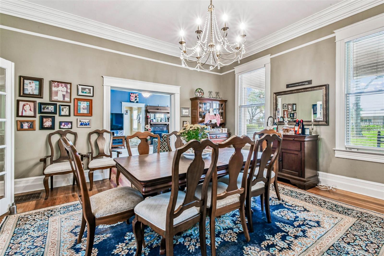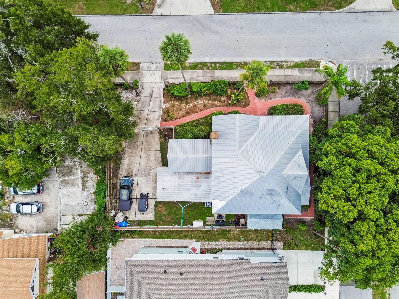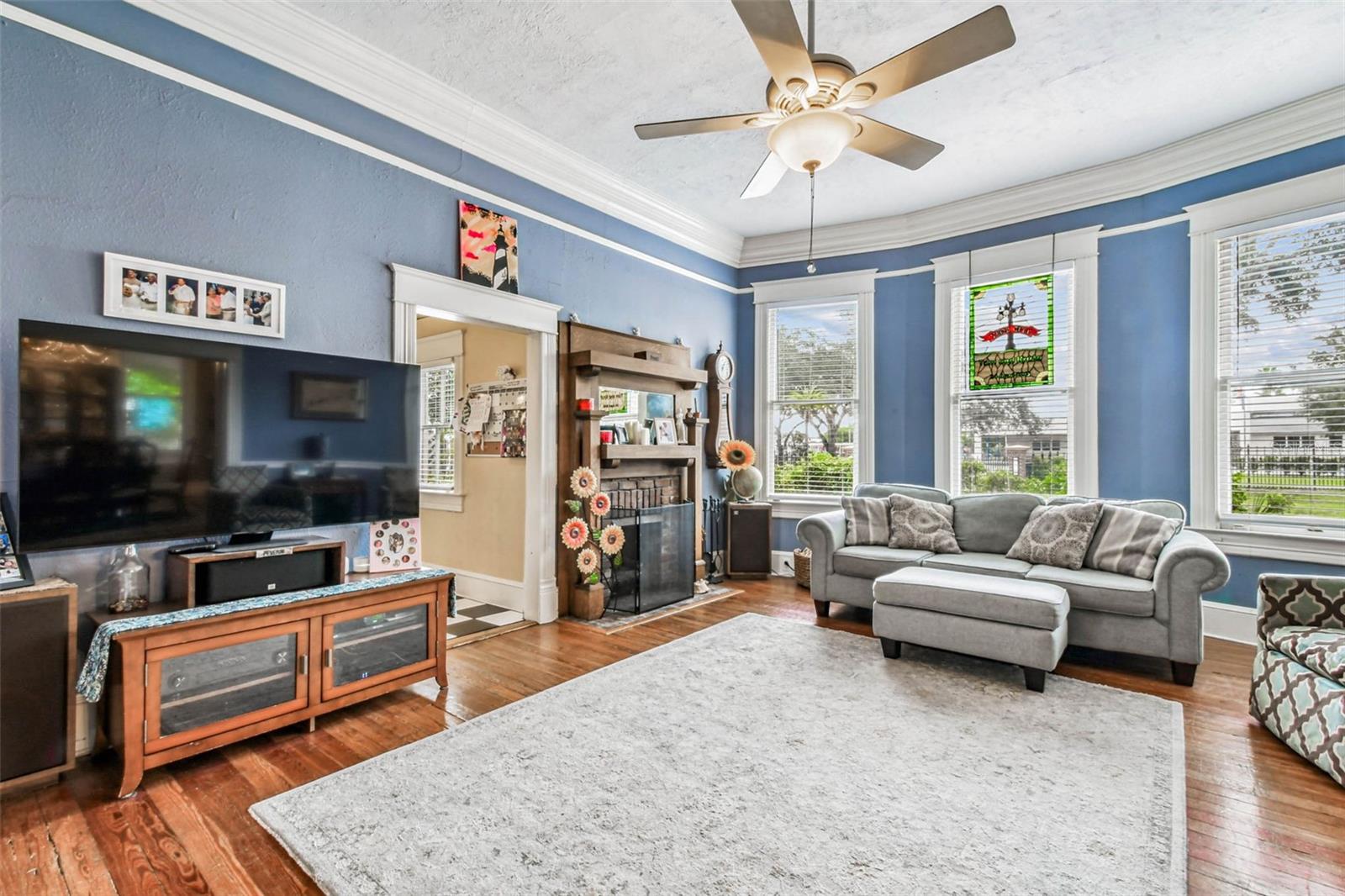 Welcome to this beautifully preserved 1913 home located in the heart of highly sought-after Tampa Heights. Nestled on a picturesque 75 x 109 corner lot, this historic residence blends timeless charm with thoughtful updates-perfectly suited for those who appreciate character and vintage ambiance. From the moment you arrive, the curb appeal is undeniable. A stunning wraparound porch invites you in, offering the ideal spot to relax under the shade of majestic trees. The back yard is fully fenced, features large double gates, providing secure access, ample parking, a covered carport (that may double as an outdoor patio), and a newer solid shed with hurricane straps. This home has been lovingly maintained. A durable and long lasting metal roof (2006), a newer HVAC unit (2022/2023), and a commercial-grade gas tankless water heater (2018/250k BTU's) ensure comfort and efficiency. Step inside to find a grand entryway full of light that leads to a spacious dining room and an expansive living room with gas fireplace-ideal for entertaining and holiday meals. The retro-style kitchen features newer appliances (gas range), a built in table and bench duo. Downstairs you will also find a laundry room and a full bedroom and bathroom for added convenience and flexibility. Climb the impressive staircase to find 3 bedrooms, 2 of which are generously sized, a large full bath, and access to a fully insulated attic, already plumbed for an additional bathroom. The attic may easily be converted into a private retreat, a studio, or more living space. Tampa Heights offers unbeatable location perks. Head South and you are minutes from Armature Works and Downtown Tampa. Go North for quick access to vibrant Riverside Heights and trendy Seminole Heights. I275, I4, Ybor City, Port Tampa, the Channelside District and more are a short drive away. Don't miss this rare opportunity to own a piece of Tampa's History-with all the updates needed to enjoy it for years to come.