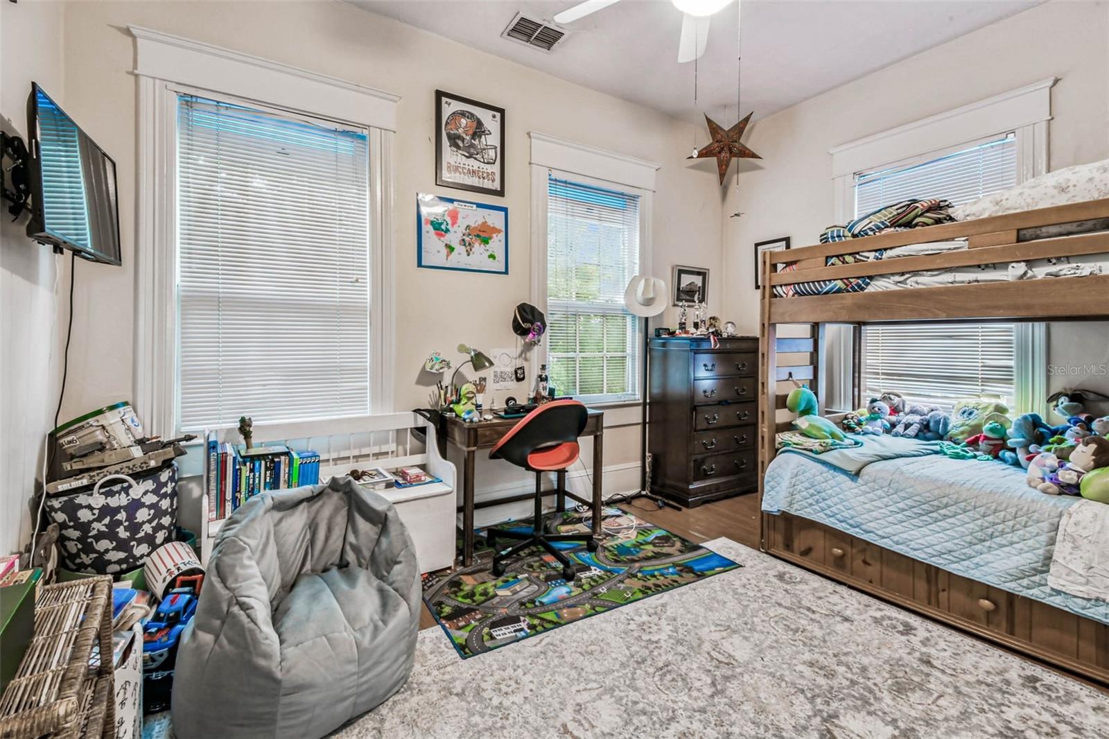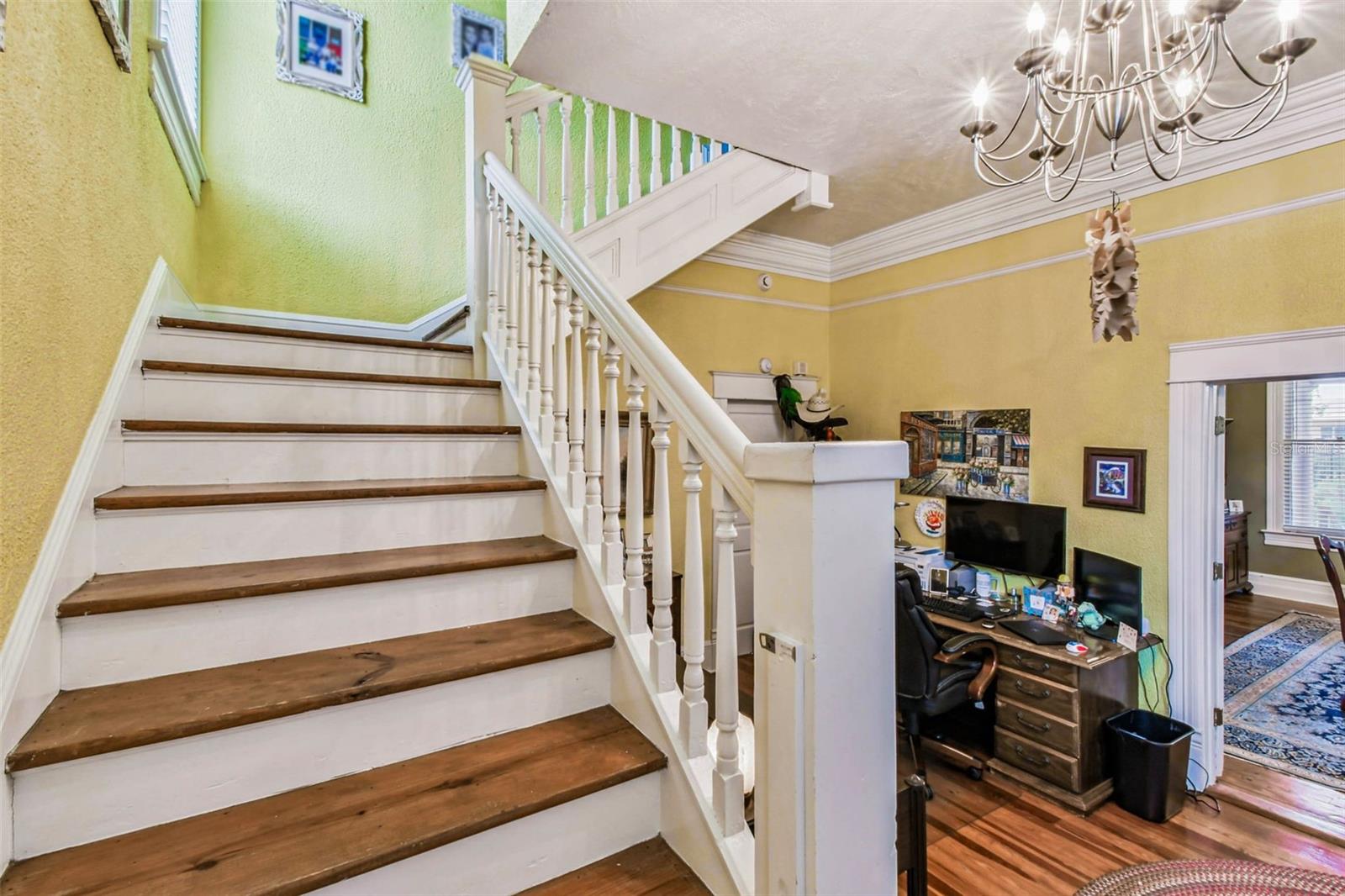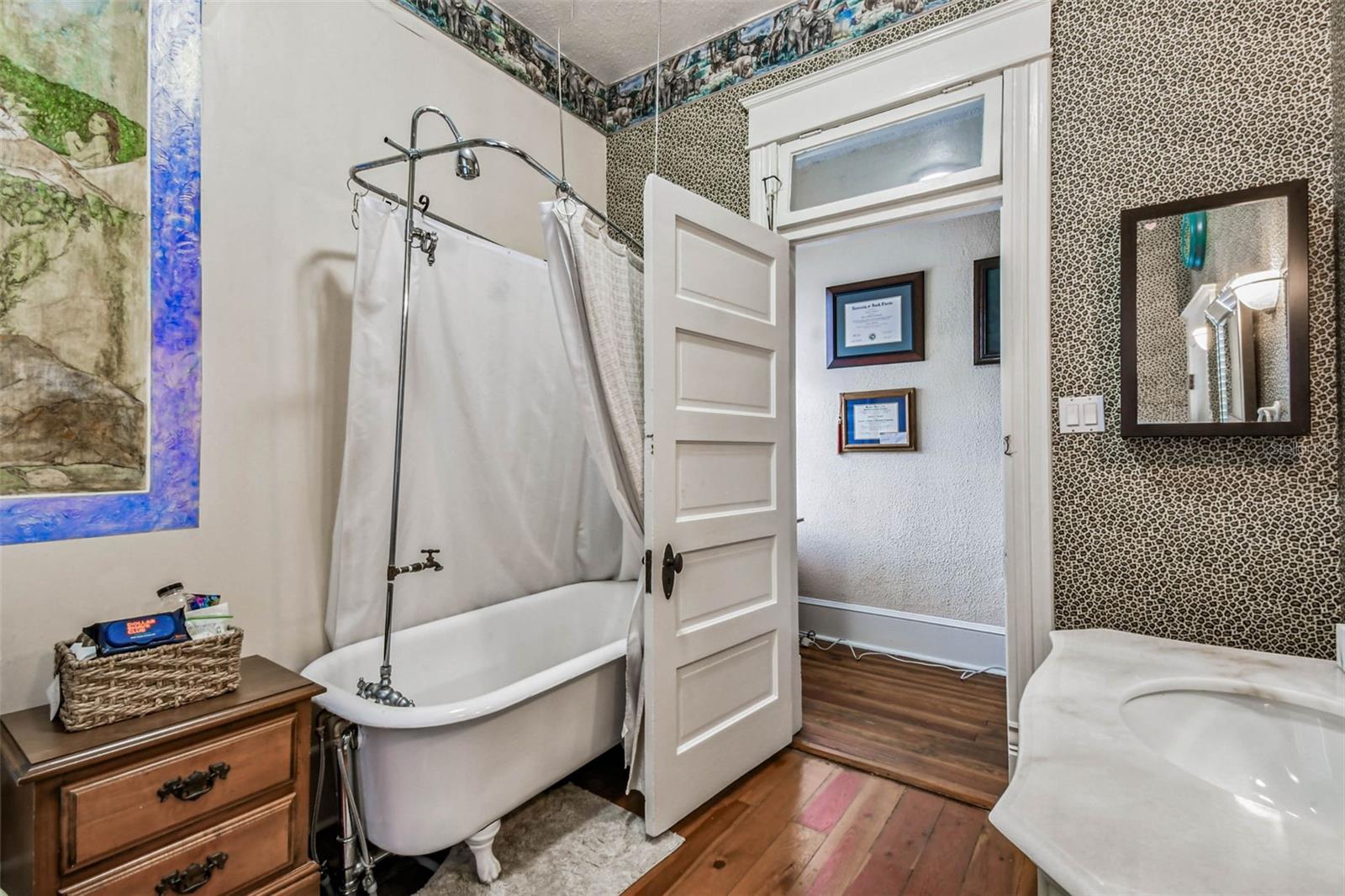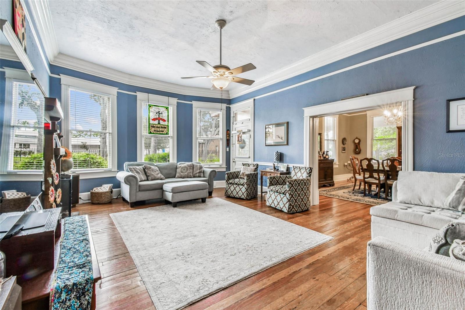 Welcome to this beautifully preserved 1913 home located in the heart of highly sought-after Tampa Heights. Nestled on a picturesque 75 x 109 corner lot, this historic residence blends timeless charm with thoughtful updates-perfectly suited for those who appreciate character and vintage ambiance. From the moment you arrive, the curb appeal is undeniable. A stunning wraparound porch invites you in, offering the ideal spot to relax under the shade of majestic trees. The back yard is fully fenced, features large double gates, providing secure access, ample parking, a covered carport (that may double as an outdoor patio), and a newer solid shed with hurricane straps. This home has been lovingly maintained. A durable and long lasting metal roof (2006), a newer HVAC unit (2022/2023), and a commercial-grade gas tankless water heater (2018/250k BTU's) ensure comfort and efficiency. Step inside to find a grand entryway full of light that leads to a spacious dining room and an expansive living room with gas fireplace-ideal for entertaining and holiday meals. The retro-style kitchen features newer appliances (gas range), a built in table and bench duo. Downstairs you will also find a laundry room and a full bedroom and bathroom for added convenience and flexibility. Climb the impressive staircase to find 3 bedrooms, 2 of which are generously sized, a large full bath, and access to a fully insulated attic, already plumbed for an additional bathroom. The attic may easily be converted into a private retreat, a studio, or more living space. Tampa Heights offers unbeatable location perks. Head South and you are minutes from Armature Works and Downtown Tampa. Go North for quick access to vibrant Riverside Heights and trendy Seminole Heights. I275, I4, Ybor City, Port Tampa, the Channelside District and more are a short drive away. Don't miss this rare opportunity to own a piece of Tampa's History-with all the updates needed to enjoy it for years to come.