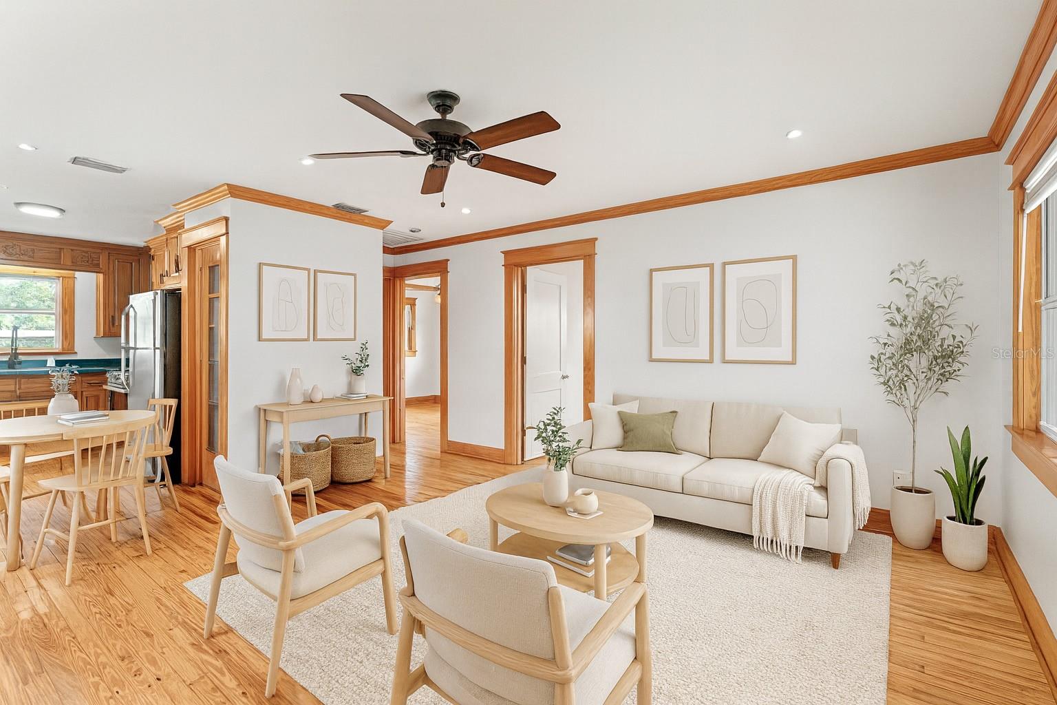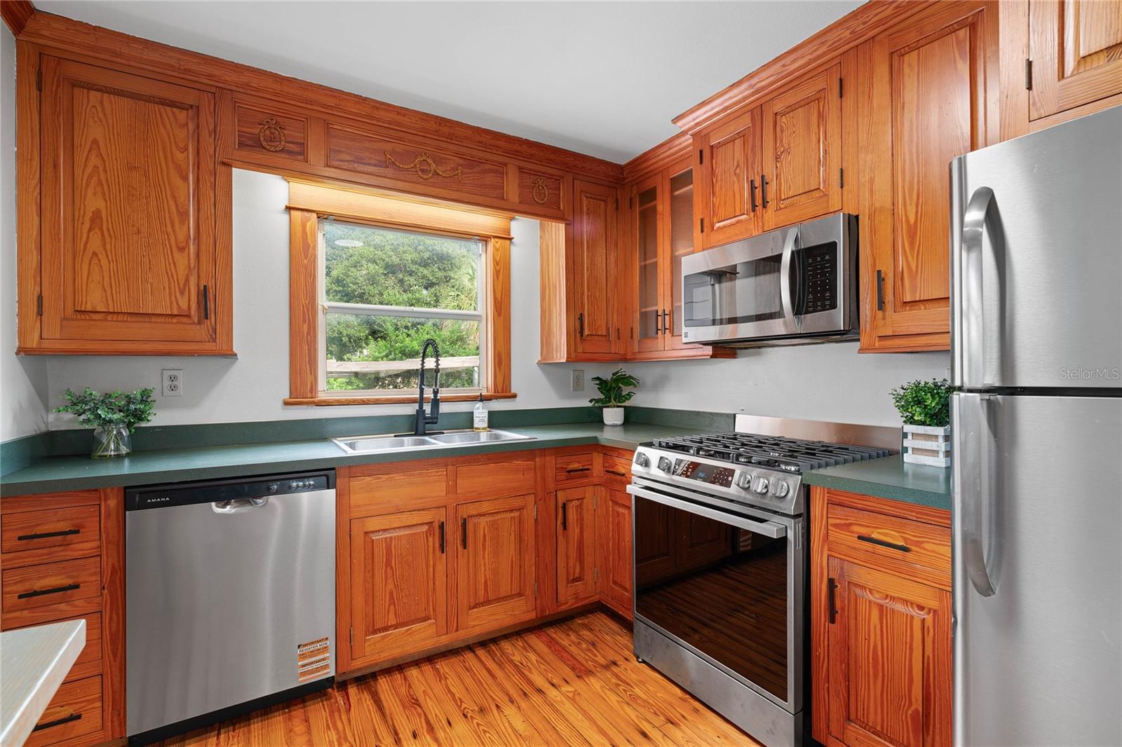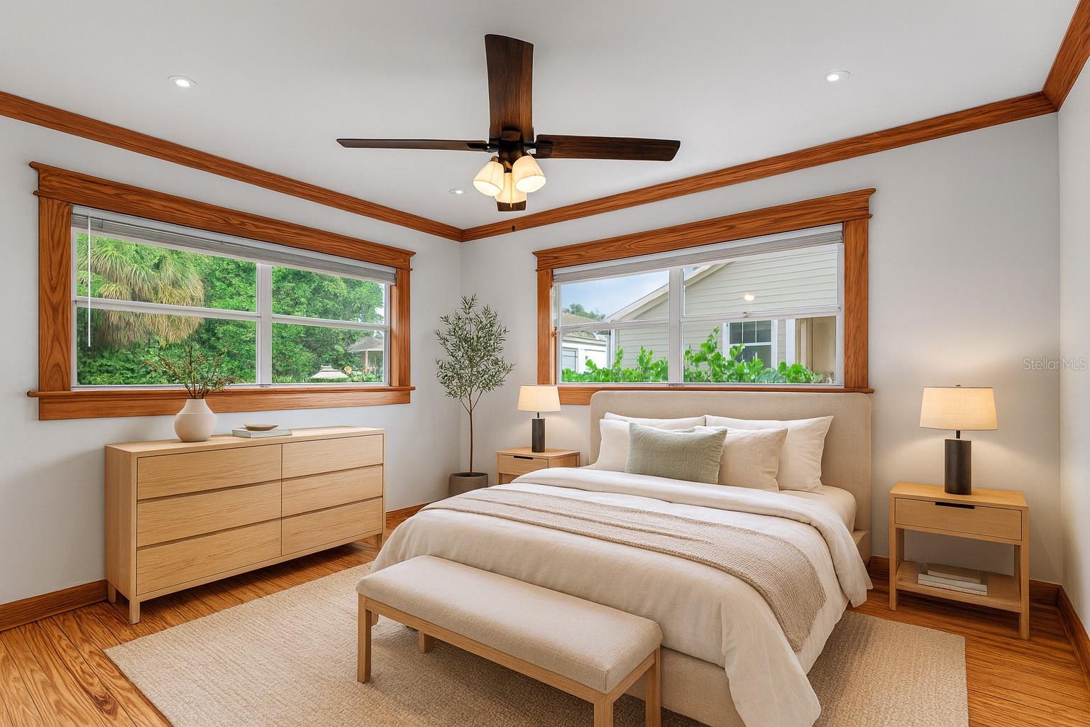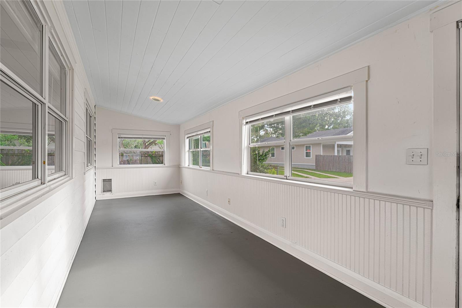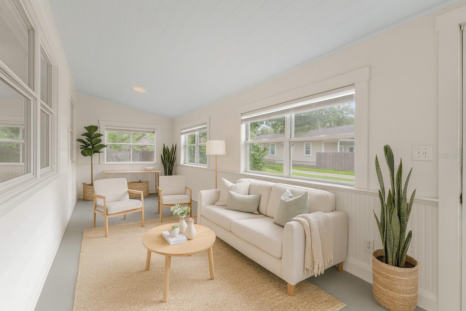 One or more photo(s) has been virtually staged. Welcome to this incredibly charming 2-bedroom, 1-bath craftsman home located in a quiet pocket of Seminole Heights, within walking distance to local favorites like Bamboozle, Heights Pizza, and Bo’s Ice Cream. As you step into the spacious enclosed sunroom, you’ll notice the home combines historic character with thoughtful updates. Inside, you’ll find original heart pine hardwood floors and beautifully crafted stained wood trim, baseboards, crown molding, and custom kitchen cabinetry - all a rare testament to the craftsmanship of the home’s previous owner, a woodworker who meticulously maintained the property. The kitchen is filled with natural light and blends classic detail with modern convenience, featuring new stainless steel appliances, gas range, chef’s style faucet, dishwasher, pantry storage, and extra counter space with open shelving. Both bedrooms are spacious and inviting, accented with the same warm wood finishes and large windows that flood each room with natural light, while the second bedroom offers a unique stained-glass window for added character. The enclosed front sunroom provides an additional 200 square feet of versatile flex living space - ideal for a home office, sitting/reading space, or playroom - and even includes a discreet pet door and ramp for furry friends to explore outside. Outdoors, the home offers a covered carport with a 60-square-foot laundry and storage room, along with a private, fully fenced backyard framed by lush landscaping. The walkway leads to a charming covered pergola perfect for relaxing or entertaining, while a storage shed in the rear yard adds additional space for all your storage needs. Recent upgrades add tremendous value, including a brand NEW ROOF installed in [2025], a water filtration system, and a full solar power system. The solar can either be fully paid off at closing - leaving the new owner with no electric bill - or the buyer can assume the fixed $127 per month solar payment, creating long-term savings on utilities. Surrounded by a mix of charming vintage homes and lots of beautiful new construction, all centrally located in one of Tampa's most beloved neighborhoods Seminole Heights, just minutes to Downtown Tampa, Armature Works, the Tampa Riverwalk, Ybor, Raymond James Stadium, Busch Gardens, amazing local restaurants, shops, and major highways making commuting around Tampa Bay a breeze.