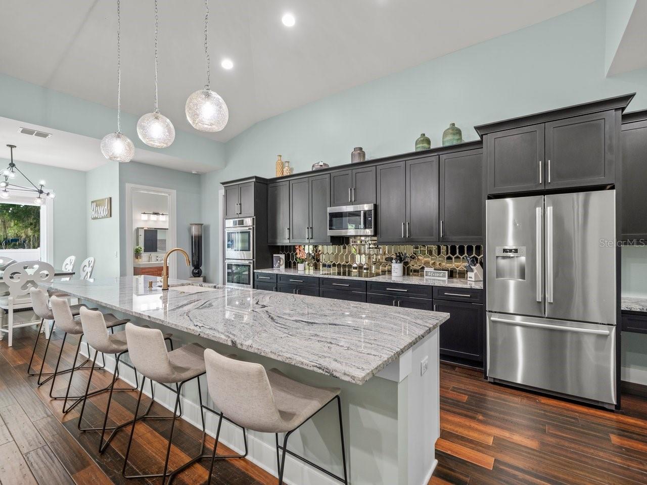 Built in 2018, this meticulously maintained 3,000+ sq ft estate offers 4 bedrooms, 3 bathrooms, and refined living on a .38-acre lot with a fully fenced ½ acre portion, thoughtfully designed for both comfort and style. From the moment you arrive, the home’s striking curb appeal and welcoming entryway set the tone for what awaits inside. Step through the front door to soaring ceilings, hardwood floors, and an open-concept floor plan ideal for entertaining. The gourmet kitchen is the centerpiece, featuring quartz countertops, a large island, premium cabinetry, stainless steel appliances, and a wine fridge. The spacious living and dining areas flow seamlessly, creating the perfect environment for everyday living and gatherings. The owner’s suite provides a private retreat, complete with a spa-inspired bathroom including dual vanities, jacuzzi tub, walk-in shower, and a generous walk-in closet. Additional bedrooms include a full guest suite, while a dedicated flex space, office, and media room offer even more versatility for today’s lifestyle. Outdoor living is elevated with an extended covered porch, gazebo, electric screen panels, and built-in Bluetooth speakers, creating the ultimate entertainment space. The oversized garage features tall ceilings, an insulated door, and abundant storage. Hurricane-rated windows and doors, a whole-home water softener, a regularly serviced air conditioning system, and a security camera system provide peace of mind and efficiency. This custom-built home was designed with energy efficiency in mind and includes so many upgrades and details they are too numerous to list. With dual side-gate access and a fenced ½ acre yard, this property blends privacy, luxury, and convenience. Perfectly situated in desirable North Carrollwood, you’ll be minutes from top-rated schools, shopping, dining, and major highways. Don’t miss the opportunity to own this newer-construction estate that defines modern Florida living.