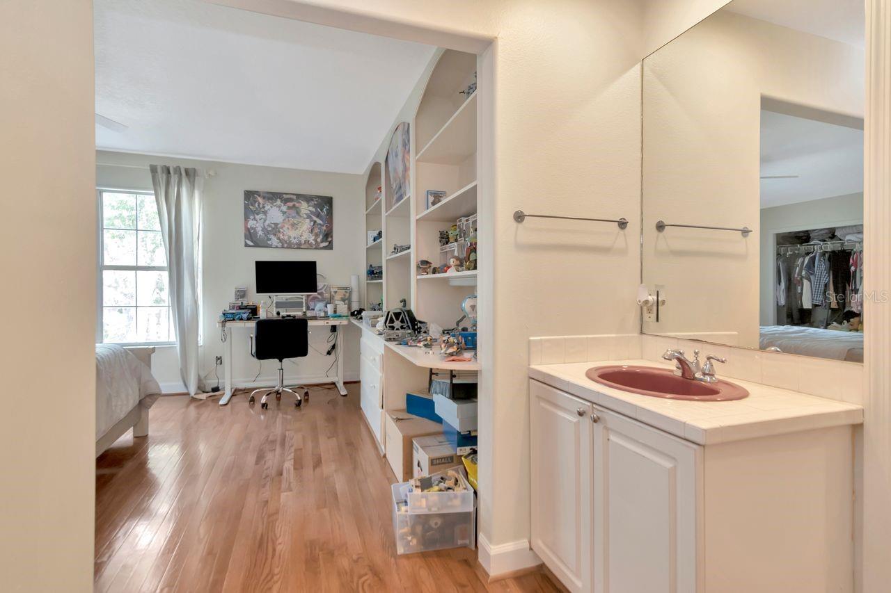 Welcome to an exceptional opportunity in the prestigious gated community of Magdalene Reserve. Nestled at the end of a quiet cul-de-sac and surrounded by mature, winding oak trees and lush landscaping, this beautiful property offers a rare combination of space, privacy, and unique features. It is the only home in the community that includes a detached guest house with private access from the rear street. Both the main house and guest house have newer roofs, providing added value and peace of mind for years to come. As you enter through the grand foyer, a dramatic spiral staircase and elegant balcony make an unforgettable first impression. To the left is a formal living area with soaring 12-foot ceilings, while to the right is a spacious bonus room—perfect for a home office, playroom, or media room. Gleaming hardwood floors run throughout the home, complementing its timeless design. The large laundry room includes a washer and dryer for added convenience. The heart of the home is the inviting family room, featuring custom built-in shelving surrounding a beautiful marble wood-burning fireplace. Expansive sliding glass doors open to a serene outdoor space with a sparkling saltwater pool and spa—perfect for relaxing or entertaining. Adjacent to the family room is a chef-inspired kitchen complete with granite countertops, stainless steel appliances, a gas range, warming drawer, prep island with sink, large refrigerator, ample cabinetry, walk-in pantry, and a bar-height counter for casual dining. A formal dining room sits just off the kitchen and also provides sliding door access to the pool area, creating an effortless indoor-outdoor flow Upstairs, you'll find five generously sized bedrooms. The luxurious master suite features two walk-in closets and a spa-like bathroom with dual vanities, a soaking tub, and a walk-in shower. The detached guest house offers approximately 600 square feet of living space, including one bedroom, one bathroom, and a private one-car garage—ideal for guests, extended family, or even potential rental income. Additional features include a saltwater chlorinator system for the pool (leased), a leased propane tank for the kitchen range, an A/C system replaced in 2017, a hot water heater replaced in 2020, a pool pump updated in 2016, and a whole-house water treatment system that is installed but currently not connected. This home is filled with charm and ready for your personal touches. Don’t miss the chance to own one of the most unique and desirable properties in Magdalene Reserve. Schedule your private tour today!
