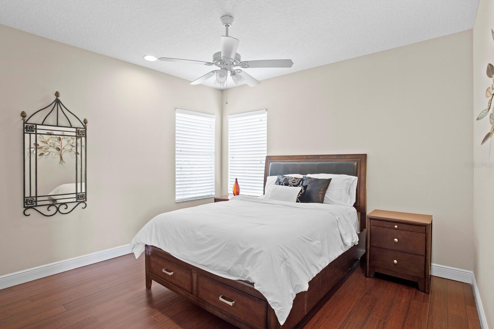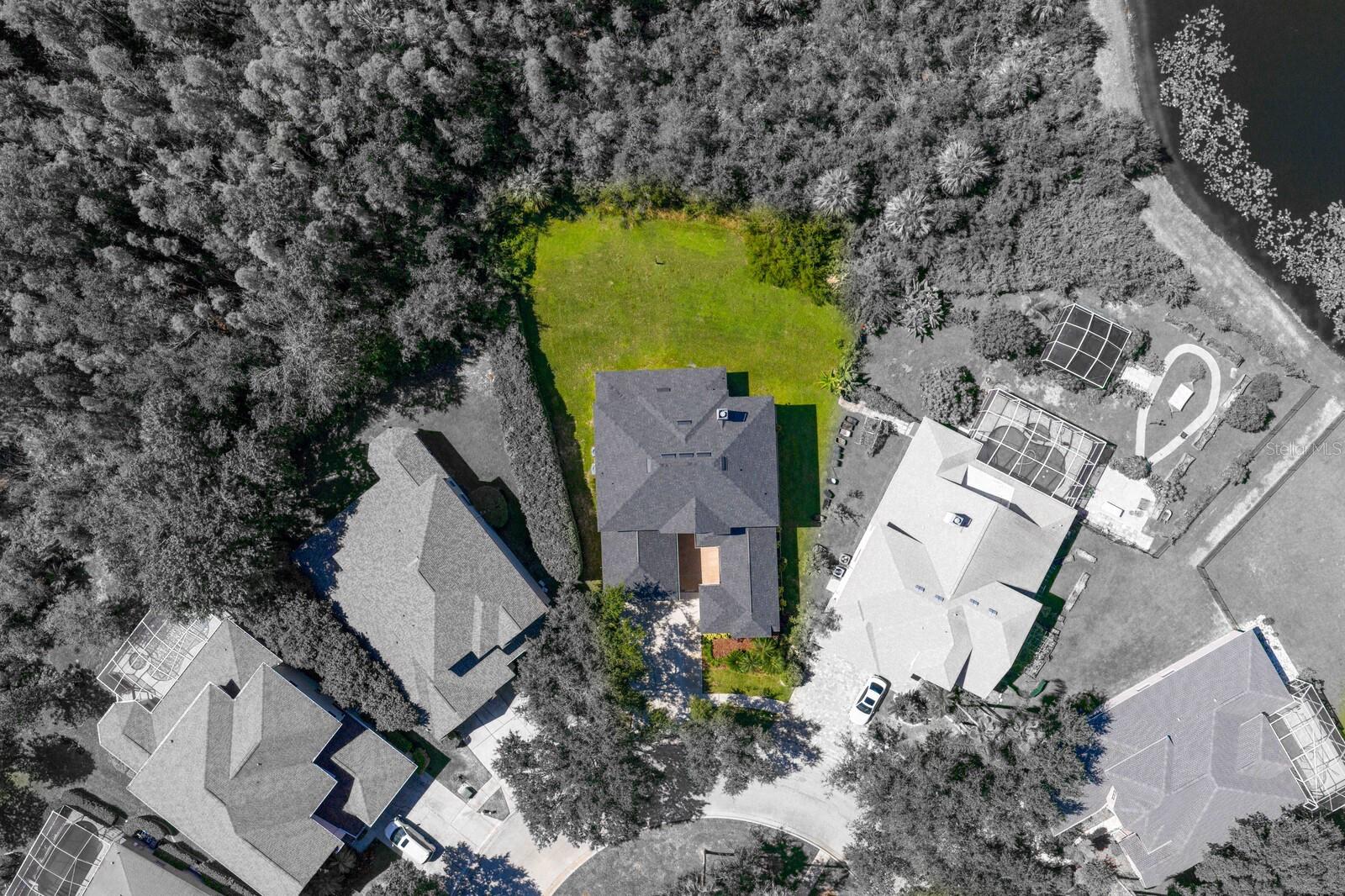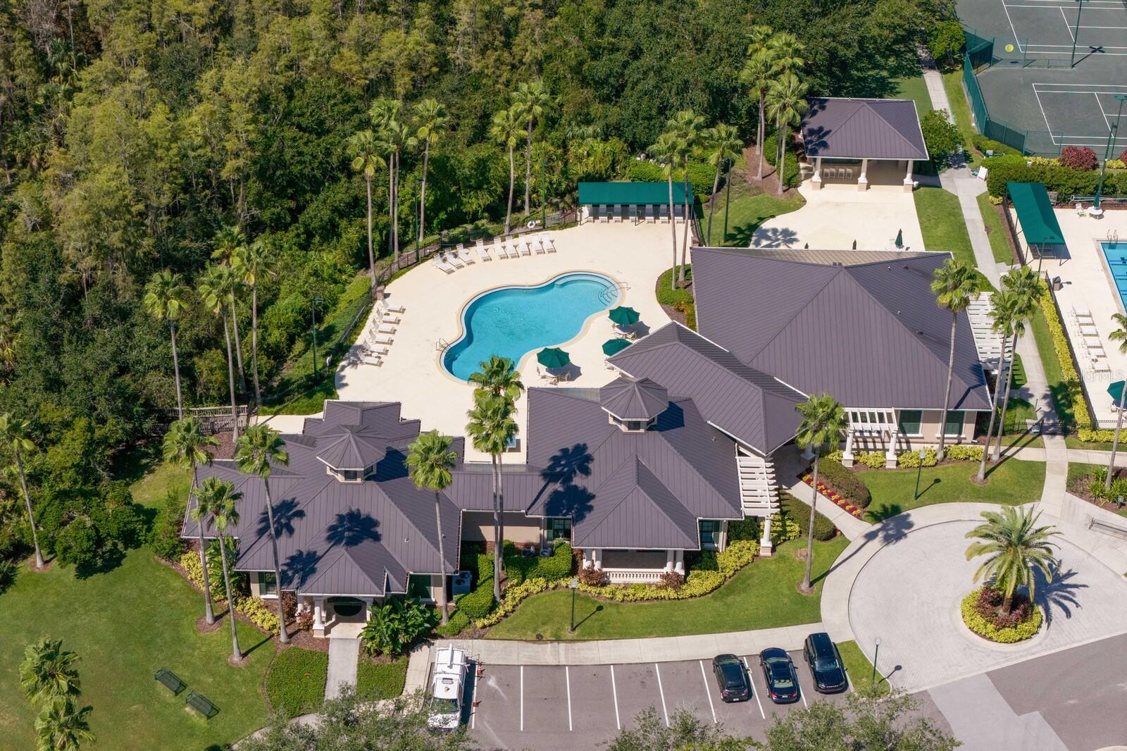 Welcome to this stunning residence in the gated Arbor Greene community. Located within the sought-after Parkview Village, this custom-built home is perfectly positioned on an oversized lot at the end of a quiet cul-de-sac with expansive conservation views and a community open space directly across from the home for added privacy and a park-like setting.Offering 5 bedrooms, 3.5 baths, a theater room, and a game room, it delivers the space and flexibility today’s buyers crave. The inviting courtyard entry and separate three-car garage create a warm first impression. Step through the leaded, beveled-glass door and you’ll immediately feel the difference: soaring two-story ceilings in both the entry foyer and family room flood the home with natural light. Beautiful finishes include engineered wood flooring in the formal dining room, oversized baseboards, and 18x18 tile laid on the diagonal throughout the foyer, kitchen, family room, and breakfast nook. A stack-stone wood-burning fireplace with wood mantle and built-ins anchors the family room. The gourmet kitchen is a chef’s dream, showcasing 42” maple cabinetry with dental molding and glass-front uppers, granite countertops, stainless steel double ovens, a walk-in pantry, and pendant lighting. The adjacent breakfast nook overlooks the lanai and lush backyard, while the powder bath is conveniently located just off the main living space. Flexible living continues on the main floor with a bonus room featuring double-door entry, a guest bedroom with custom built-in bookshelves, and an in-home theater room, perfect for entertaining. Upstairs, rich wood flooring flows throughout all bedrooms. The primary suite offers a luxurious retreat with a custom walk-in closet, granite-topped maple cabinetry, a pebblestone shower, and an oversized jetted Jacuzzi tub. All secondary bathrooms have been updated with granite as well. A utility closet upstairs provides added convenience. Outdoor living is equally impressive. A spacious lanai with built-in grill overlooks the large, private backyard and wooded conservation views — ideal for gatherings or quiet evenings alike. Residents of Arbor Greene enjoy resort-style amenities including a fitness center, lap pool, resort-style pool with slide, tennis and basketball courts, dog park, playgrounds, and miles of scenic walking trails, all with modest HOA fees. This extraordinary Parkview home combines luxury finishes, thoughtful upgrades, and a prime location just minutes from top-rated schools, shopping, dining, I-75, I-275, and USF.