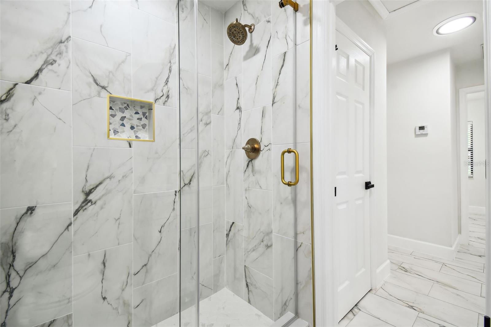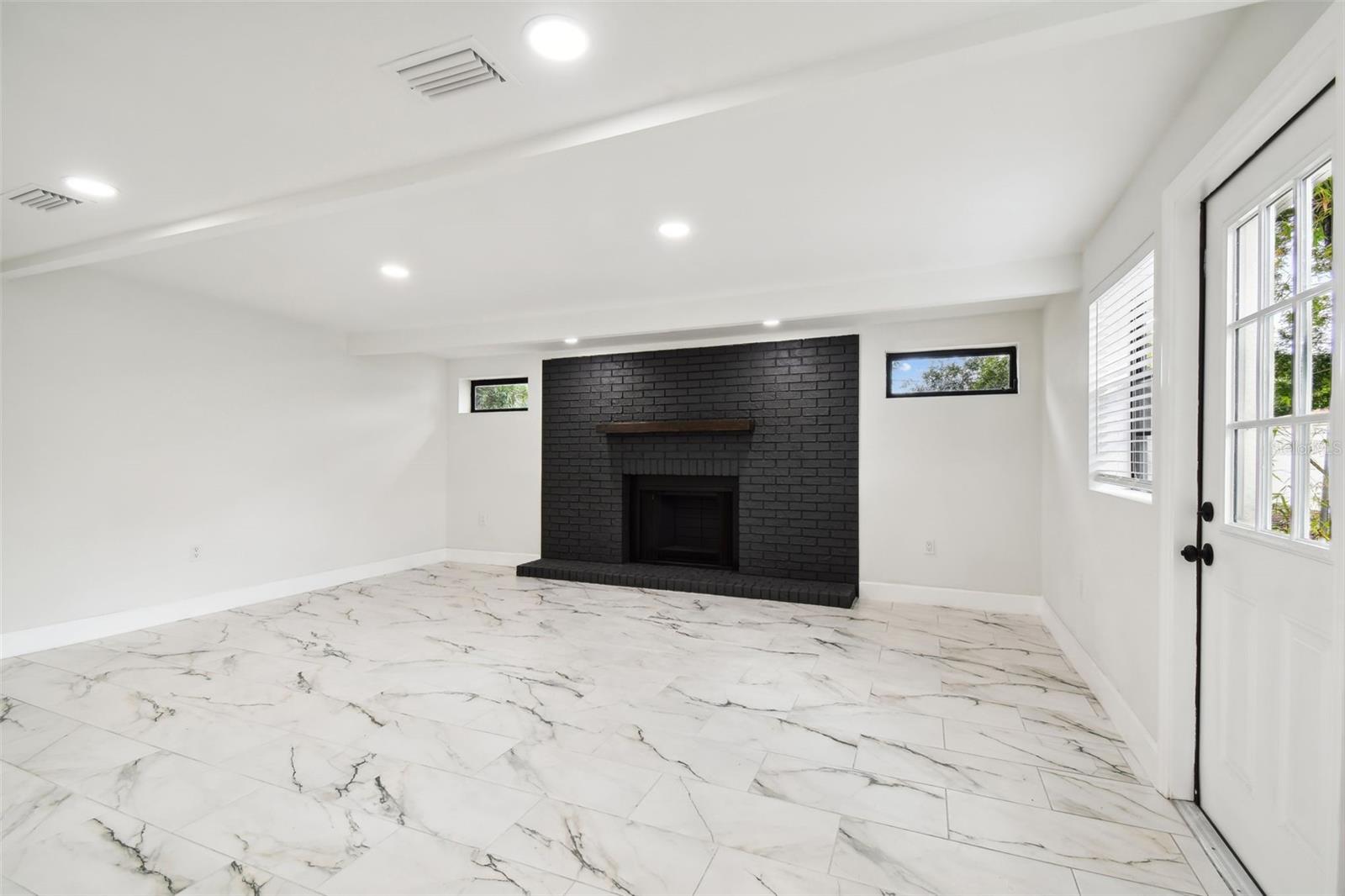 Come and take a look at this recently renovated home, where you'll find a tastefully designed interior that uses bold color contrasts. The living room features a cozy fireplace, creating a warm, relaxing atmosphere. The residence includes three comfortable bedrooms and two bathrooms. The house has a NEW ROOF, NEWER AIR CONDITIONING, NEW STAINLESS STEEL APPLIANCES, PORCELAIN FLOORS THROUGHOUT, NEW LIGHT FIXTURES, NEW FAUCETS, AND A NEW VINYL FENCE, ALL IN 2024. The kitchen is well-equipped and features a modern island with an attractive waterfall-style countertop that blends functionality with aesthetic appeal. The interior is filled with natural light pouring in through large windows, enhancing the overall ambiance of the living spaces. The bathrooms are a luxurious experience, with glass-enclosed showers, stylish tilework, and elegant gold finishes. The backyard is spacious and offers plenty of room for outdoor activities, with a tree providing shade and privacy. The home is located in the Wellswood neighborhood, offering easy access to many nearby amenities. Wellswood Park is an incredible neighborhood in Tampa Bay that provides fantastic access to everything the city has — from the International Mall and the airport to Gulf beaches, surrounded by amazing restaurants, the Bucs stadium, the Tampa Zoo, Busch Gardens, and every new development in the city of Tampa.