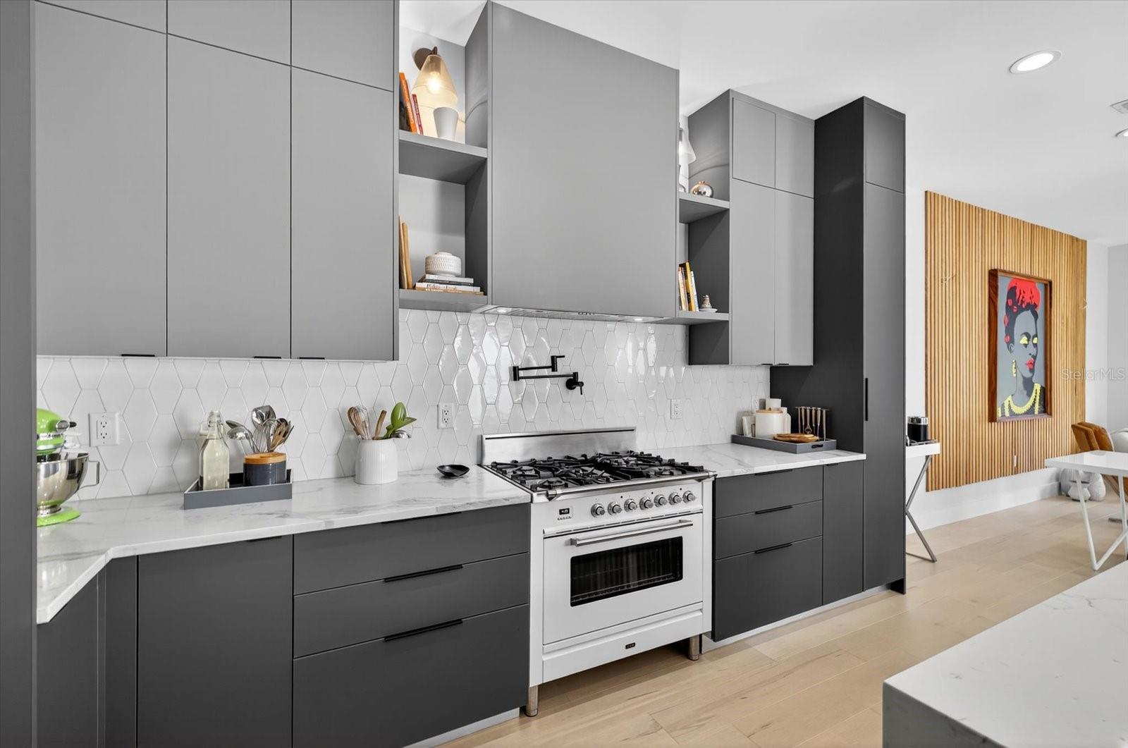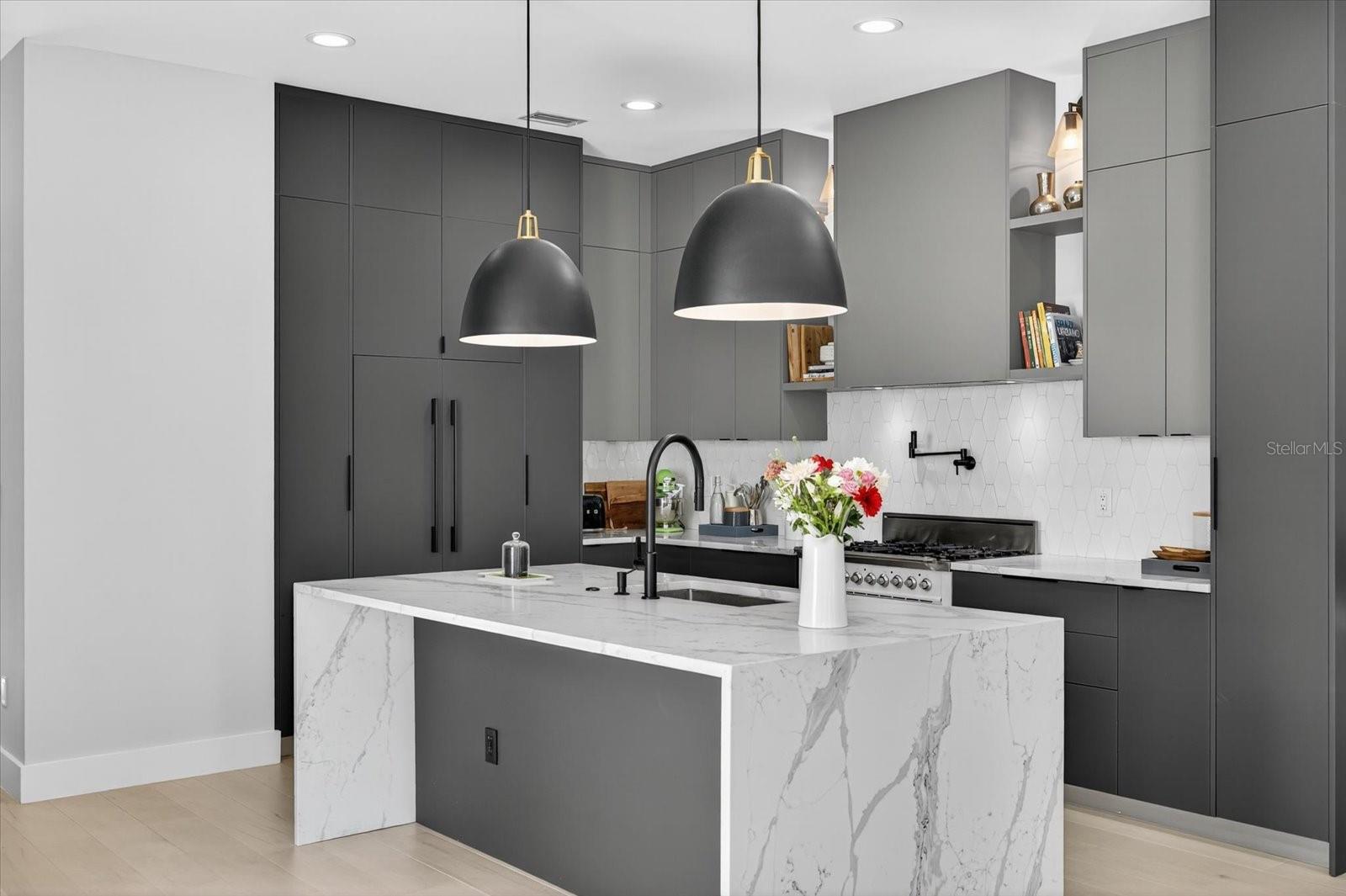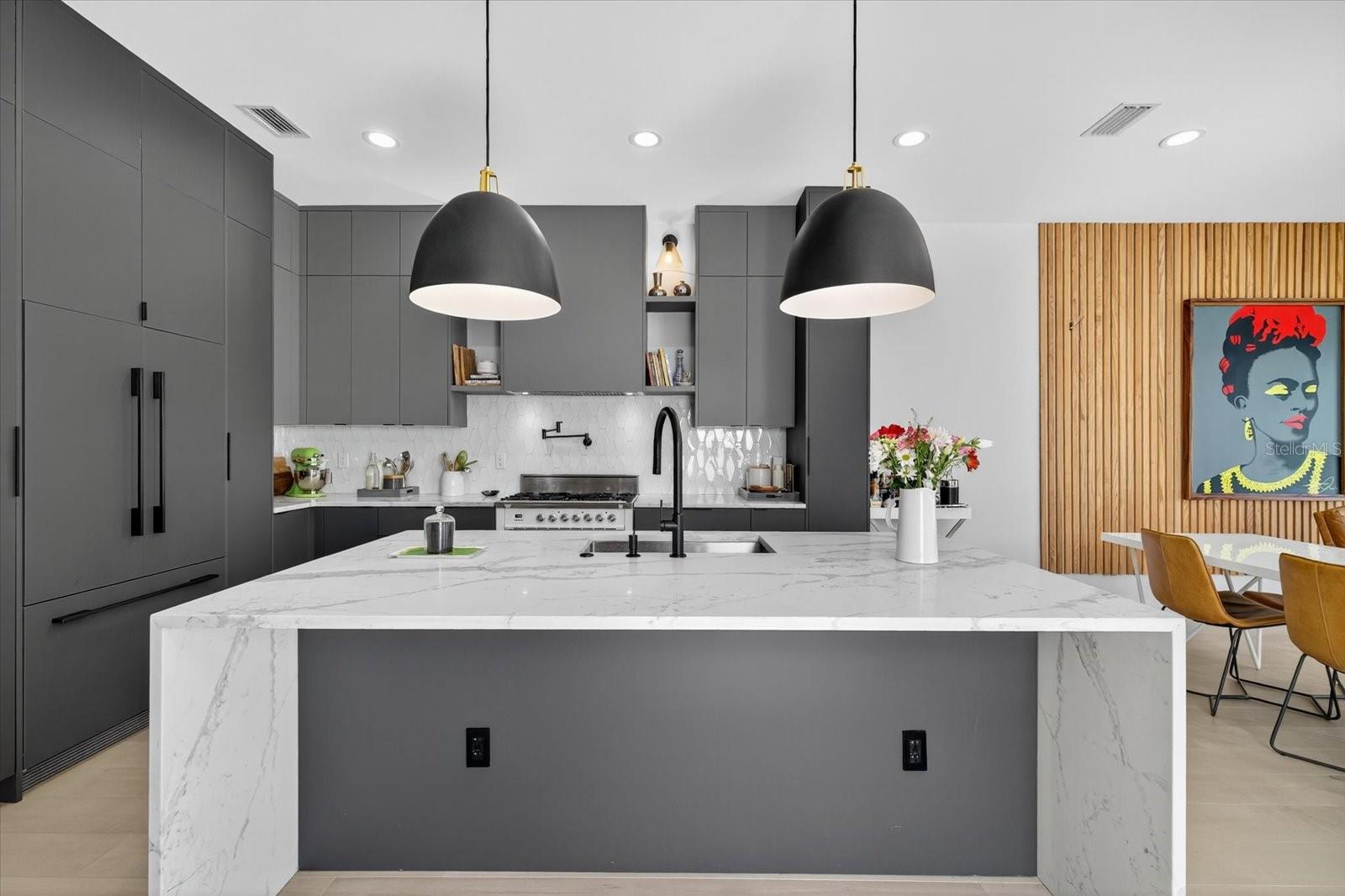 Located just steps from Armature Works and downtown Tampa, this modern three-story townhome combines sleek design with thoughtful functionality. Offering three bedrooms, three and a half bathrooms, and a flexible first-floor bonus room, the layout provides space for both everyday living and entertaining. The open-concept second floor showcases a chef’s kitchen with custom cabinetry, quartz waterfall countertops, a wine fridge, and an imported Italian ILVE gas range. A panel front refrigerator blends seamlessly into the design, while 10-foot ceilings and hardwood flooring create a bright, spacious feel throughout the living and dining areas. The top floor features a private rooftop terrace, ideal for outdoor gatherings or enjoying city views. Additional features include a two-car garage, electric vehicle charging station, hurricane impact windows, and French doors leading to a private backyard space. With no HOA fees or lease restrictions, this property also offers excellent flexibility for personal use or investment. All within minutes of Tampa’s best dining, waterfront, and entertainment.