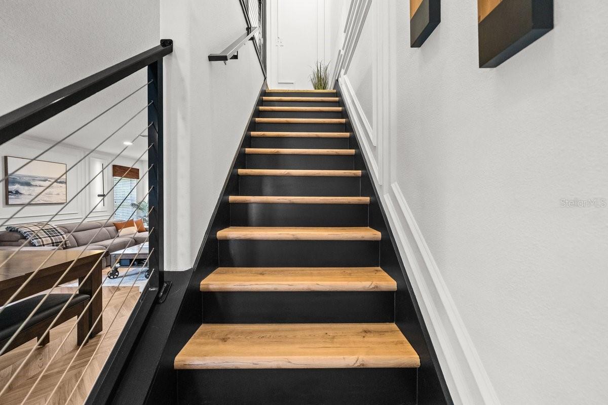 Welcome to your dream home in a gated, waterfront community — completely refreshed and ready for you! FLOOD-FREE through every storm and just 10 minutes from downtown Tampa, this boldly updated end-unit welcomes you with tiered luxury across three levels, with the first being devoted to a tandem two-car garage. The second floor welcomes you with an open and airy living space, anchored by a vibrant custom accent wall and flooded with natural light. Chevron-pattern LVP flooring flows seamlessly throughout, while picture-frame molding adds depth and drama to the space. The kitchen commands attention with custom western red cedar open-box shelving, elegant quartz counter tops, and porcelain tile back splash extending to the ceiling. Adjacent to the kitchen, a beautifully appointed powder bath features high-end fixtures and custom accents, marrying everyday convenience with bold style. Off the living space, step onto the screened-in balcony that has been completely transformed into a serene and peaceful oasis. The third floor is where you'll find the primary suite which boasts an updated en-suite, dual closets with built in features, and a private balcony. Two additional bedrooms, a second updated full bathroom, and a dedicated laundry room complete this level, with abundant storage throughout. This unit isn't just a stunner, practical upgrades round out this move-in-ready home including a BRAND NEW water heater (2025), new roof (2023) and A/C unit (2020). The beautifully-maintained community boasts low HOA fees and a slate of recent improvements including a newly installed dock and kayak launch overlooking the bay, freshly paved roads, and updated landscaping. The community sits just minutes from two major upcoming redevelopment projects — Gasworx and the Ybor Harbor Project — both of which are poised to transform the surrounding neighborhoods with new residential, commercial, and entertainment opportunities. These developments are expected to bring significant long-term value to the area. Within just 10 minutes, you can enjoy Armature Works, the Tampa Riverwalk, Sparkman Wharf, and Curtis Hixon Waterfront Park, each offering vibrant dining, entertainment, and cultural experiences. This central location provides residents with both the excitement of the city and the promise of strong growth and investment potential. With standout design features, unbeatable location, and direct water access, this turnkey home is truly a rare find. All of this at a price point that makes waterfront living an irresistible reality- schedule your tour today!