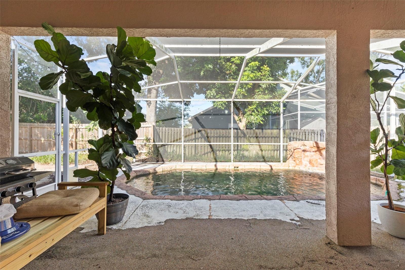 Come see this one of a kind 4 bedroom 2.5 bath home located in the highly desired Ventana neighborhood of Carrollwood. Upon entry you will find a formal dining space to the left and a versatile office / Den to the right. Just a few more steps will lead you to a HUGE Chef's kitchen that is fully equipped with a ton of cabinetry and countertop space, a double oven, microwave, stainless steel appliances, a large island, pot rack chandelier, and breakfast bar. The living room has a working fireplace and sliders that provide natural light and access to the very inviting pool area. The home has a split Floor Plan The Master Suite is SPACIOUS with a walk-in closet and it's own private access to the pool. The Primary bath has his and her vanities, a garden tub, and the TV conveys. On the other side of the home, you will find the other bedrooms. A Jack and Jill Bathroom that leads to the 4th bedroom that almost feels like a In-Law suite is at the back of the home and can also be used as a guest suite with direct access to the pool. Enjoy the screened-in lanai with a heated salt pool and waterfall, perfect for relaxing and entertaining. Low maintenance backyard. Washer and Dryer Convey. Centrally located in Tampa near I-275, Veterans Expressway, Citrus Park Mall, Tampa International Airport, Shopping, Restaurants, and Entertainment.