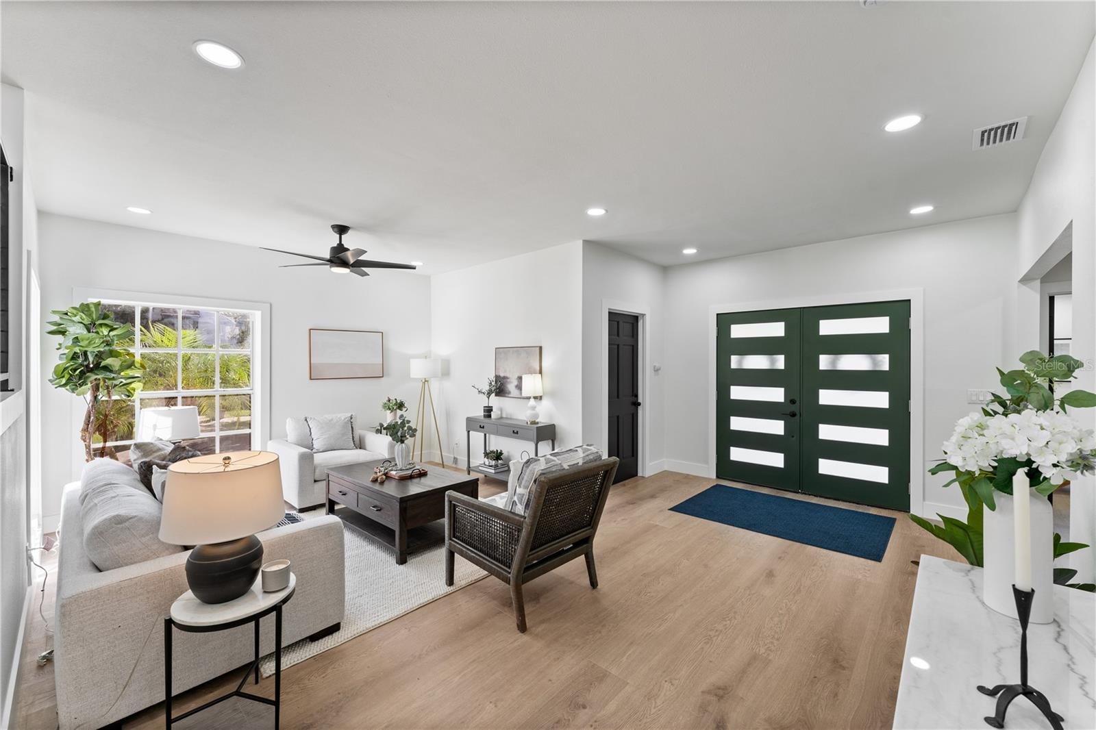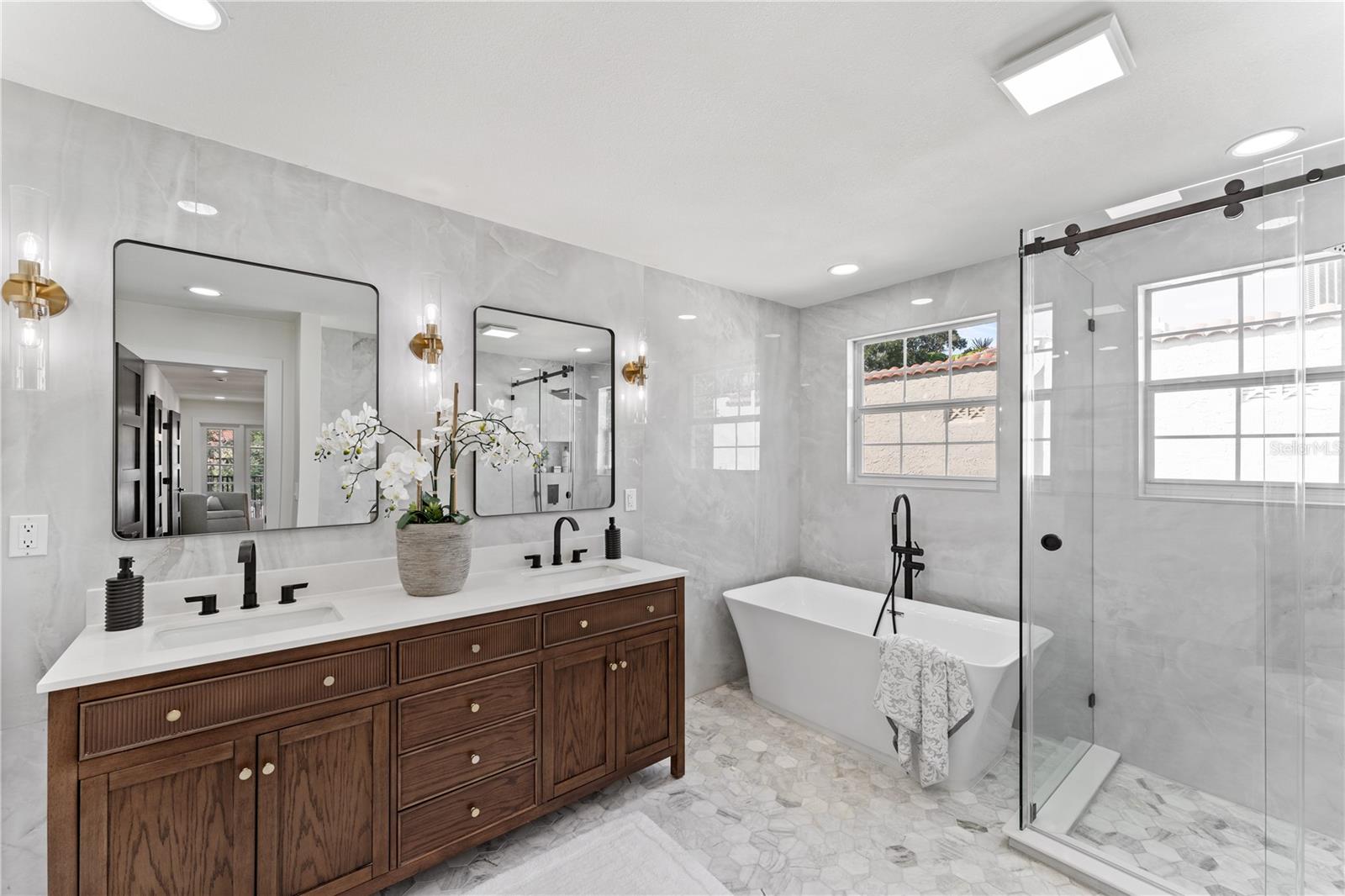PRICE ADJUSTMENT!!!! Welcome to the prestigious DAVIS ISLANDS, a community celebrated for its rich history, upscale amenities, and breathtaking waterfront views! This fully renovated 4-bedroom, 3.5-bath, 2,646-square-foot residence sits gracefully on a CORNER LOT, showcasing exquisite UPGRADES and timeless details. Arrive to lush tropical landscaping and a grand entrance framed by MODERN DOUBLE doors, setting the tone for what’s inside. Step inside and be greeted by SOARING HIGH ceilings, WIDE-PLANK 100% WATERPROOF LAMINATE FLOORS, DESIGNER lighting, and an abundance of NATURAL LIGHT that flows seamlessly throughout the home. The heart of the home is the CHEF-INSPIRED kitchen, featuring two-tone custom cabinetry, QUARTZ countertops with a WATERFALL island, a FARMHOUSE sink, and high-end THOR STAINLESS STEEL appliances. Every detail was designed for both functionality and style—perfect for everyday living or hosting with ease. The main level includes two spacious guest bedrooms with a luxurious shared bath showcasing FLOOR-TO-CEILING TILE, a WALK-IN shower, and sleek MATTE BLACK fixtures—delivering a 5-star retreat experience. A CHIC half-bath with custom tile, elegant wallpaper, and a MODERN pedestal sink offers convenience with style. From the open living area, FRENCH DOORS lead to an outdoor DECK and a fully fenced backyard—an inviting setting for al fresco dining, entertaining, or simply soaking up Florida’s sunshine. A modern ROD IRON staircase leads to the private primary suite, your sanctuary in the sky. Here, enjoy your own PRIVATE BALCONY where you can unwind in the evening breeze. The spa-inspired bath is a masterpiece with DUAL vanities, QUARTZ countertops, a freestanding SOAKING TUB, and a RAINFALL walk-in shower—the perfect space to recharge after a long day. The fourth bedroom, generously sized, features its own PRIVATE ENSUITE, making it ideal for guests or extended family. This home offers NEW ROOF, HVAC, and WATER HEATER along with thoughtfully curated finishes throughout—ensuring both style and long-term comfort. Located in the highly rated Gorrie Elementary, Wilson Middle, and Plant High School districts and just minutes to Downtown Tampa, Hyde Park, the Tampa Riverwalk, acclaimed restaurants, Tampa General Hospital and Tampa International Airport. Davis Islands also offers incredible neighborhood amenities: a dog beach, yacht club, community pools, tennis courts, parks, and the Peter O. Knight Airport. Your Davis Island dream home awaits! Contact us to schedule your private viewing today!