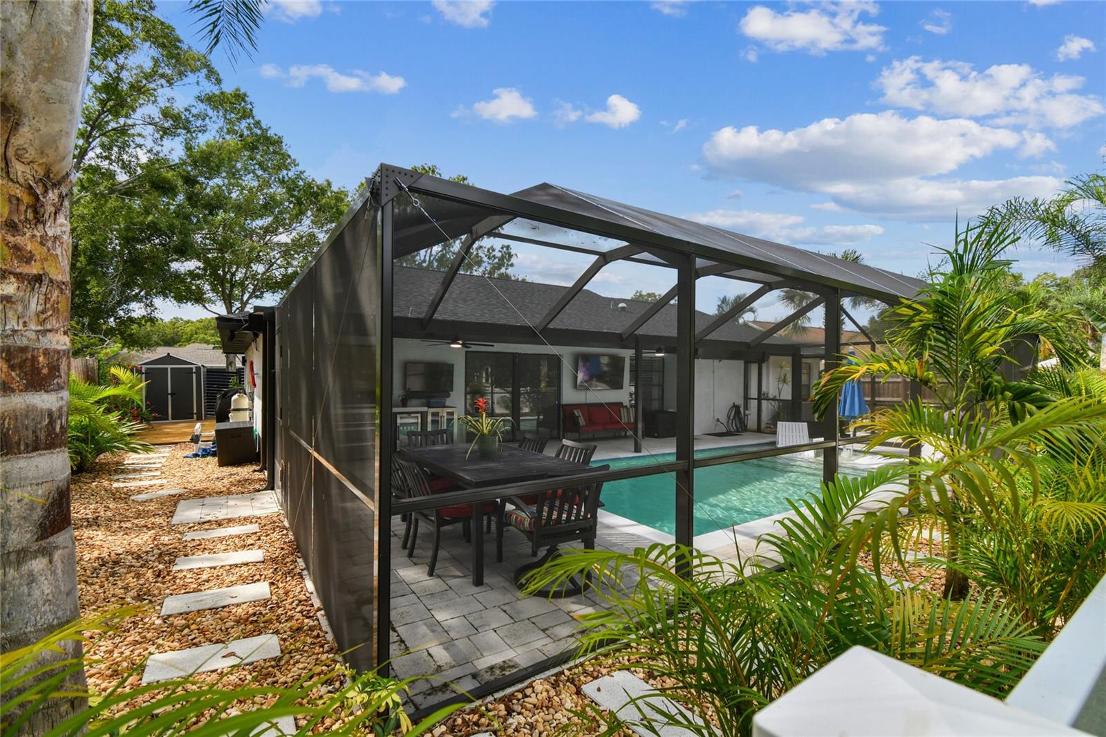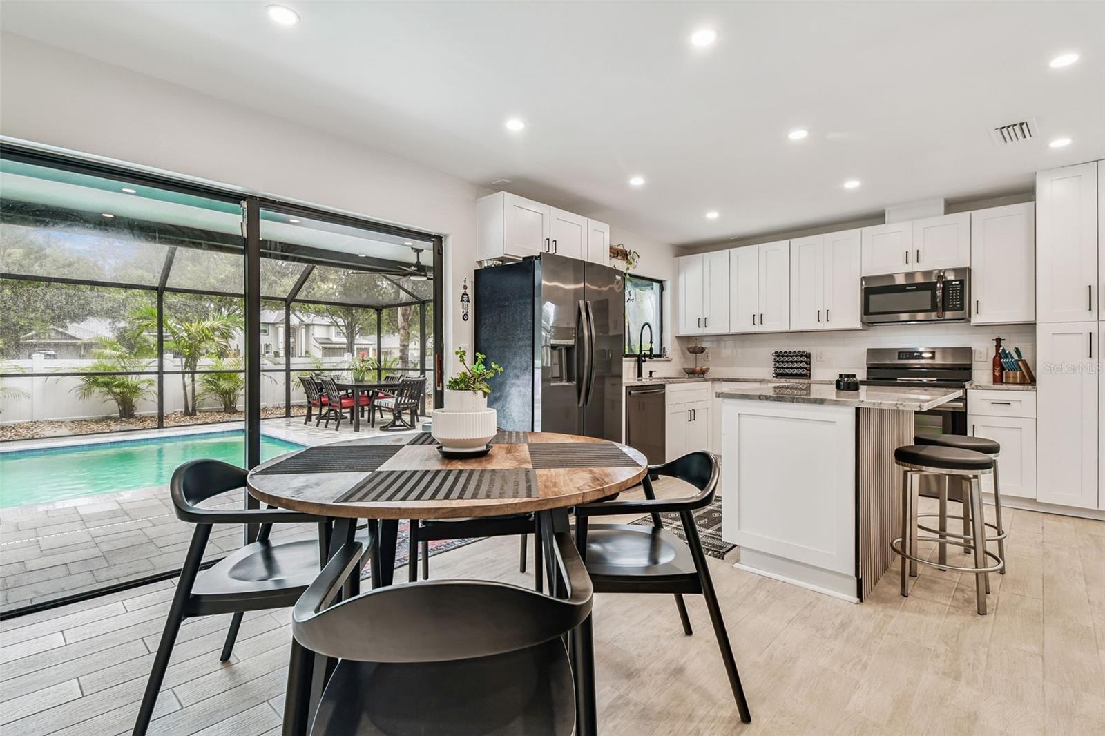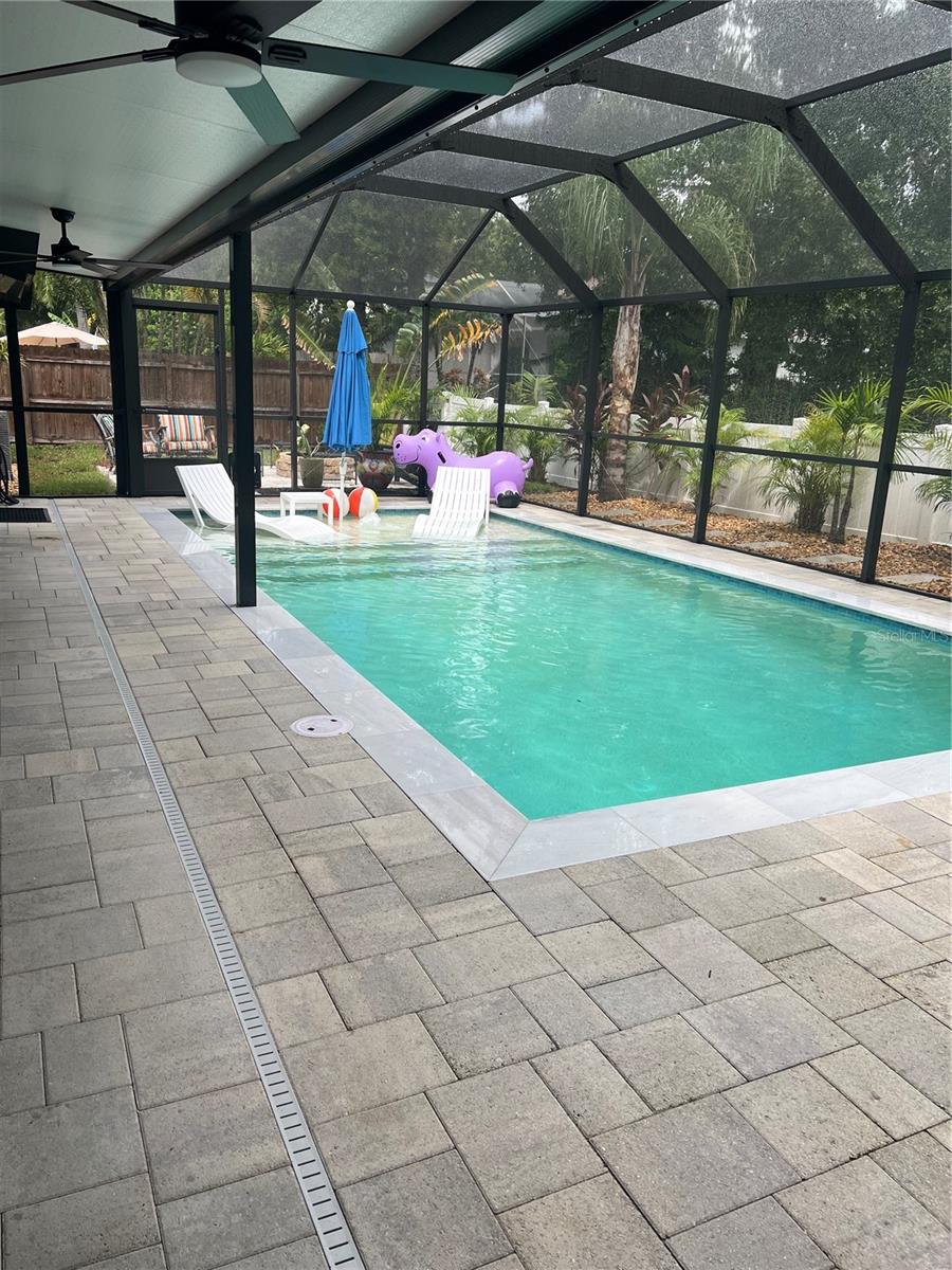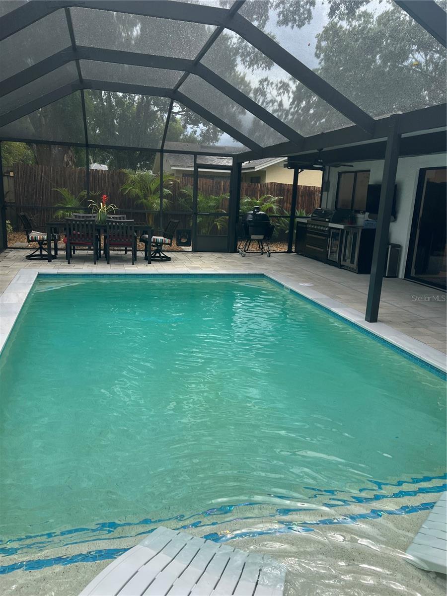 Welcome to this sleek and modern 4 bedroom 2 bathroom home in the heart of "Carrollwood" in the neighborhood of Country Place! As you enter you will notice the classy design this home has to offer. Soaring ceiling in your family room and plenty of nature light. You will enjoy entertaining in this kitchen that offers all the latest style. Stone counter tops and stainless steel appliance show off this roomy eat in kitchen adjacent to the spacious dining room with access to the screen in salt water pool and entertainment area. Laundry room has been converted into a private work space for a work at home option. Down the hallway you will find a lovely primary bedroom and stunning full bathroom with shower and double sink vanity. 3 additional bedroom and updated full bathroom with a double vanity and shower/tub combo. The outdoor space is an oasis on its own. Fully screened in Salt water pool 2024 with concrete pavers and covered cooking/entertainment area with view of the pond. Fire-pit 2024 and so much more. Yard is fully fenced and meticulously landscaped, This home is move in ready!! Low HOA and No CDD!! Roof 2024. Conveniently located to restaurants and shops. This gem is a must see inside-Contact us today for your private showing.